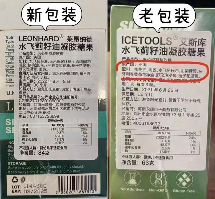 【新老包装 成分对比】