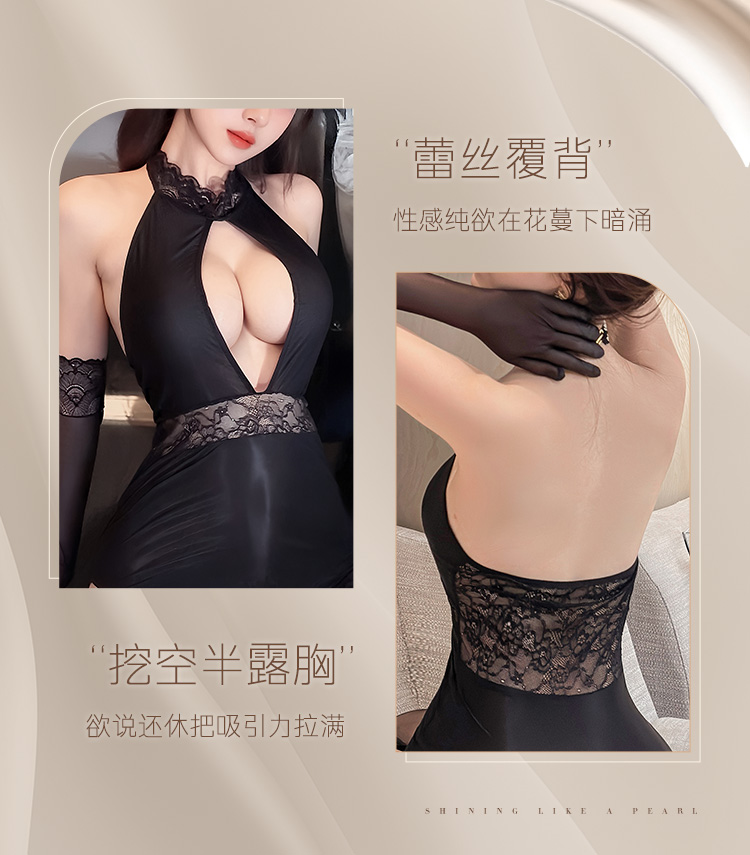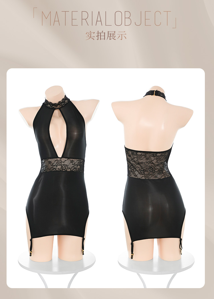 【情趣内衣】霏慕 连吊袜带露胸爽滑连衣裙ZY29
