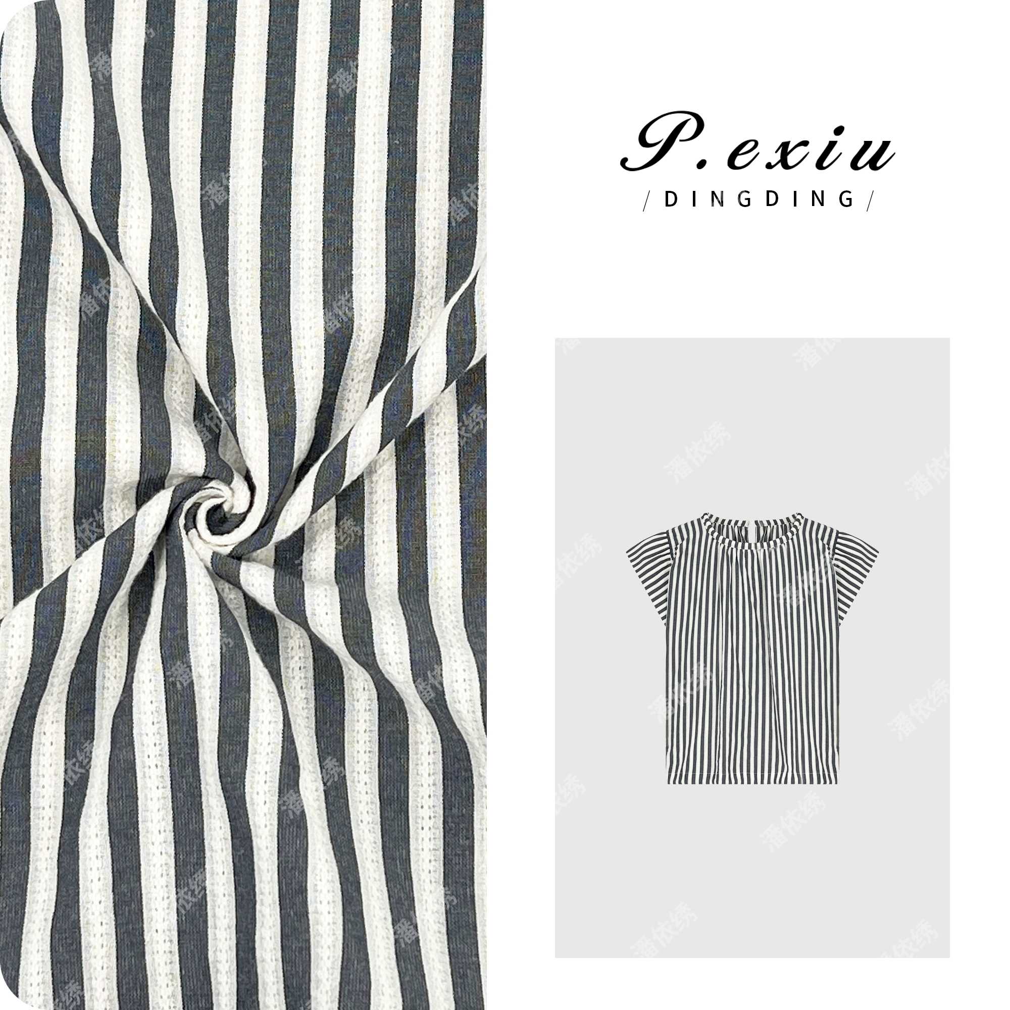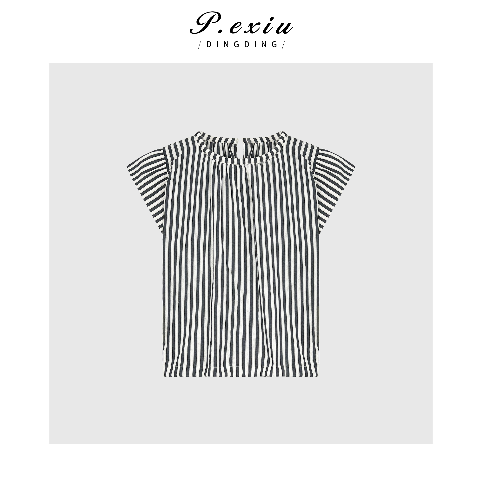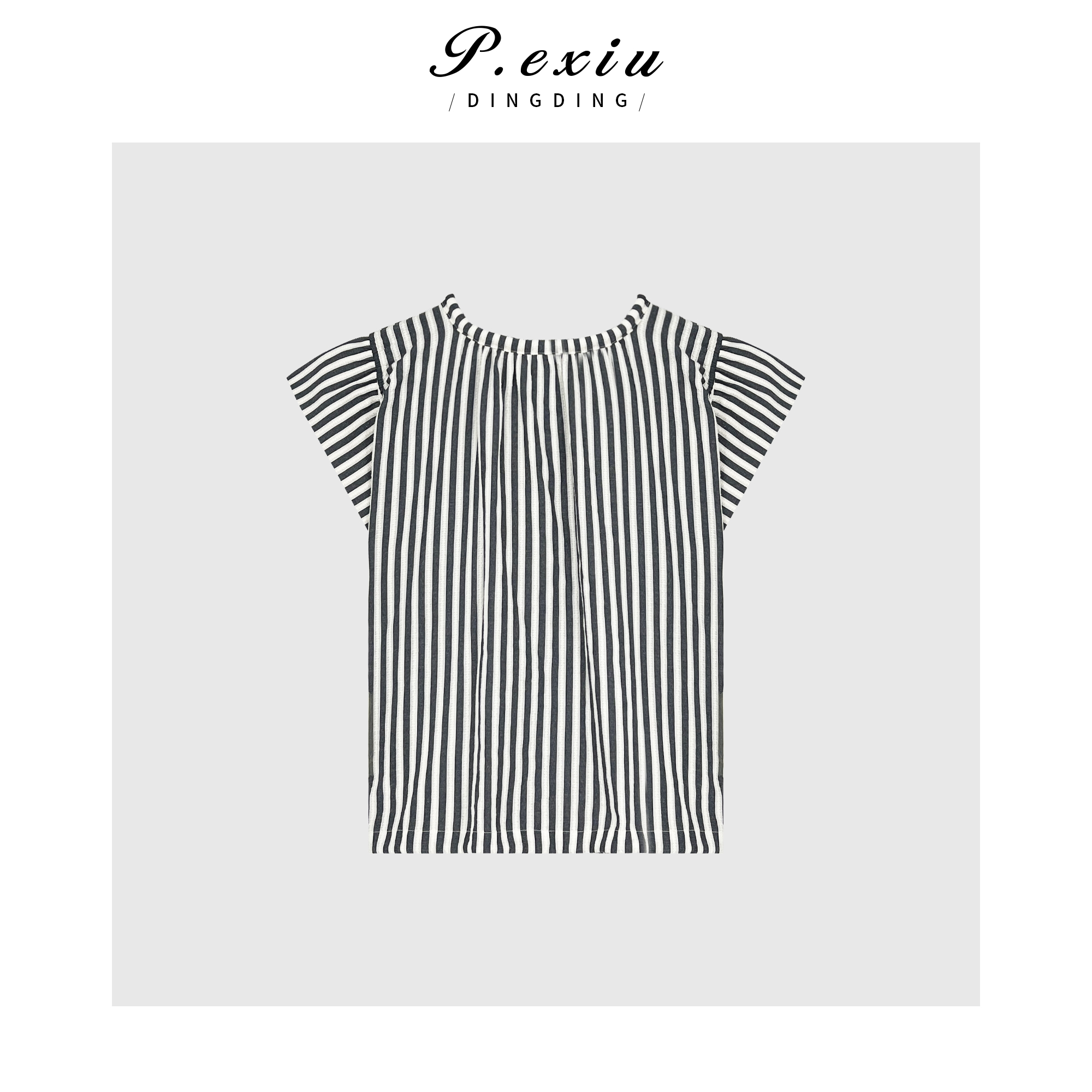 A007潘依绣丁丁宠粉PanYiXiu/潘依绣100%棉竖条纹设计感圆领小飞袖衬衫 HHD2240009