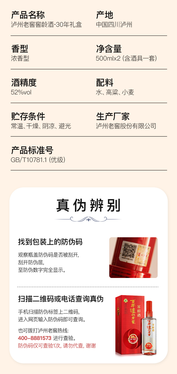 泸州老窖 窖龄30年 浓香型白酒 52度500ml 礼盒装