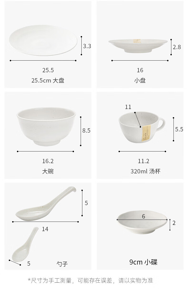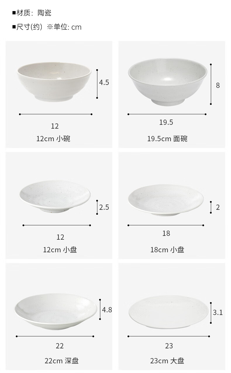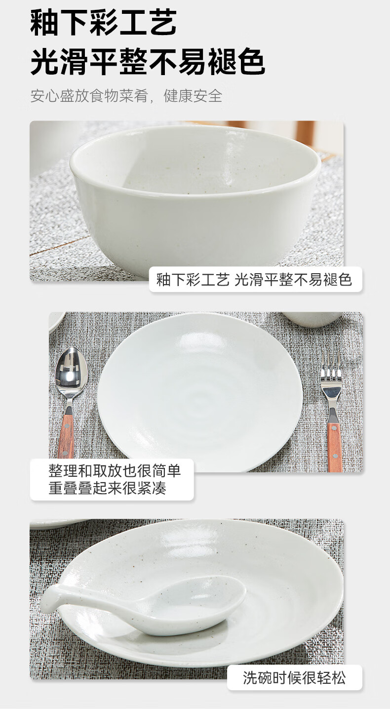 日本制超轻量餐具 缤纷 白唐津 勺子/小碗/大碗/面碗/汤杯/小碟/小盘/深盘/大盘/超大盘