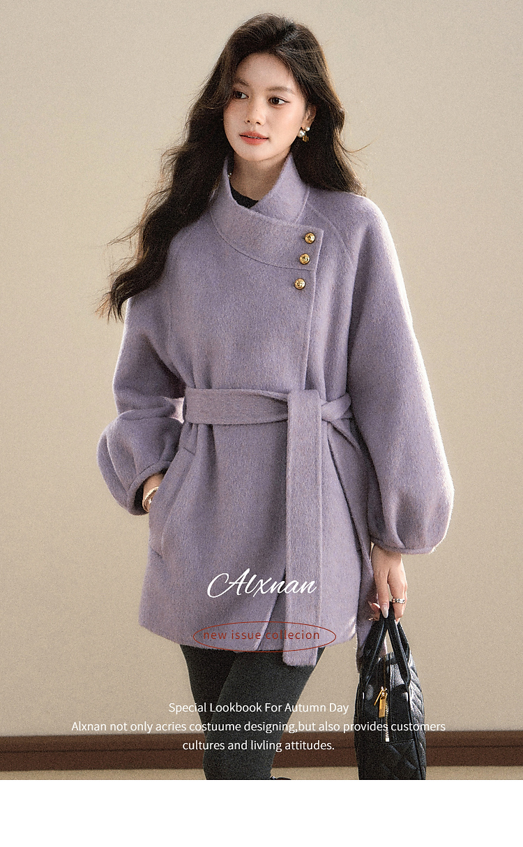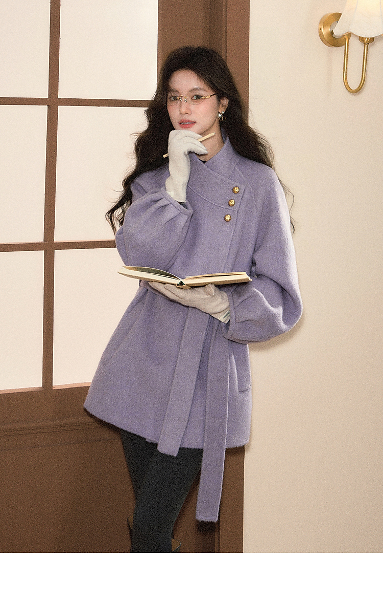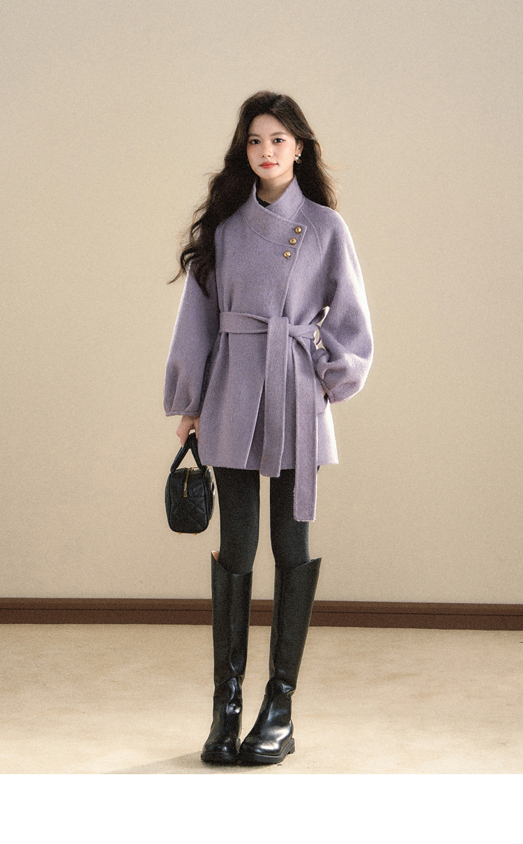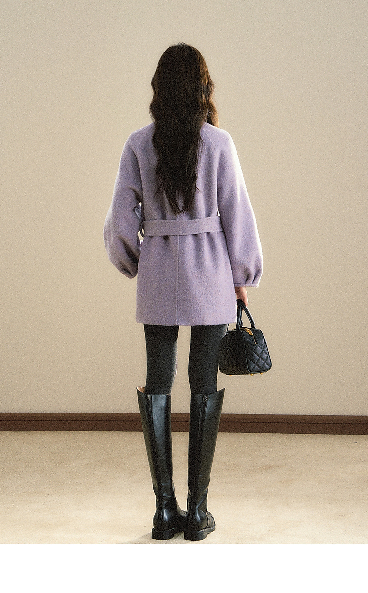 鹿向南「薰衣草」紫色双面毛呢外套女冬装高级洋气加厚中长款外套