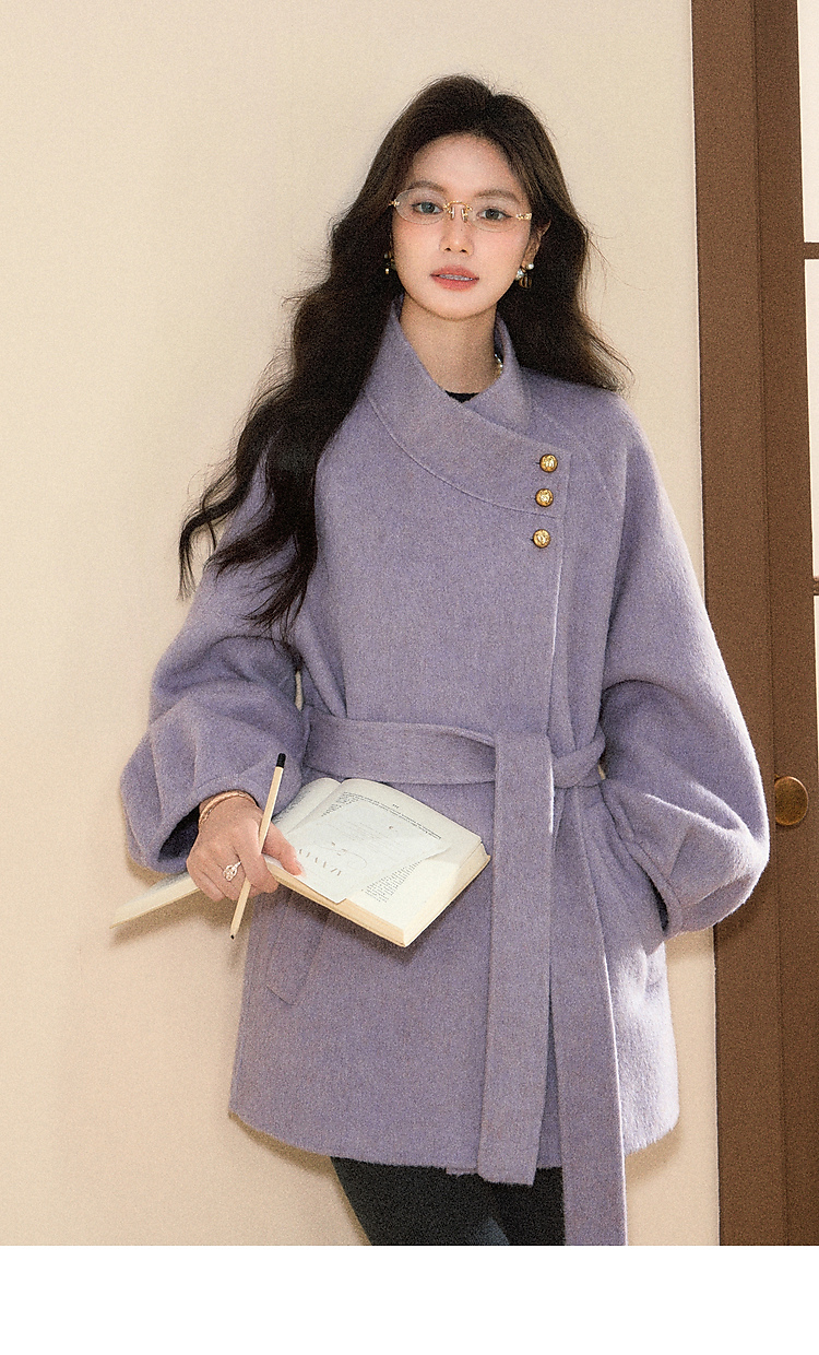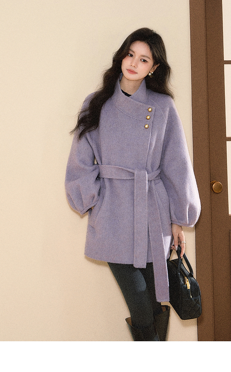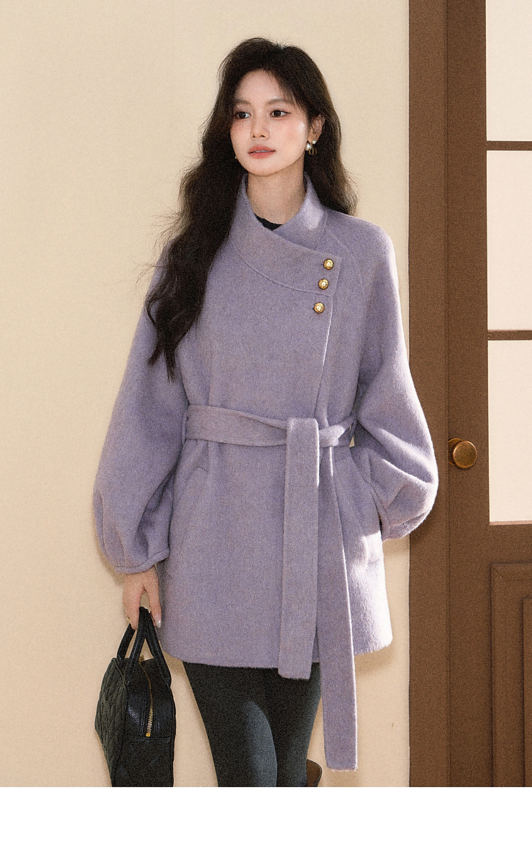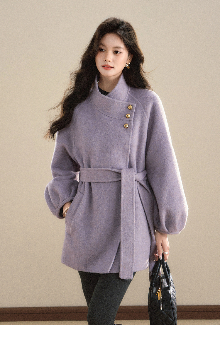 鹿向南「薰衣草」紫色双面毛呢外套女冬装高级洋气加厚中长款外套