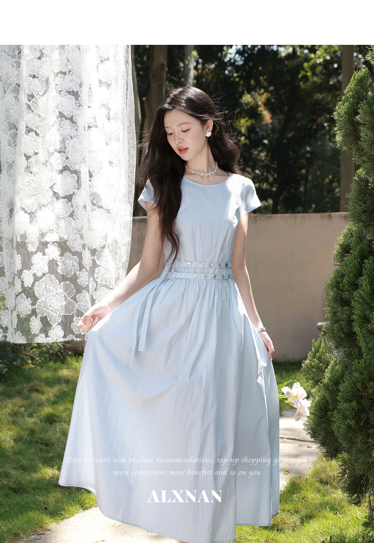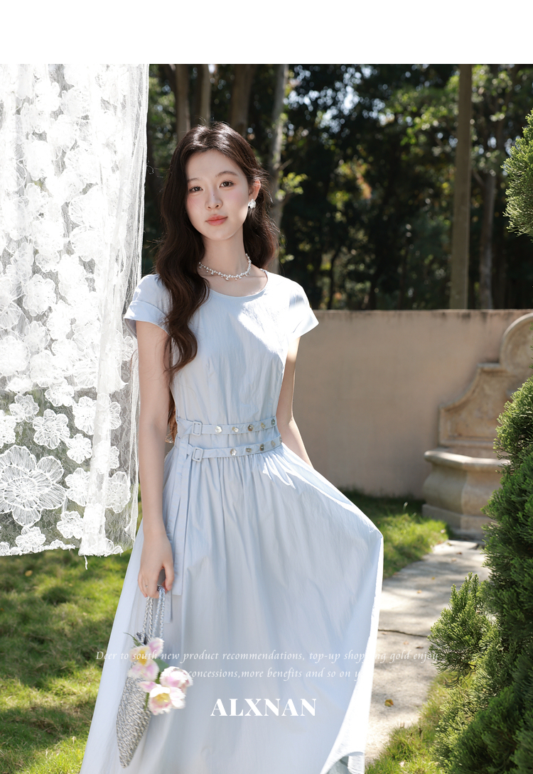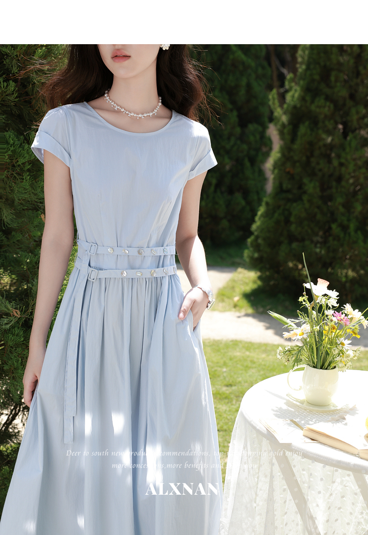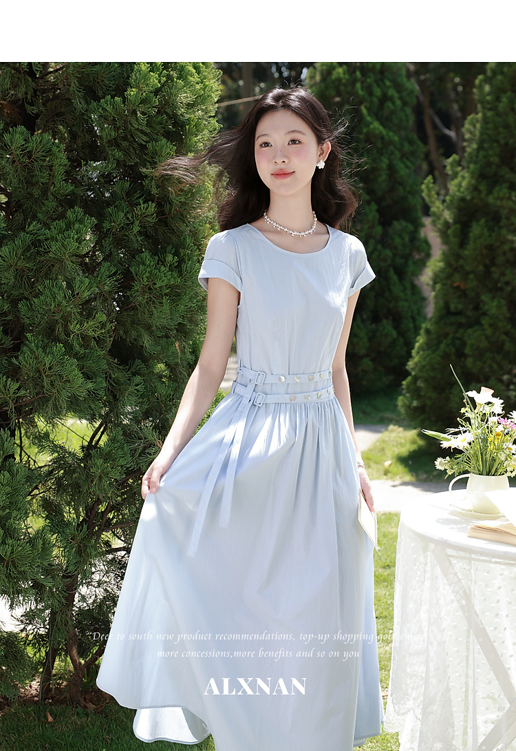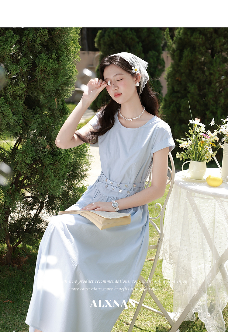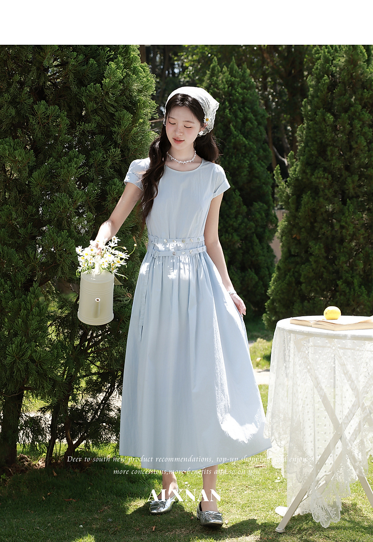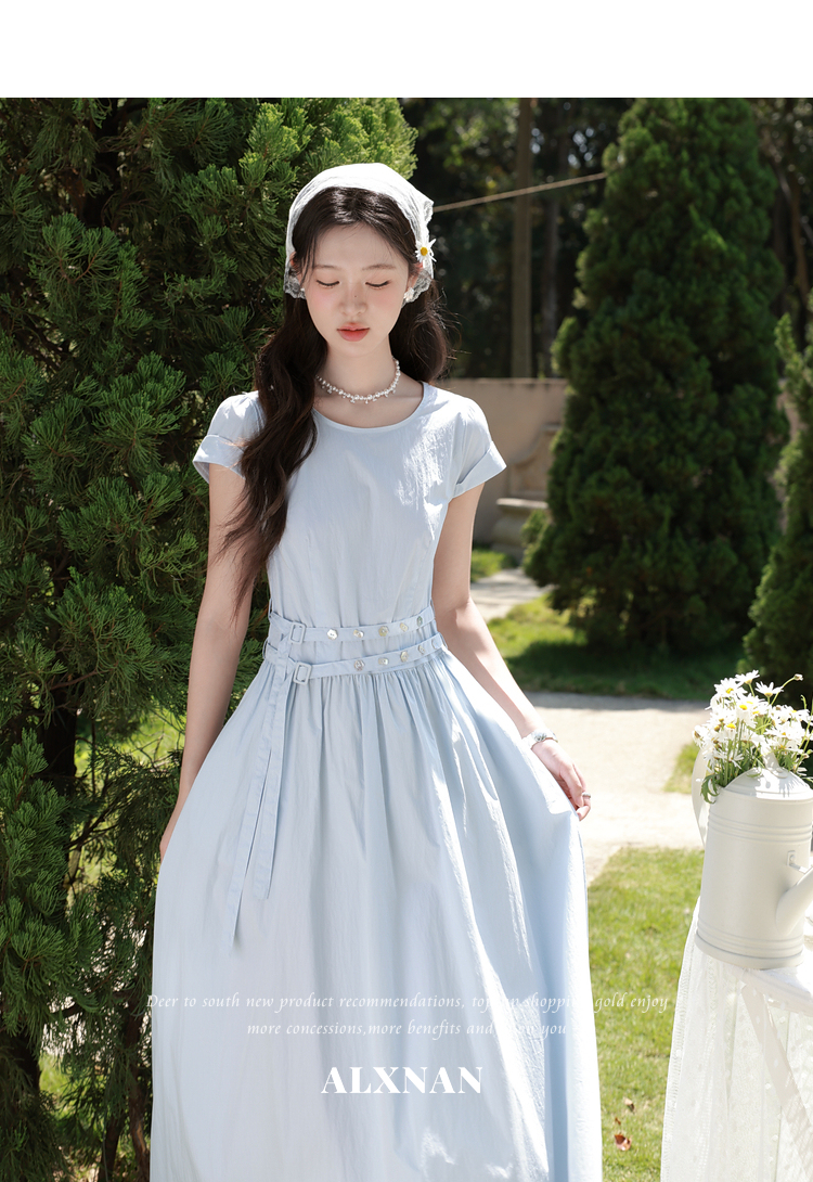 鹿向南【0417/20:00新品前1小时7折限量100件】圆领蓝色连衣裙女