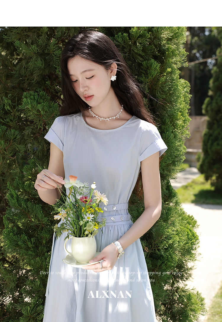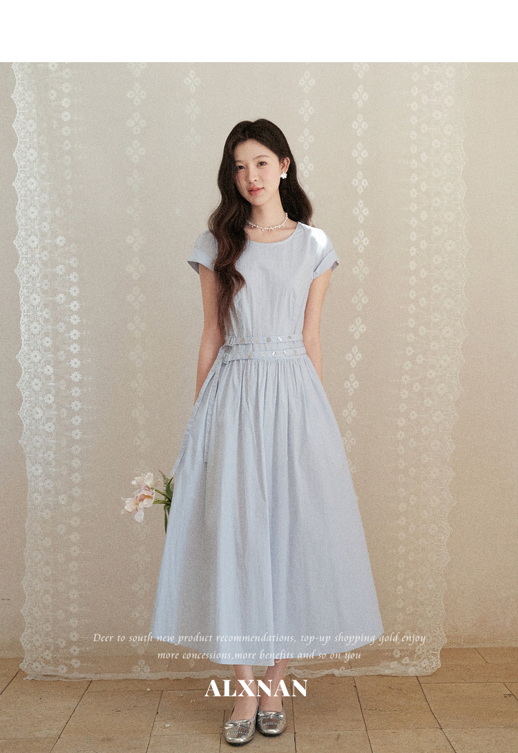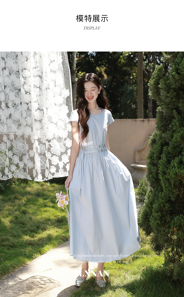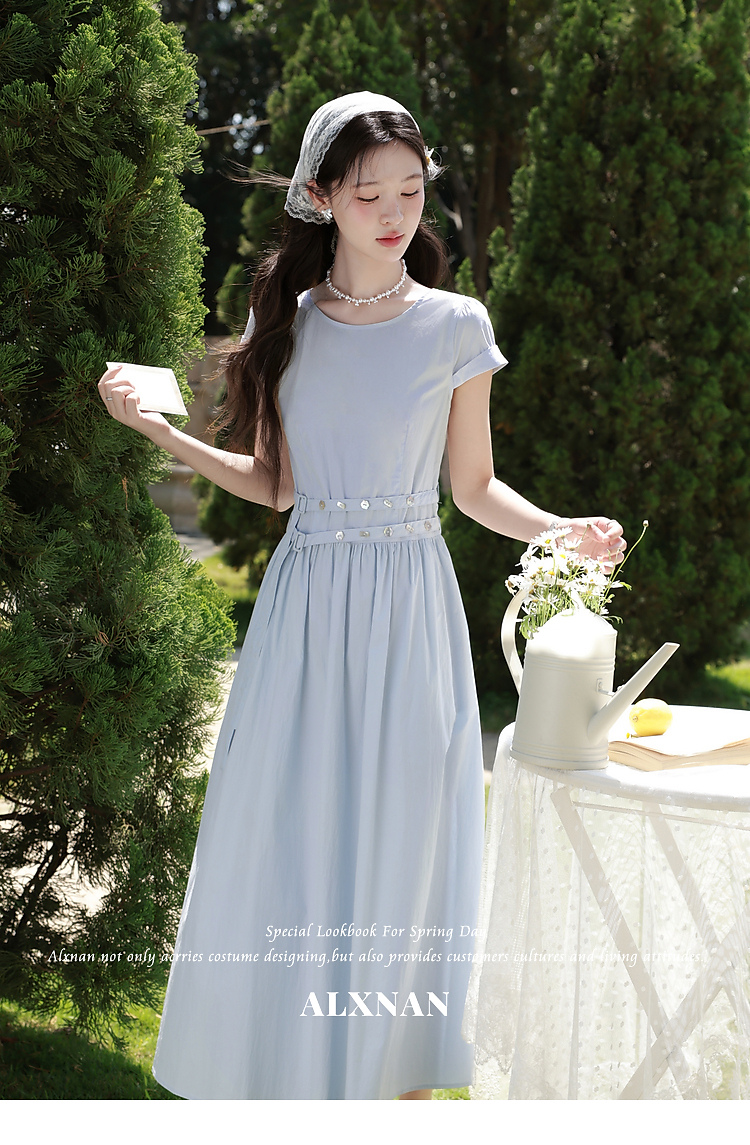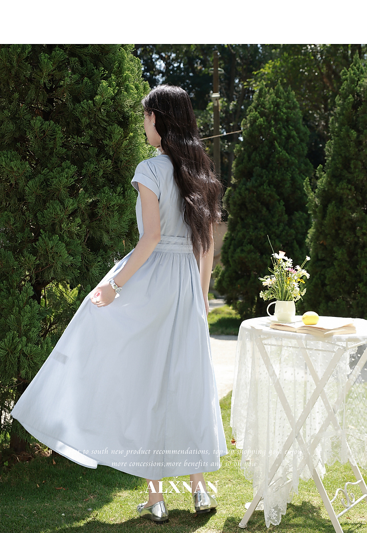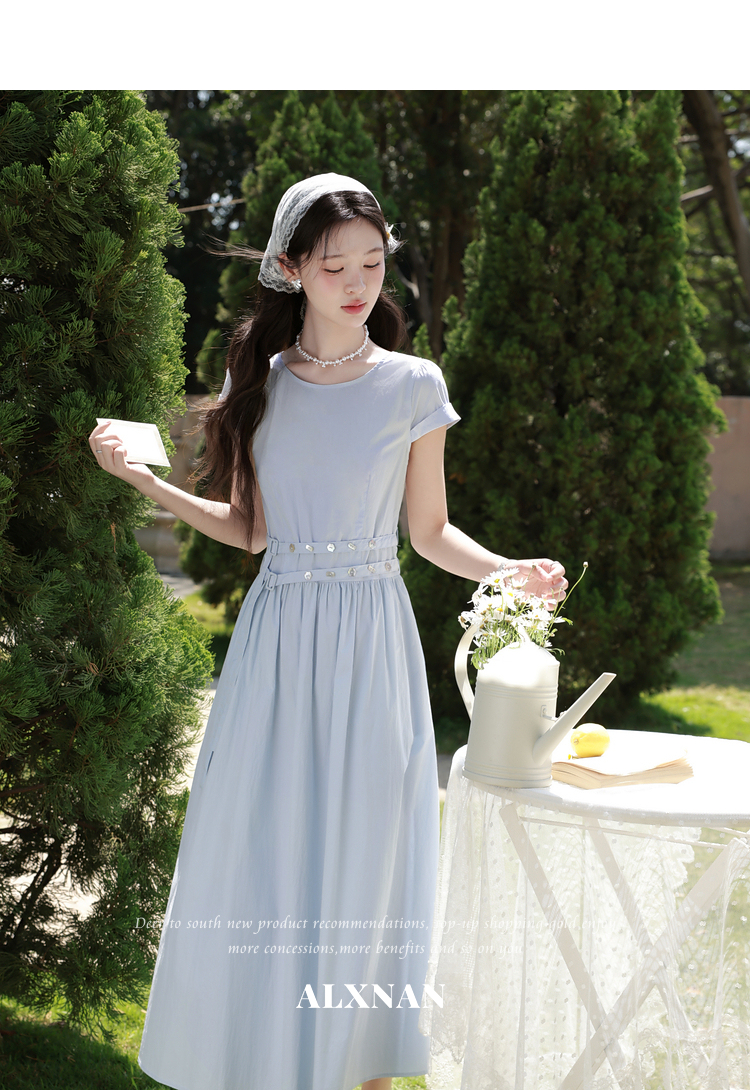 鹿向南【0417/20:00新品前1小时7折限量100件】圆领蓝色连衣裙女