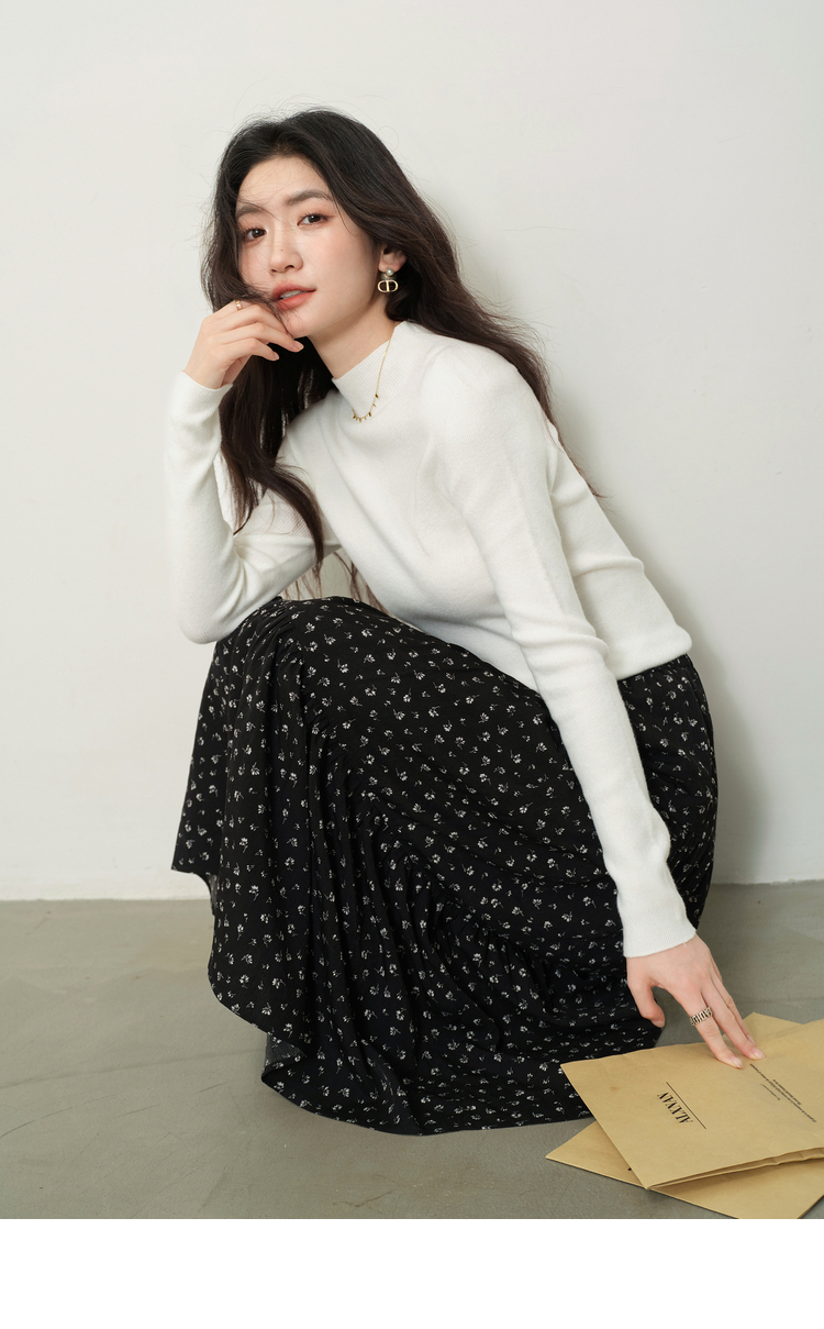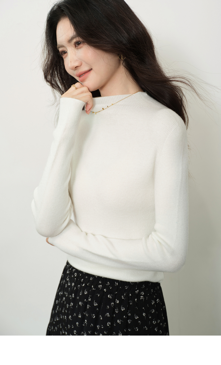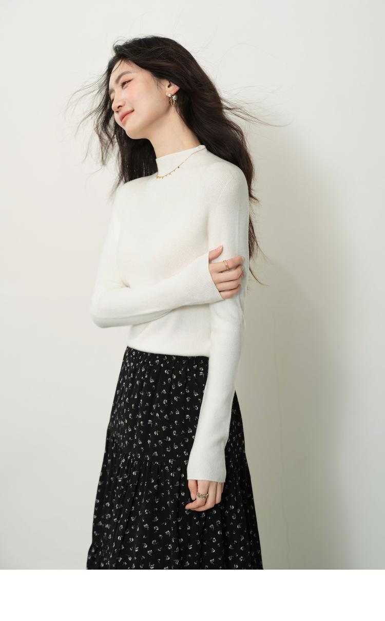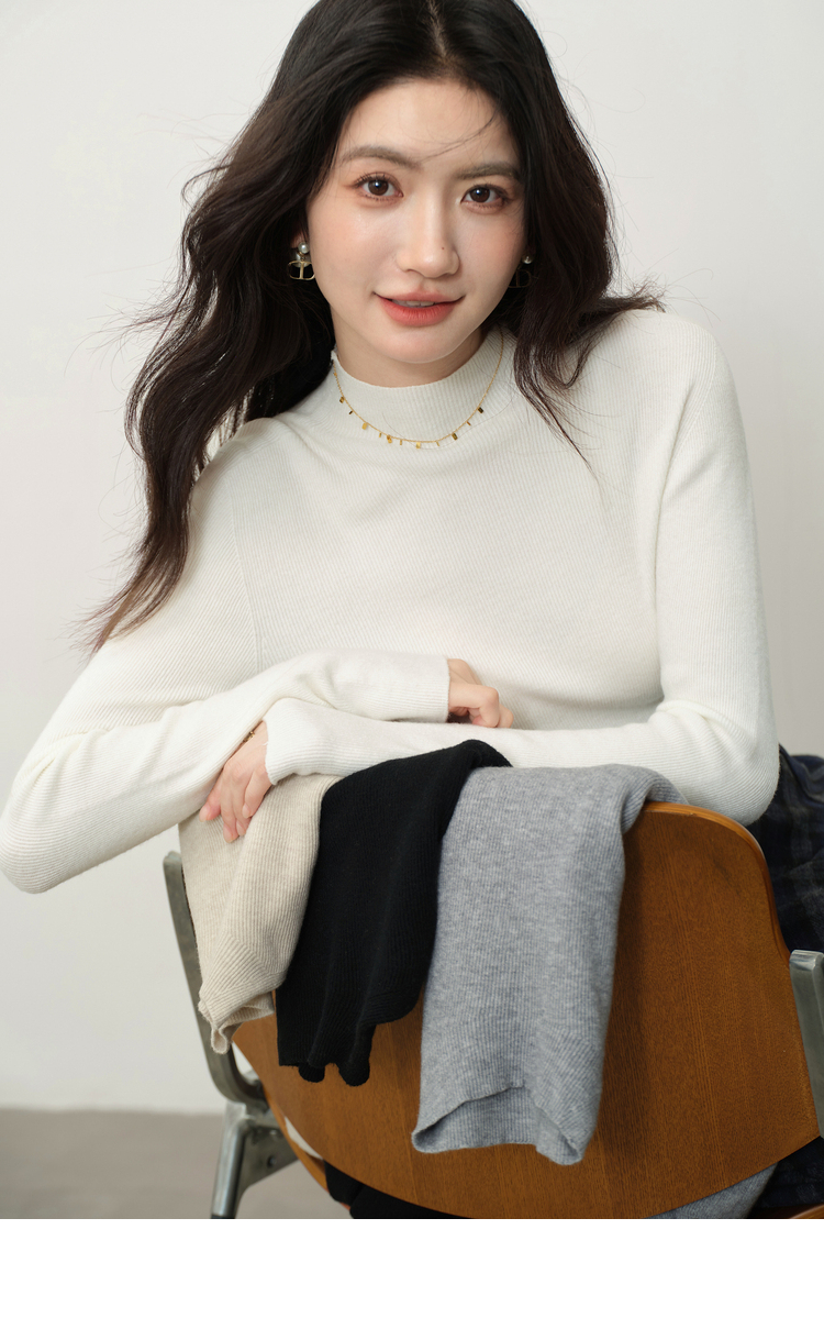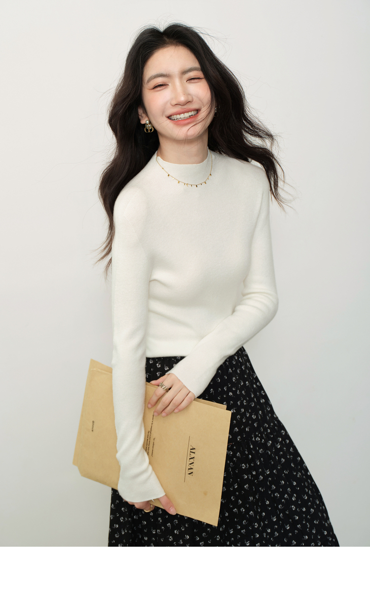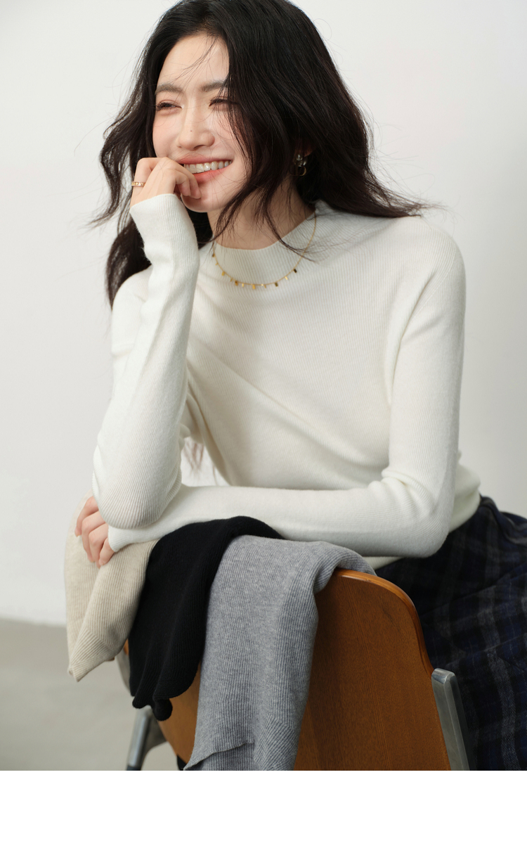 鹿向南「奶油淇淋」米白色长袖针织衫女秋小众正肩修身打底衫上衣