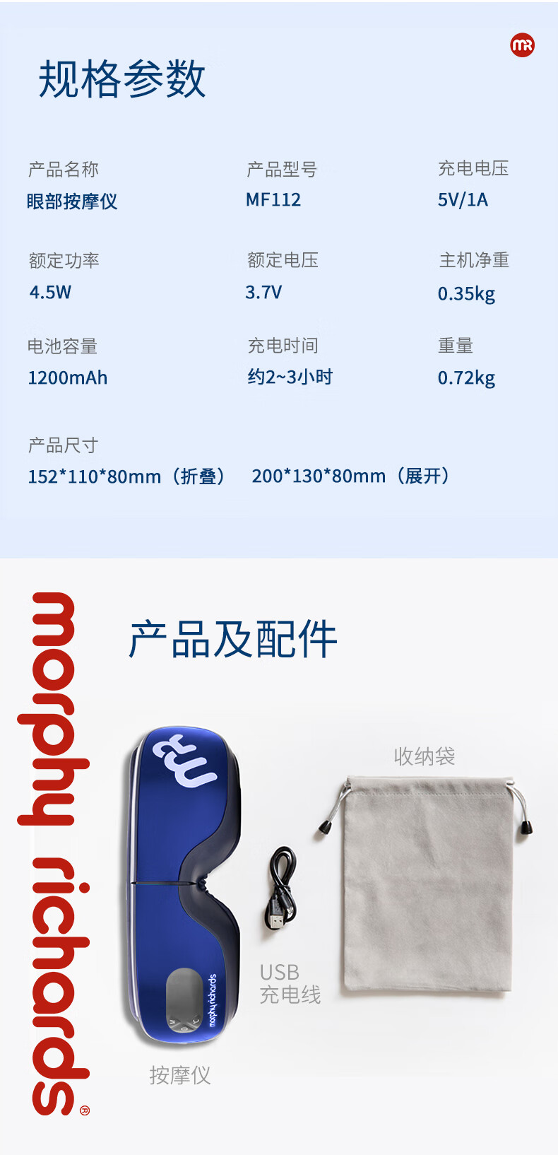 摩飞(MORPHYRICHARDS)眼部按摩仪眼睛按摩仪按摩器按摩眼罩热敷眼罩护眼仪成人护眼按摩仪节日礼物企业礼品MF112 MF112蓝色