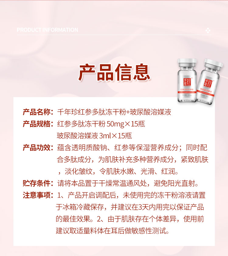 千年珍 红参多肽冻干粉 50ml*15支+3ml*15支