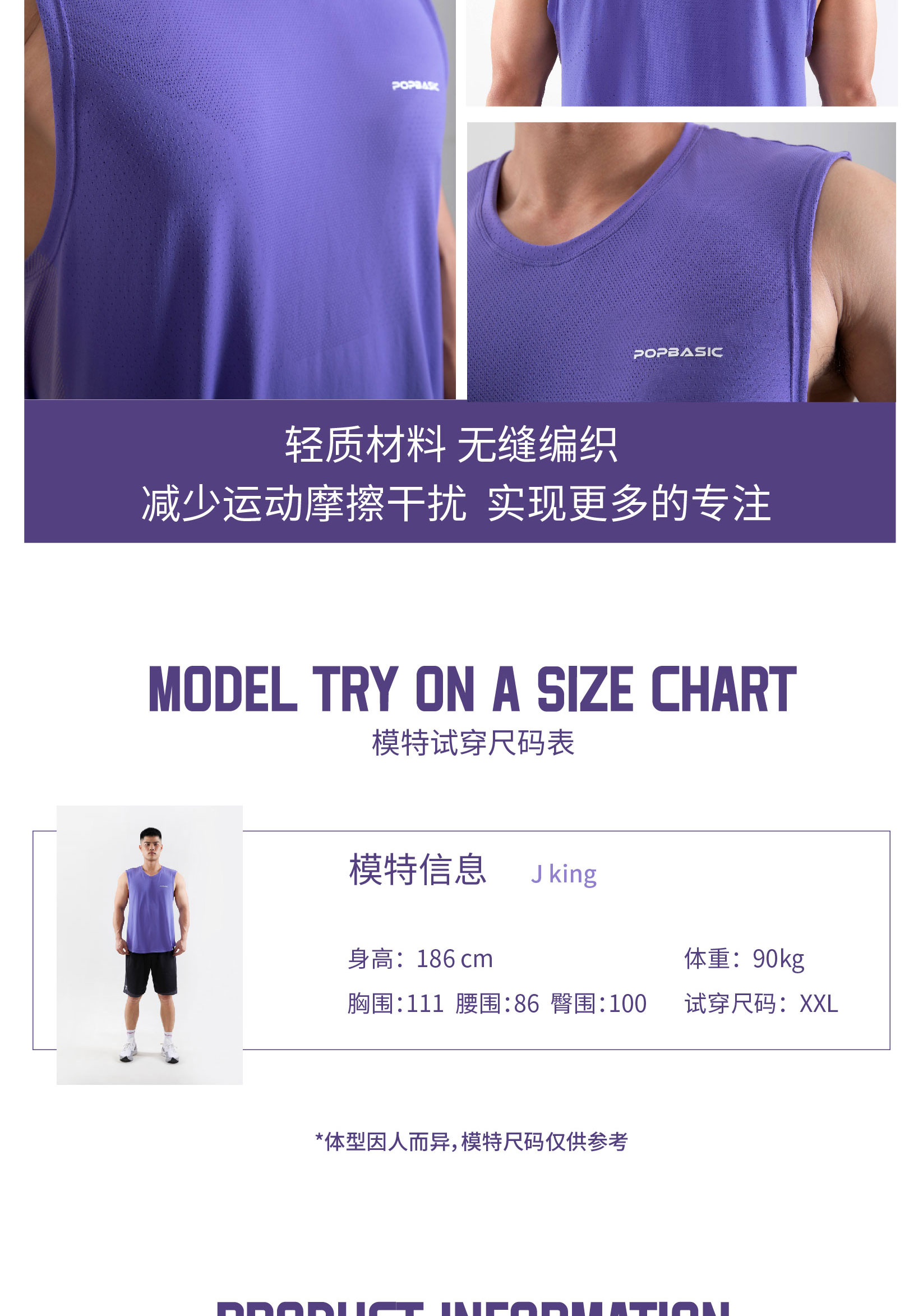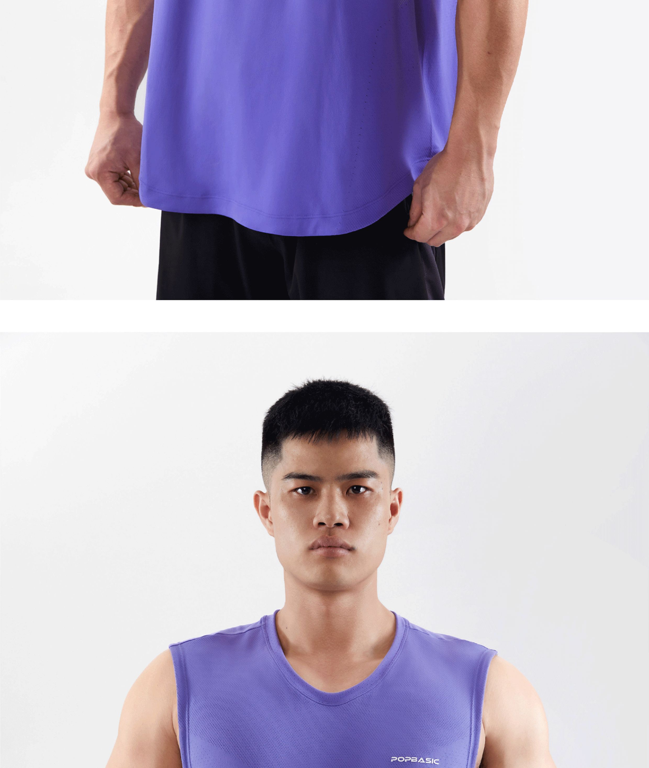 POPBASIC运动背心训练衣男宽松健身服无袖T恤