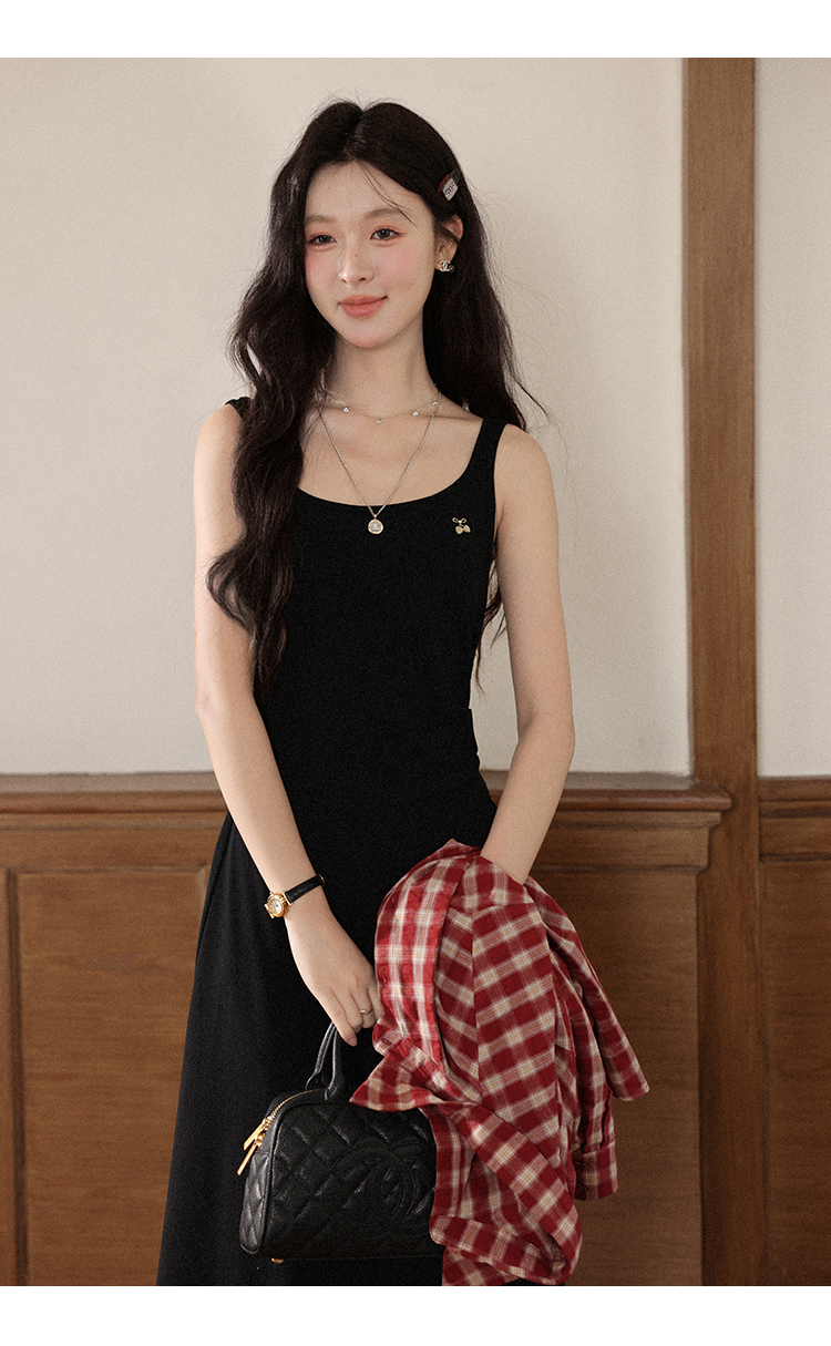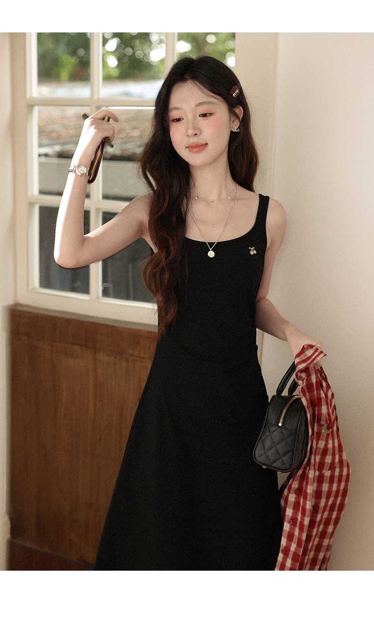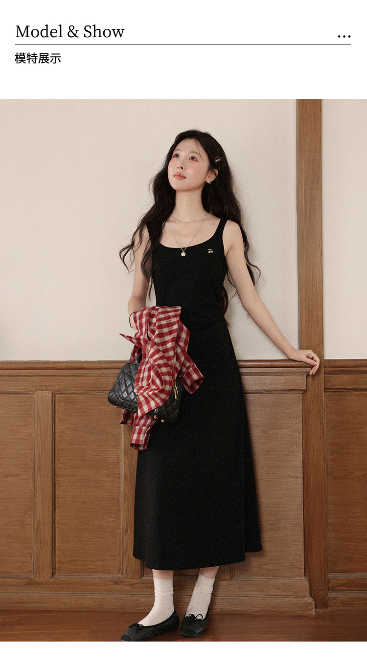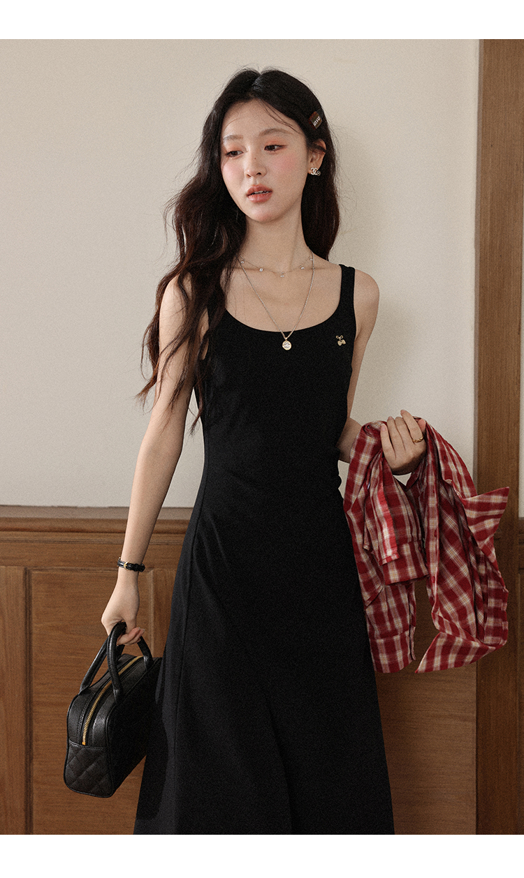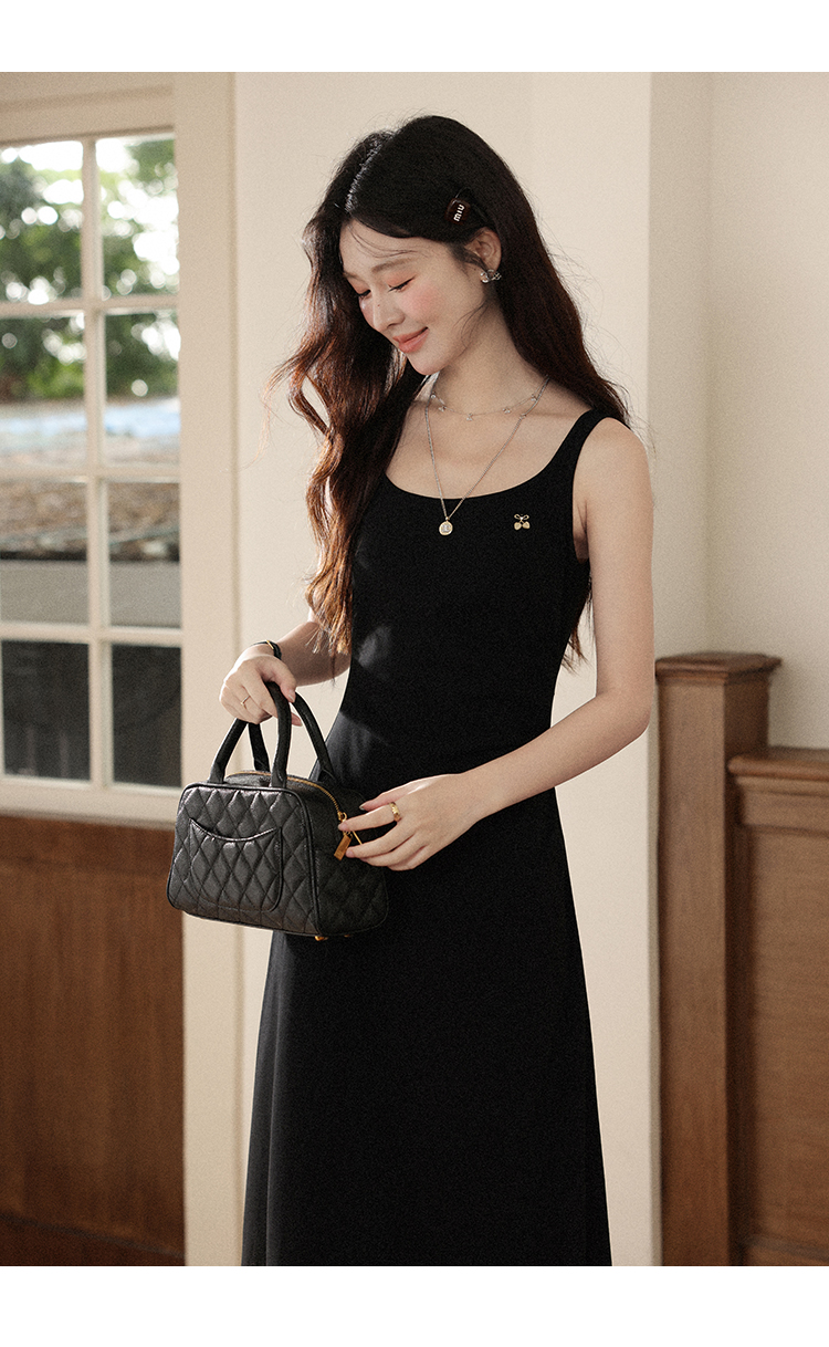 鹿向南「安妮日记」法式黑色无袖吊带背心连衣裙女夏显瘦A字长裙