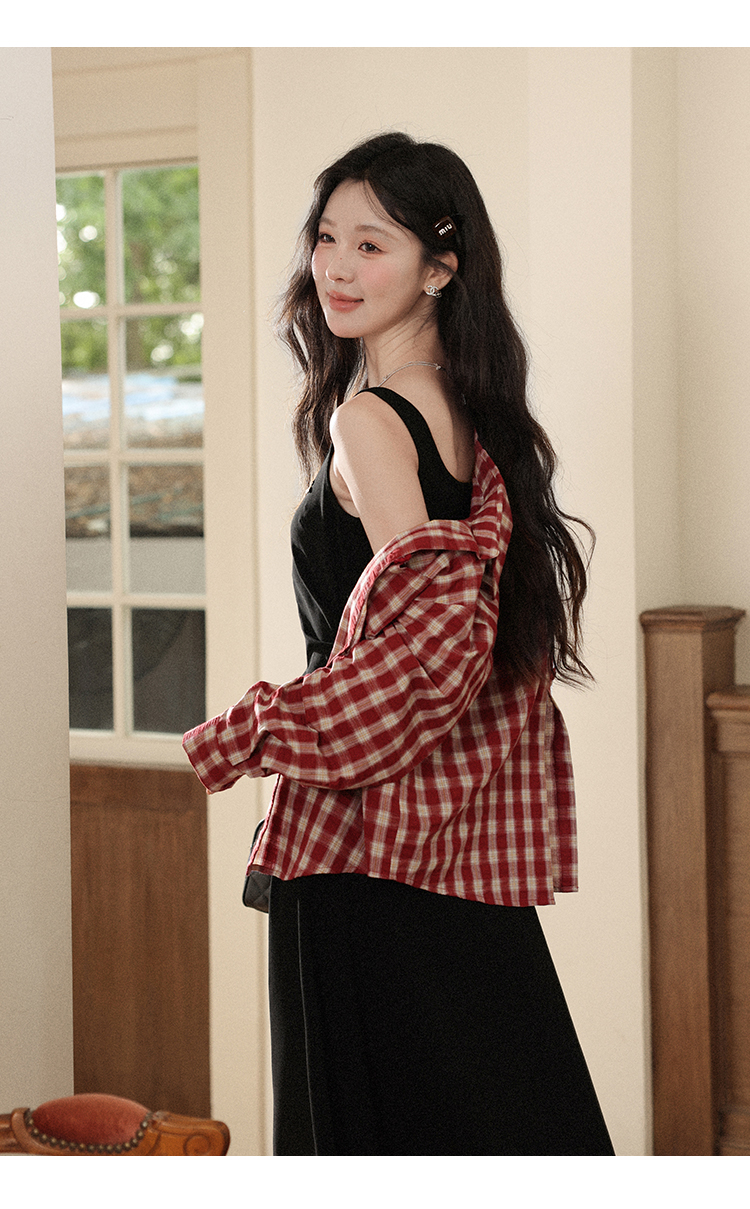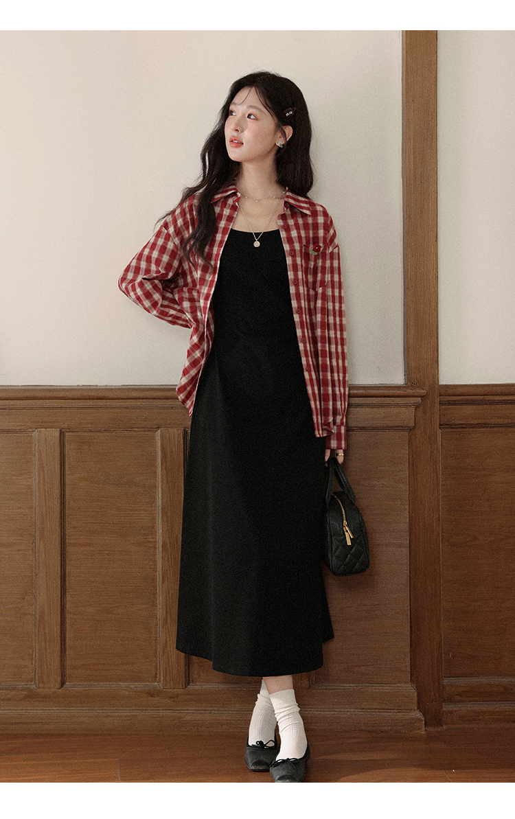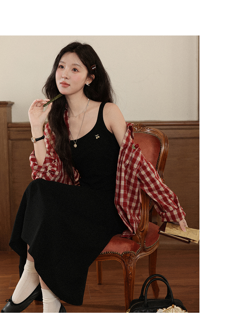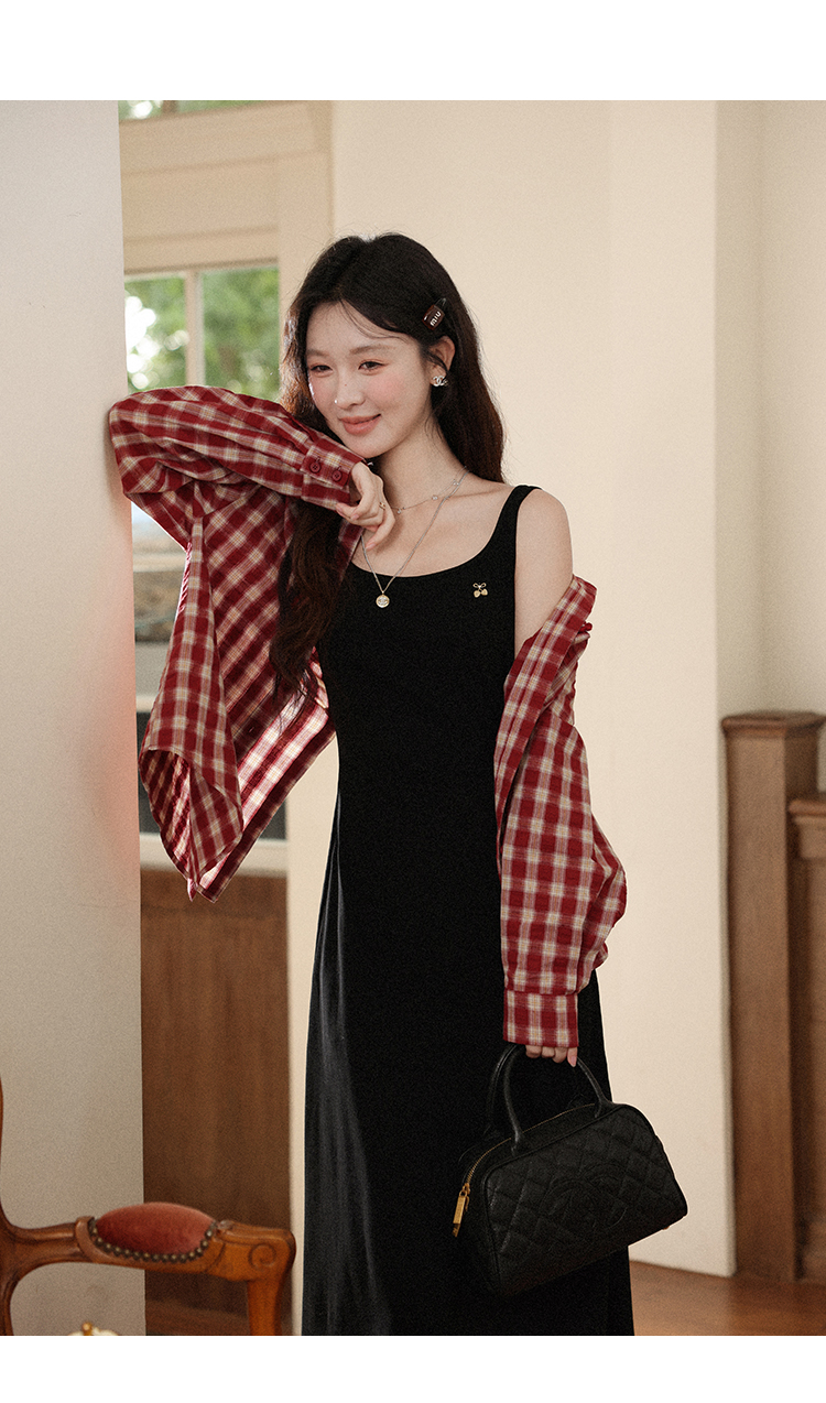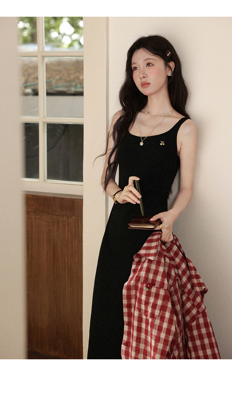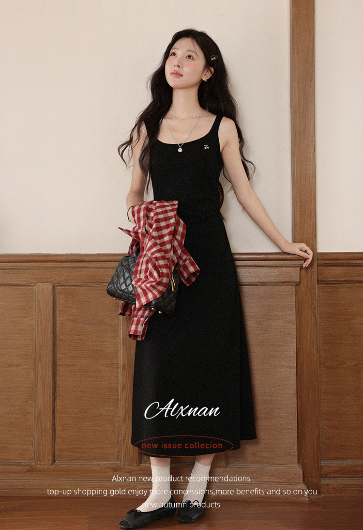 鹿向南「安妮日记」法式黑色无袖吊带背心连衣裙女夏显瘦A字长裙