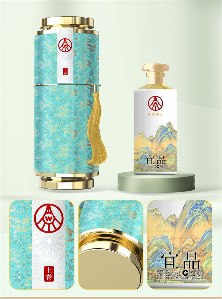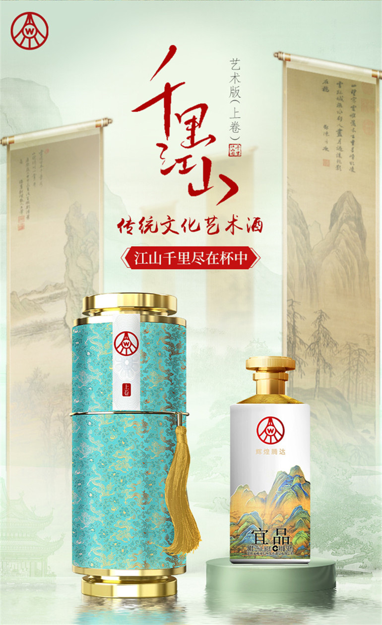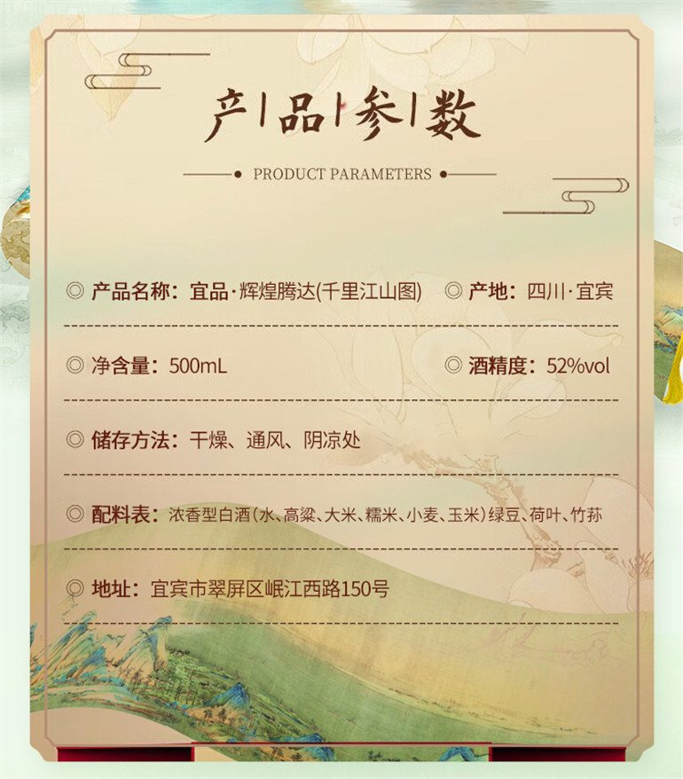 五粮液宜品·辉煌腾达(千里江山图),固态法酿造,柔和绵甜
