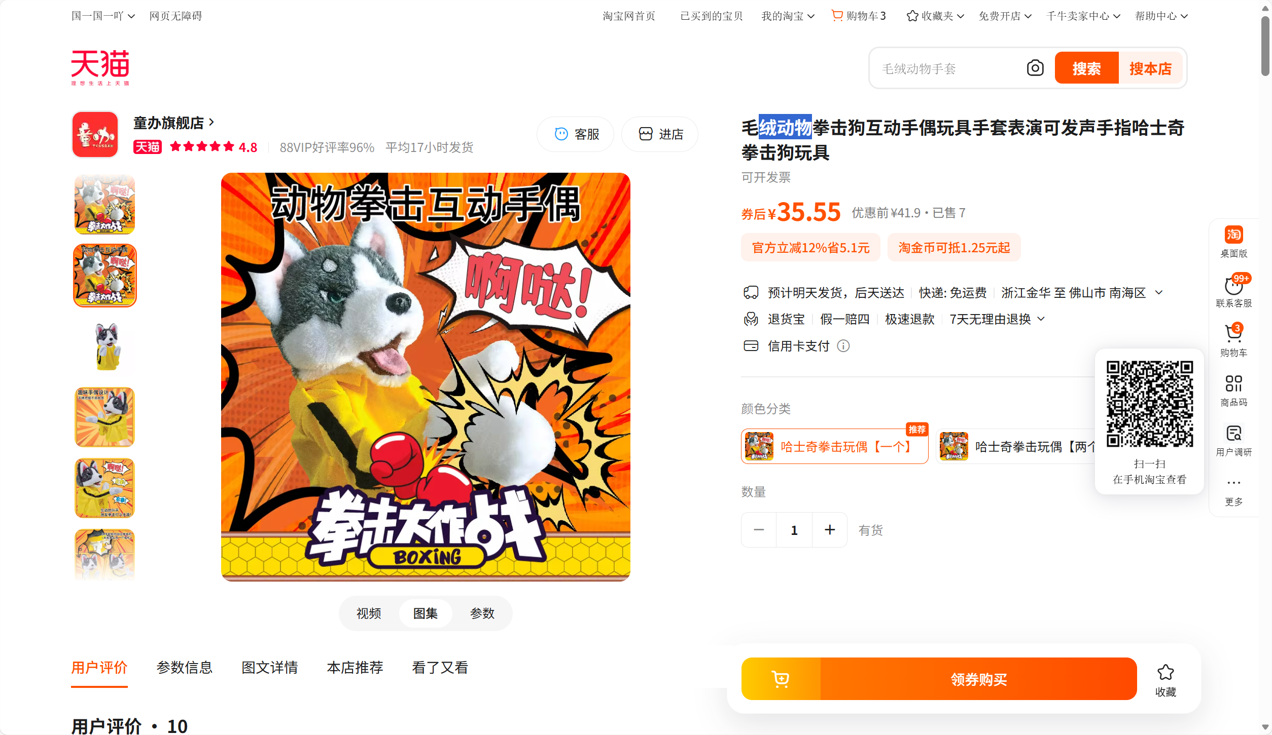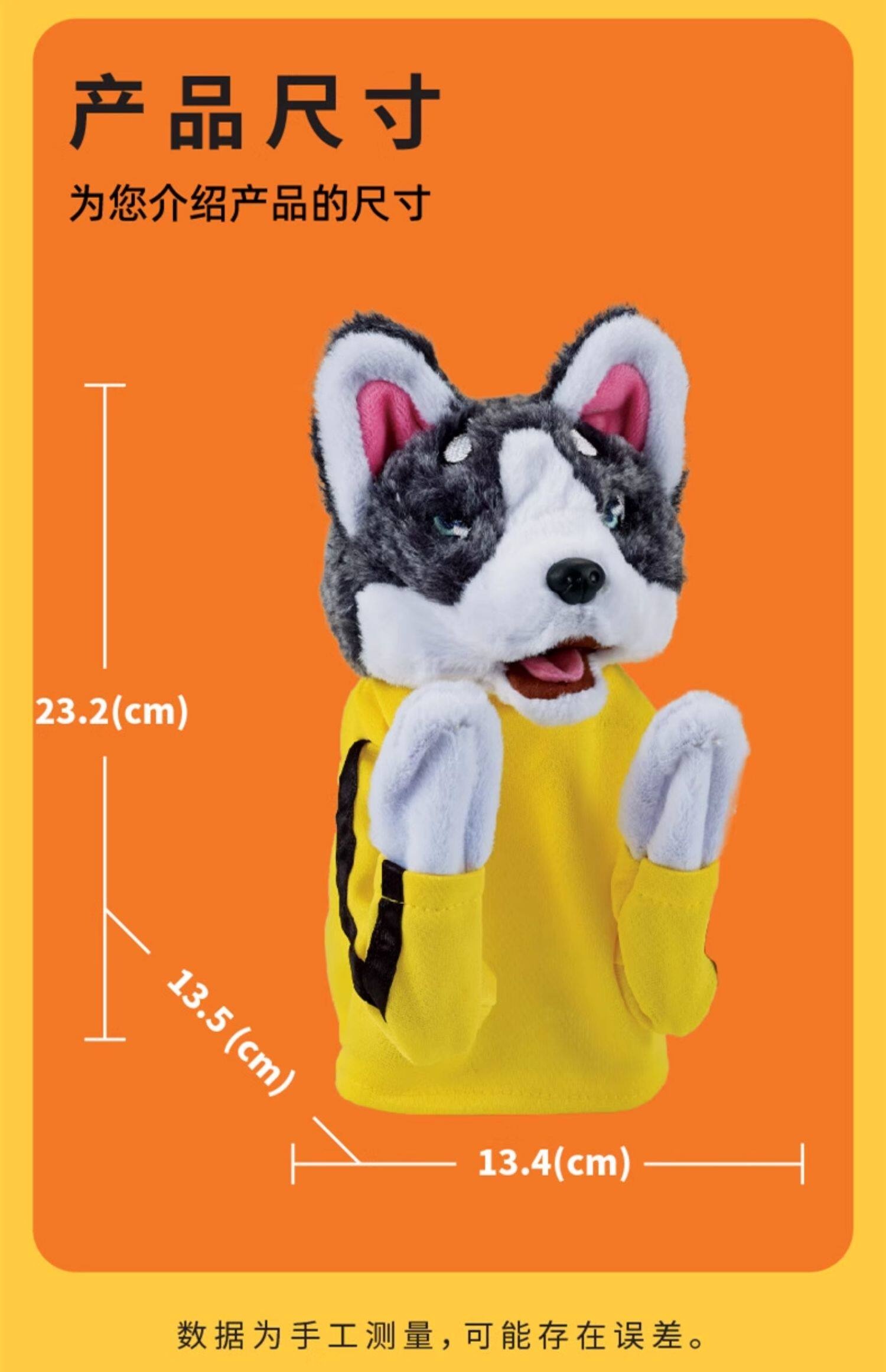 毛绒动物拳击狗互动手偶 玩具手套表演可发声手指哈士奇拳击玩具