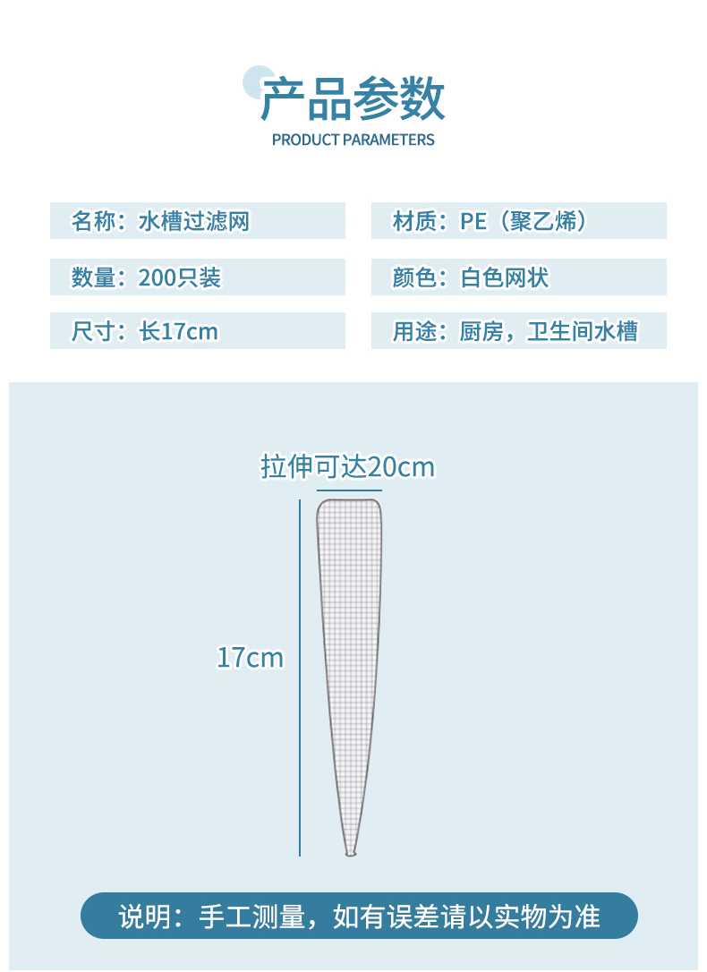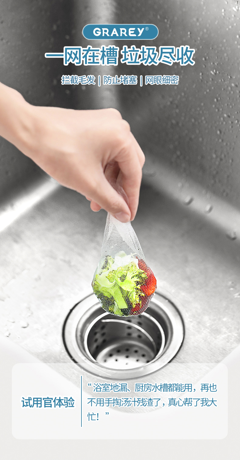 GRAREY 水槽过滤网 厨房水槽 卫生间地漏专用网加厚加密 发梳保护网 200只/包