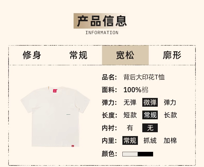 Dickies宽松版型 背后大印花短袖T恤 休闲潮流男女情侣上衣 DK0A8823