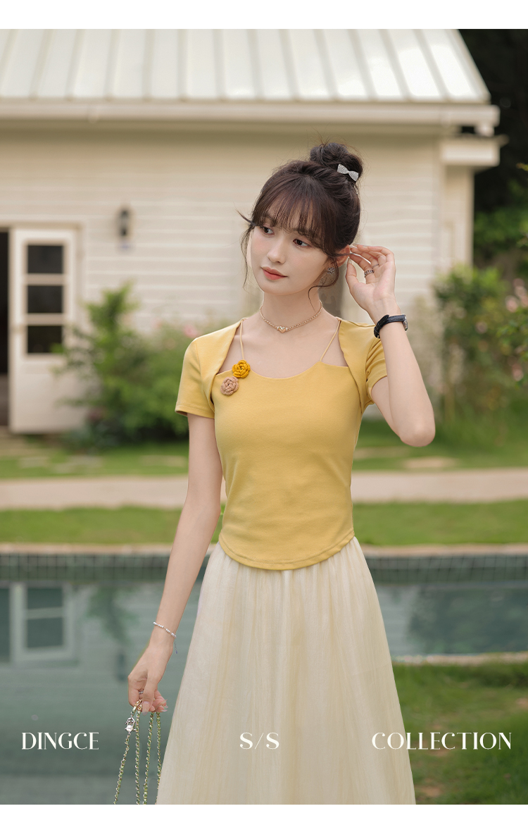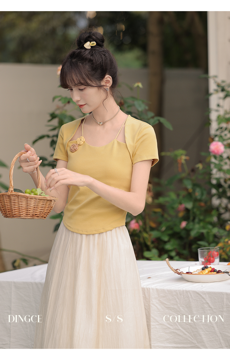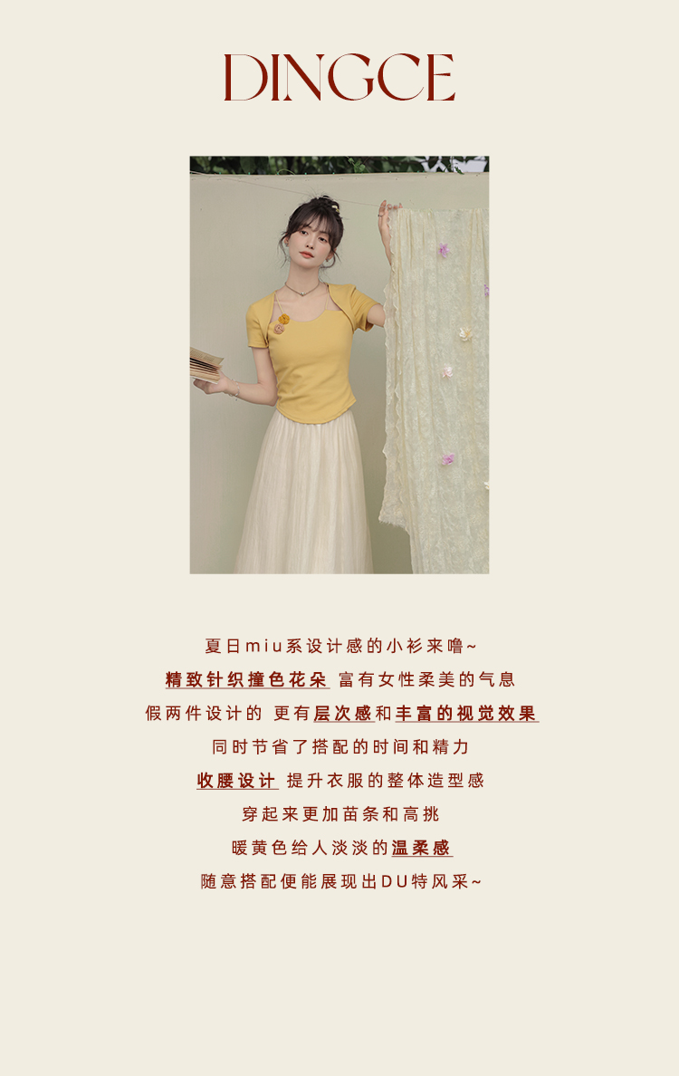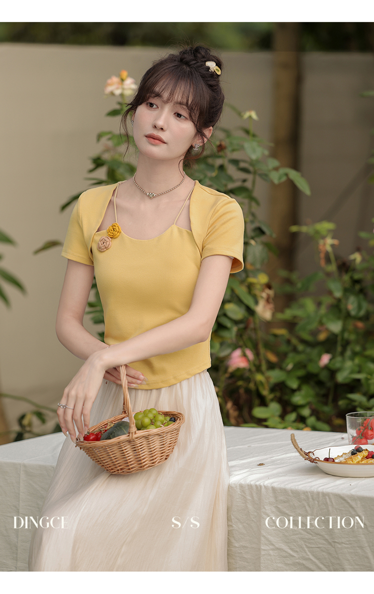 鹿向南 小个子「夕阳微光」显瘦气质短袖t恤女24新款夏季设计感上衣