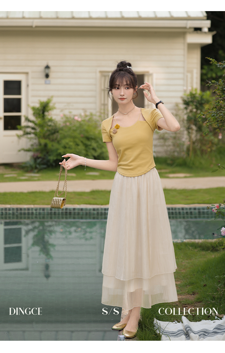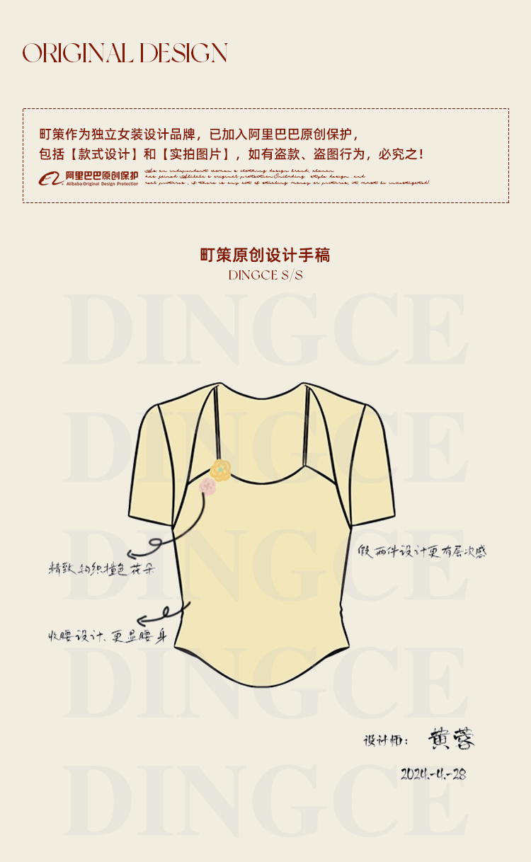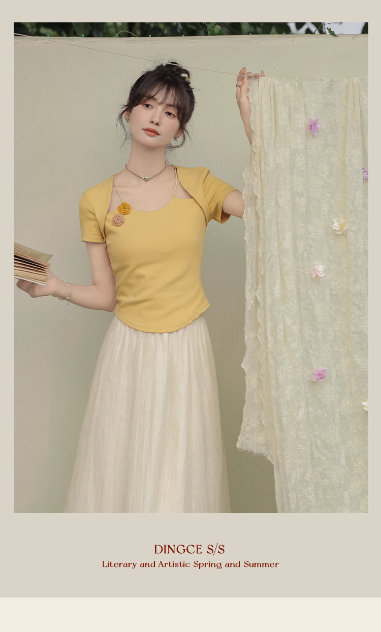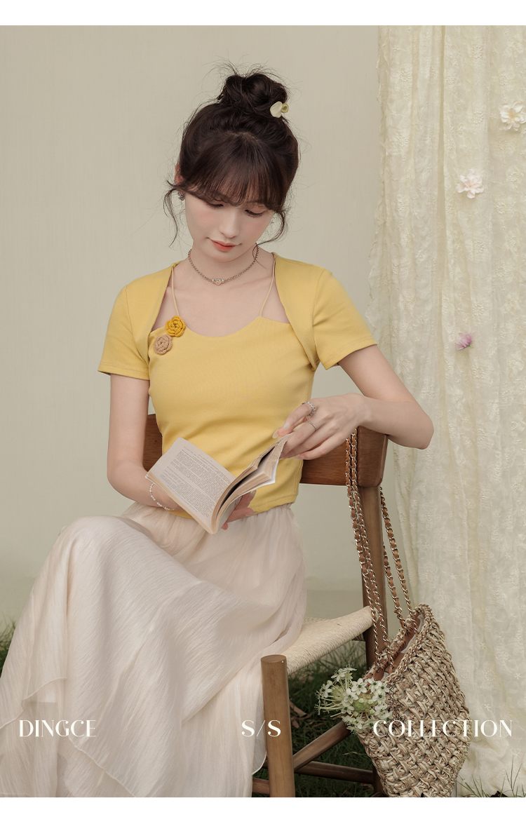 鹿向南 小个子「夕阳微光」显瘦气质短袖t恤女24新款夏季设计感上衣