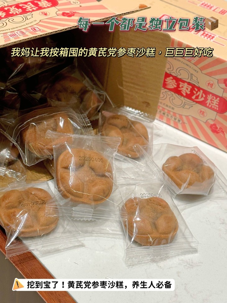 养生女孩快看!把黄芪党参红枣做成沙糕也太会了吧!0添加蔗糖却自带自然甜香,软乎乎的口感像在吃云朵~独立包装揣包里超方便,下午茶时间来一个,健康又治愈,打工人幸福感拉满! 姐妹们信我!这款黄芪党参枣沙糕真的能处!补气血绝绝子,连喝一周脸色都红润了~重点是完全没有中药苦味,反而越嚼越香!当早餐、解馋小零嘴都超合适,养生党闭眼冲就完事!