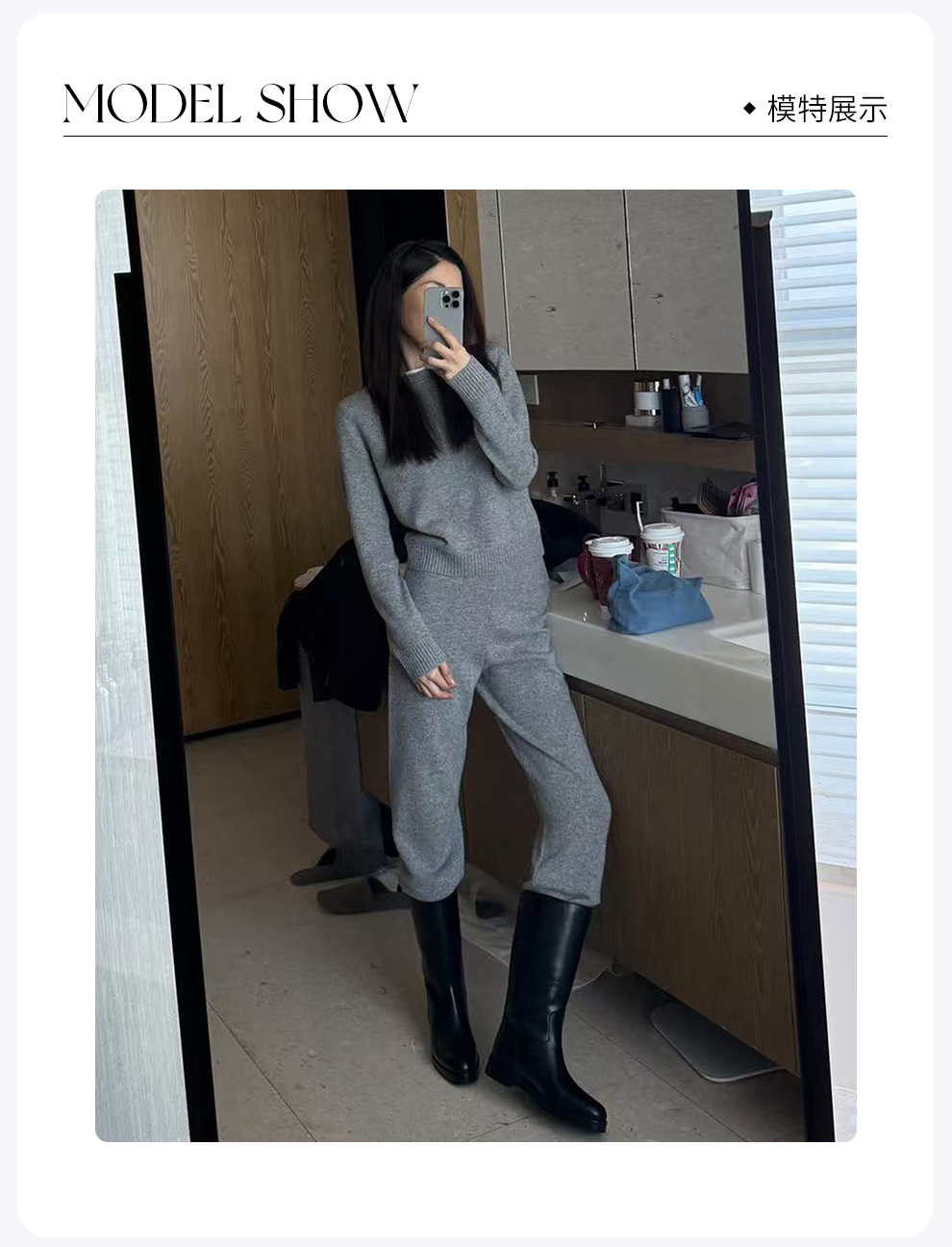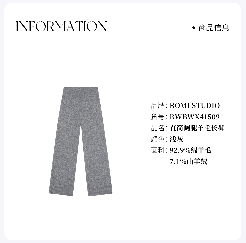 ROMI STUDIO"格雷系列"绵羊毛山羊绒混纺直筒阔腿裤 RWBWX41509