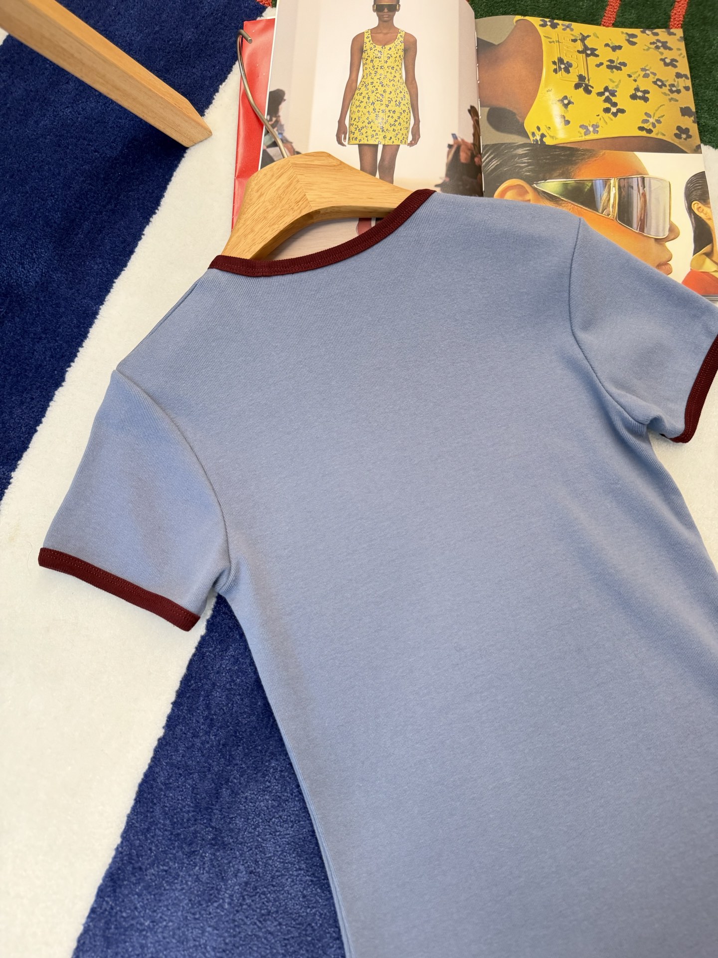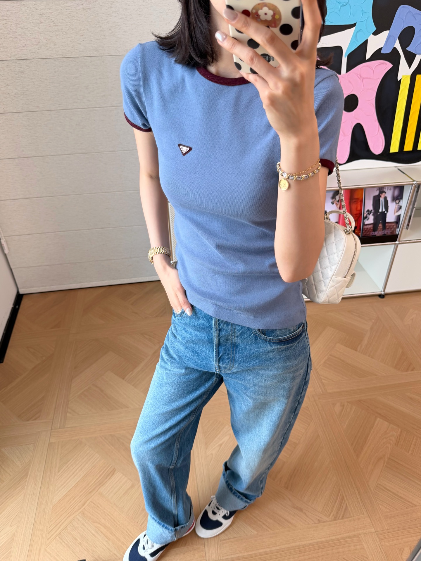 甄选亲肤透气面料,触感柔软细腻,带来舒适穿着体验✨精细做工搭配利落剪裁😉打造高品质日常刚需单品💞雾霾蓝底色+酒红撞色包边➕搭配经典三角标点缀🔗为简约造型注入复古高级感,轻松提升精致度💫合身版型,修饰身形不紧绷,适配通勤、休闲、日常出街等多元场景😜从基础穿搭到个性叠穿,轻松演绎舒适自在的时尚风格✔️码数SML