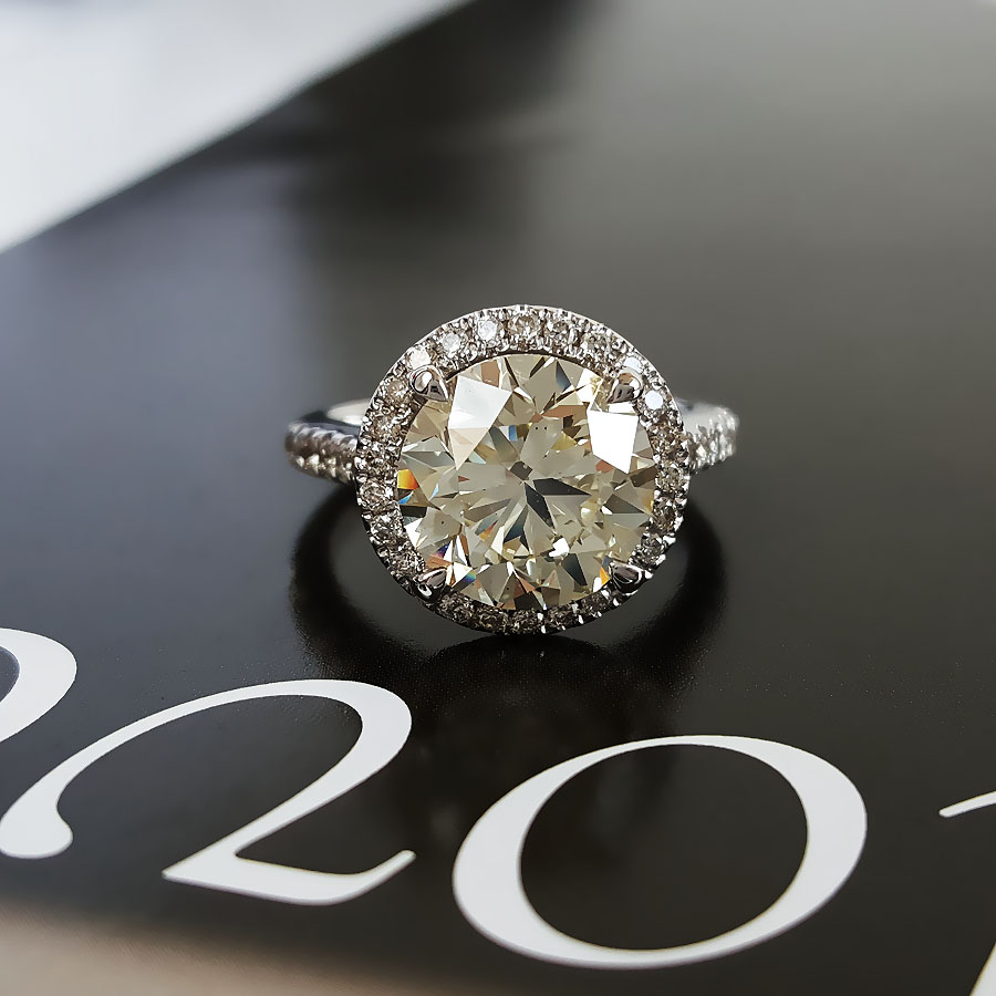 款式 | AU750经典豪华围镶款3.50克拉钻石戒指 |