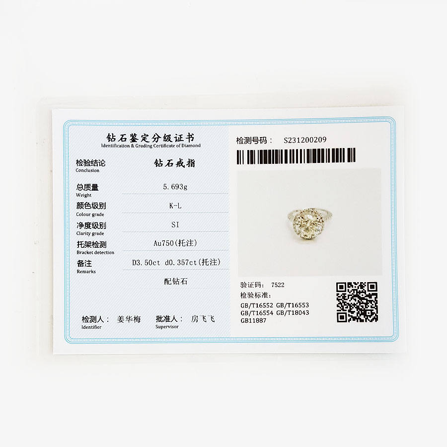 【天然正品】AU750经典豪华围镶款3.50克拉钻石戒指10号(戒圈可改)现售价:111880!050924JJ19