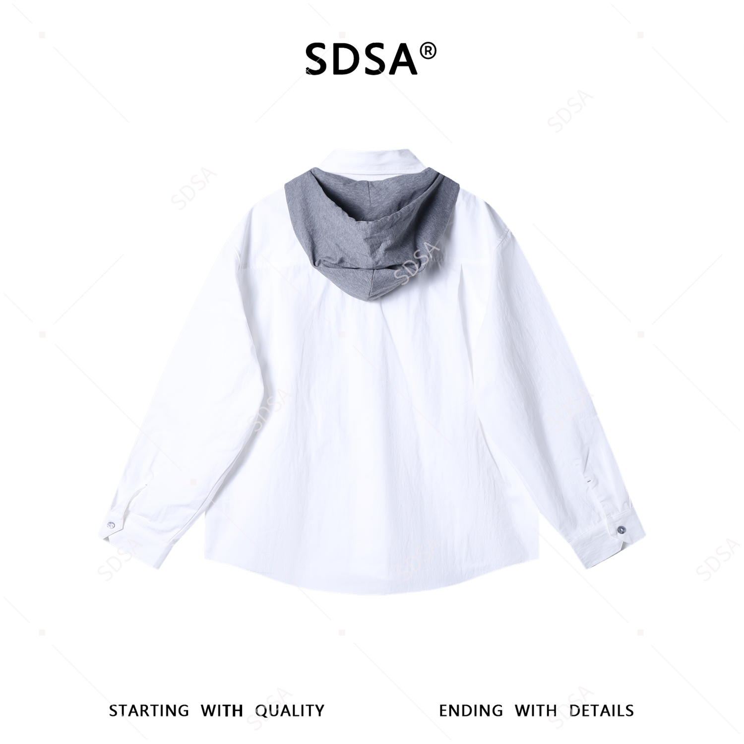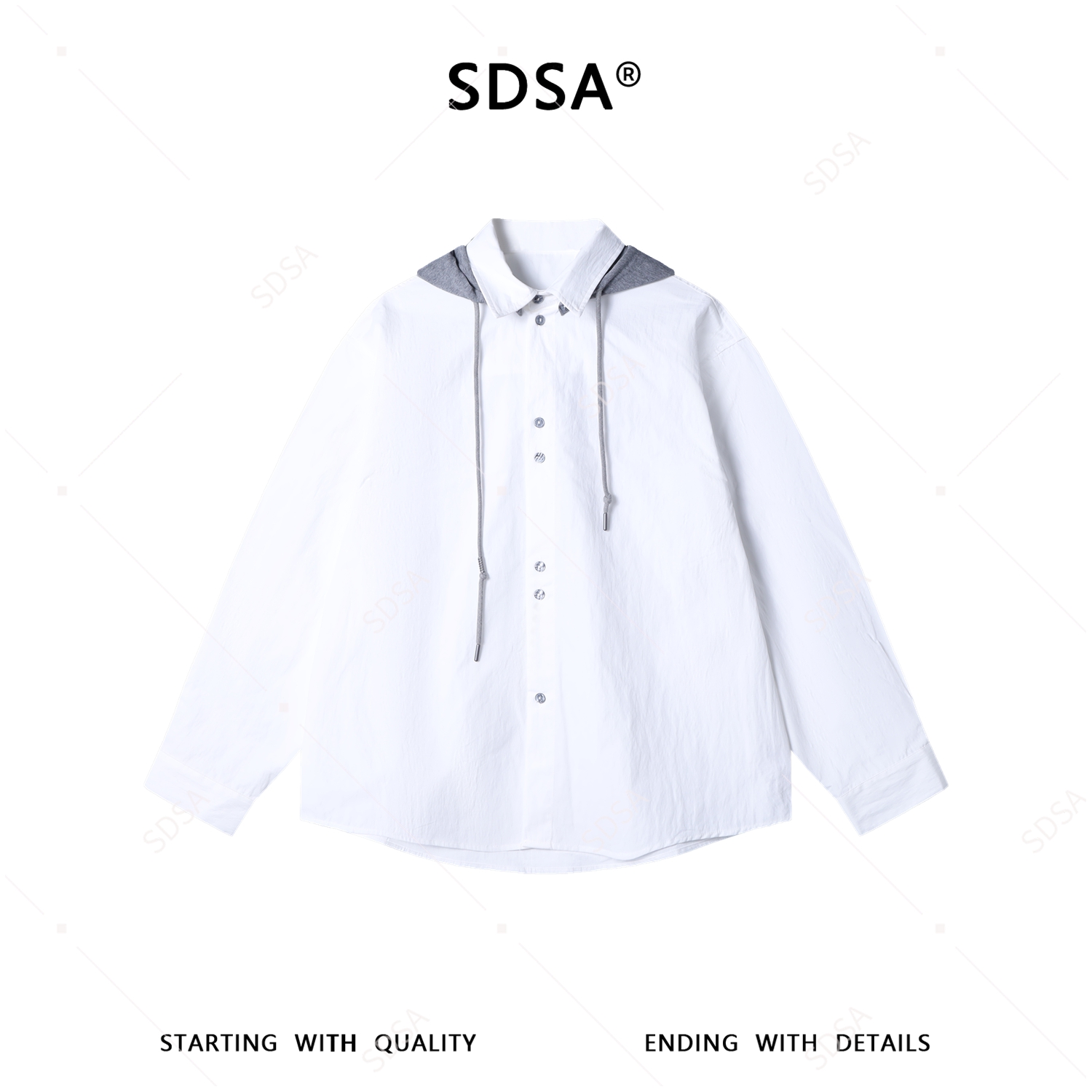 C7009SDSA男士春夏新款痞帅男装时尚潮牌撞色拼接连帽衬衫百搭宽松衬衣