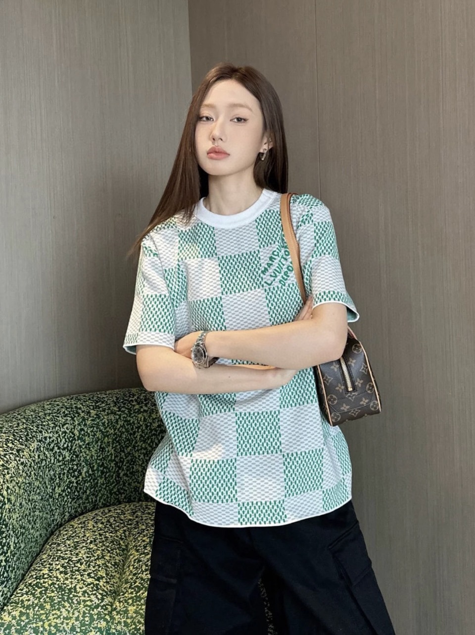 驴家 草绿格子针织短袖(JN)
