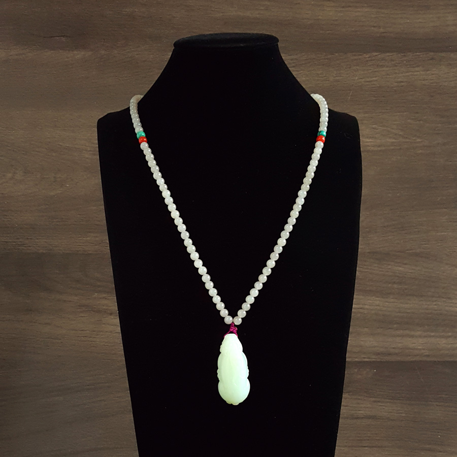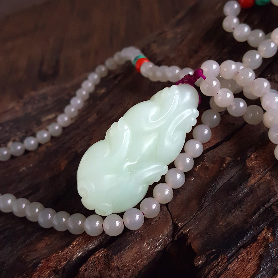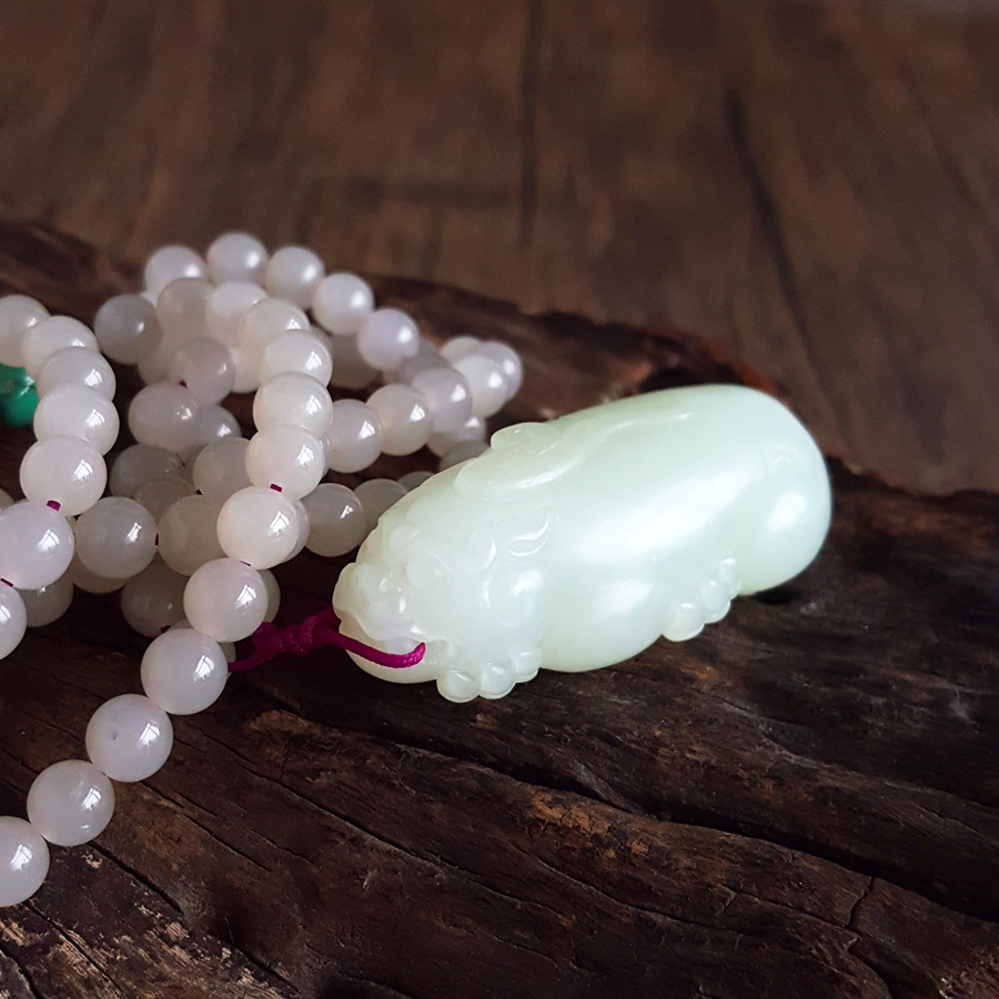 【天然正品】天然约6MM烟紫和田玉圆珠配新疆料貔貅造型和田玉(招财、平安)吊坠项链吊坠:50.9*22.6*16.9MM / 项链:68CM中性061125NJM09