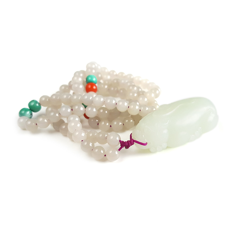 名称 | 天然约6MM烟紫和田玉圆珠配新疆料貔貅造型和田玉(招财、平安)吊坠项链 |
