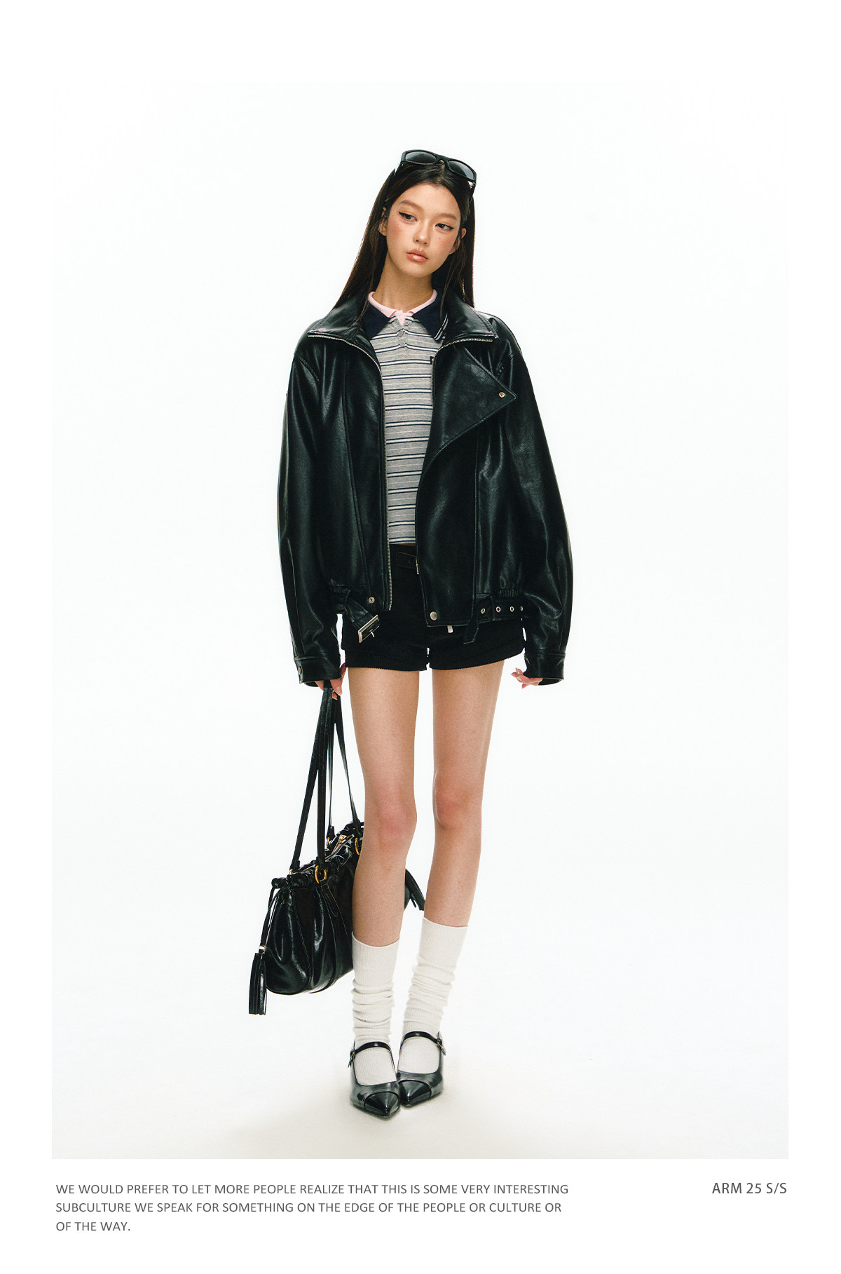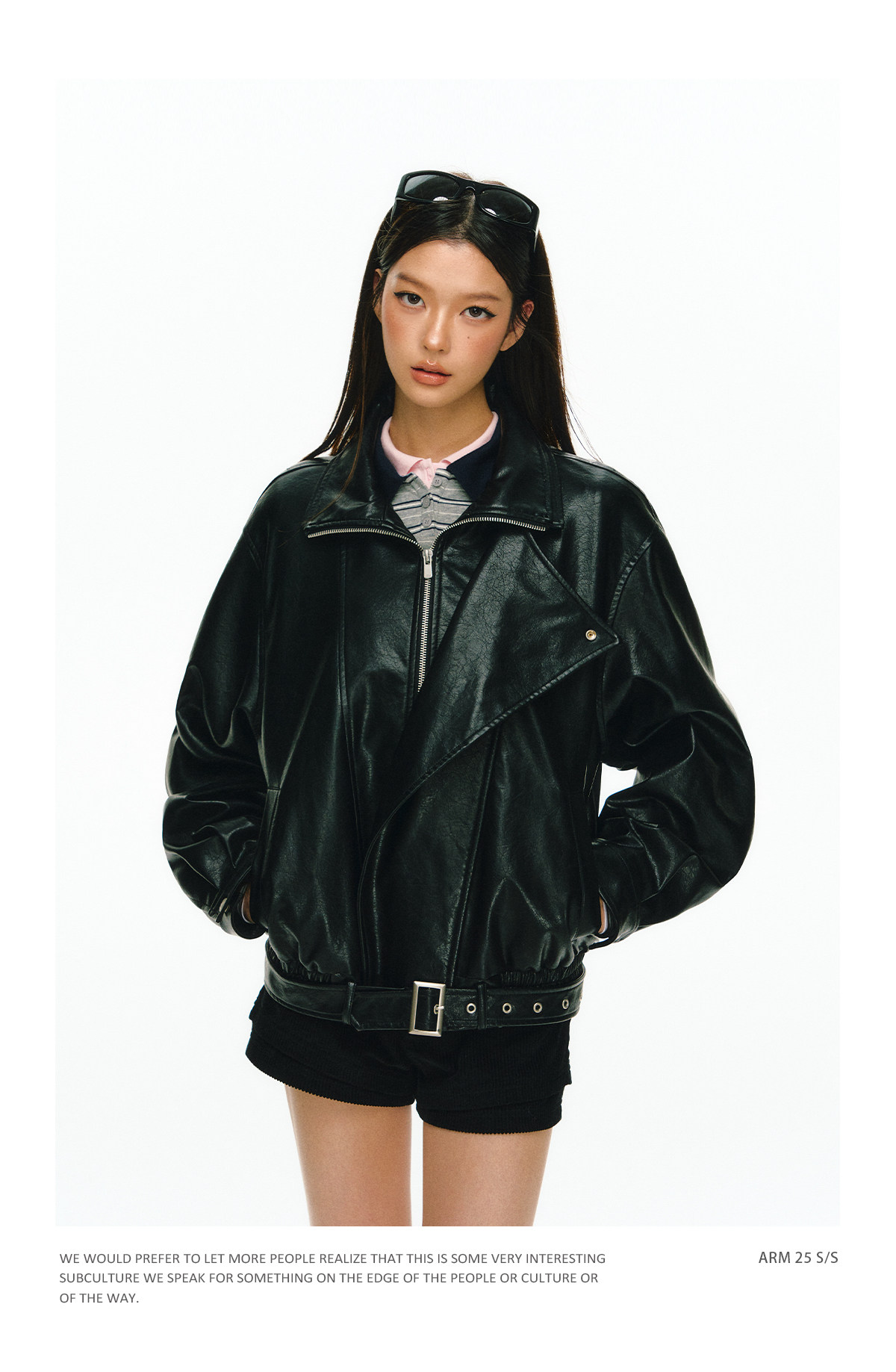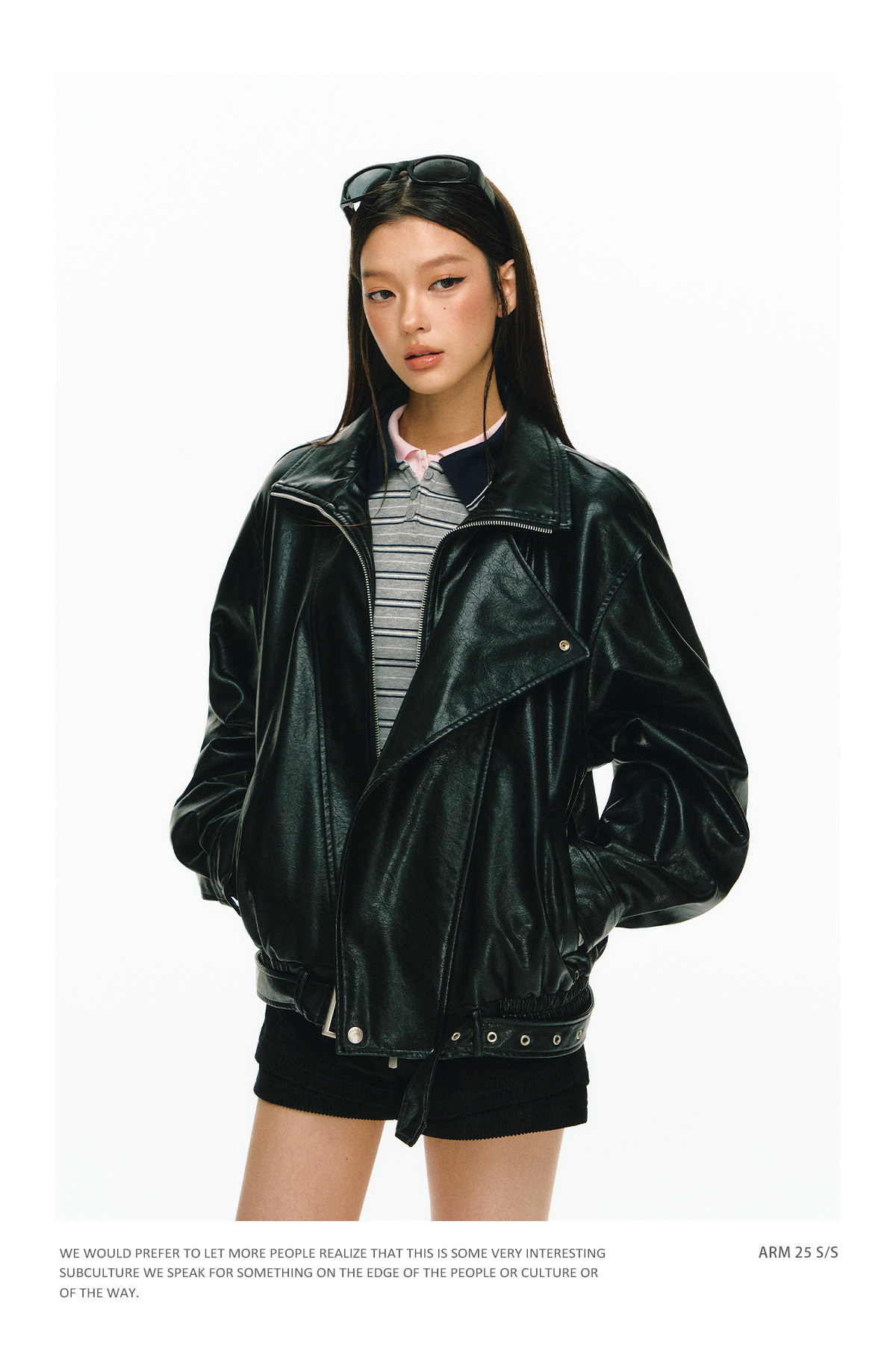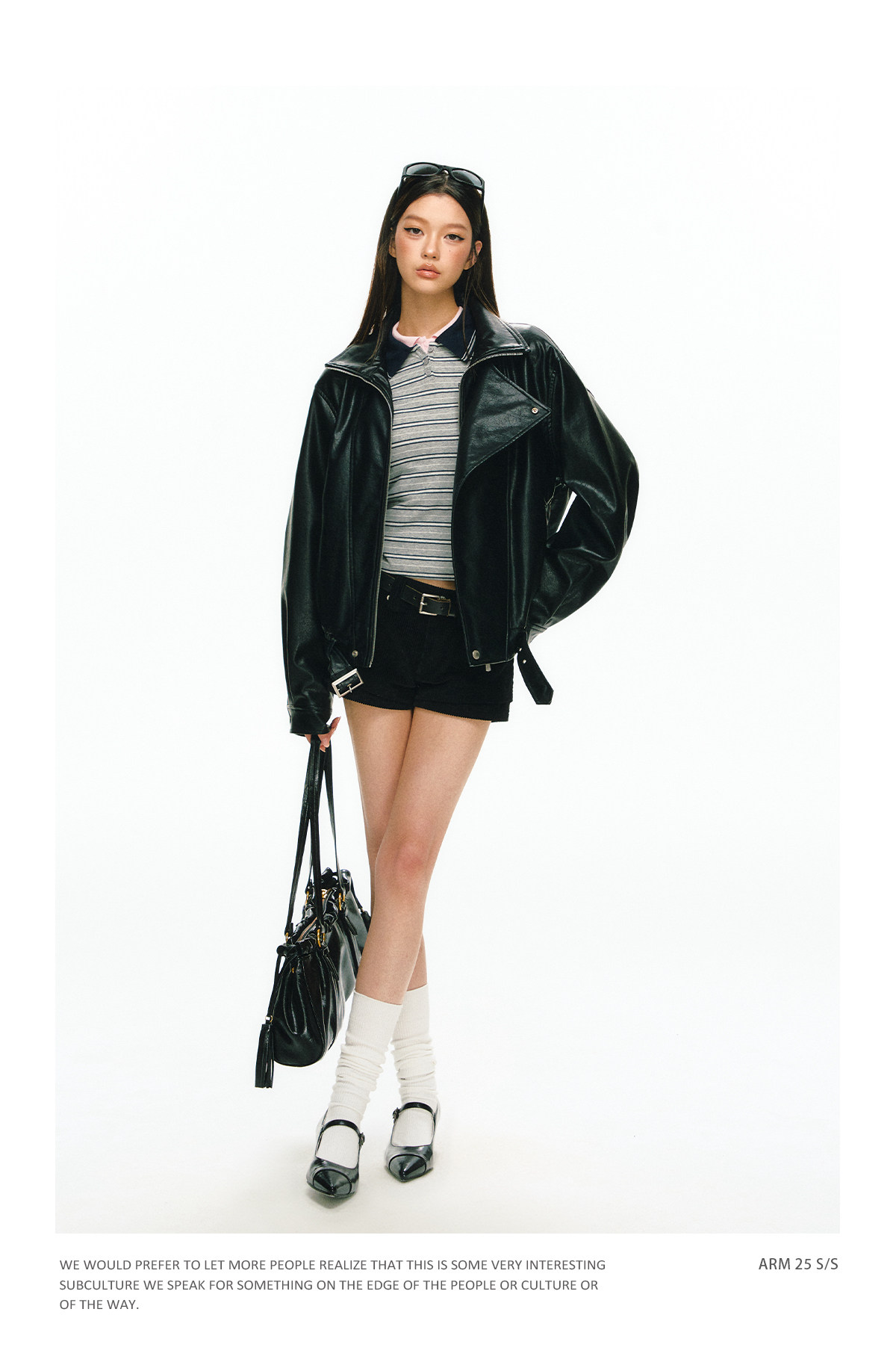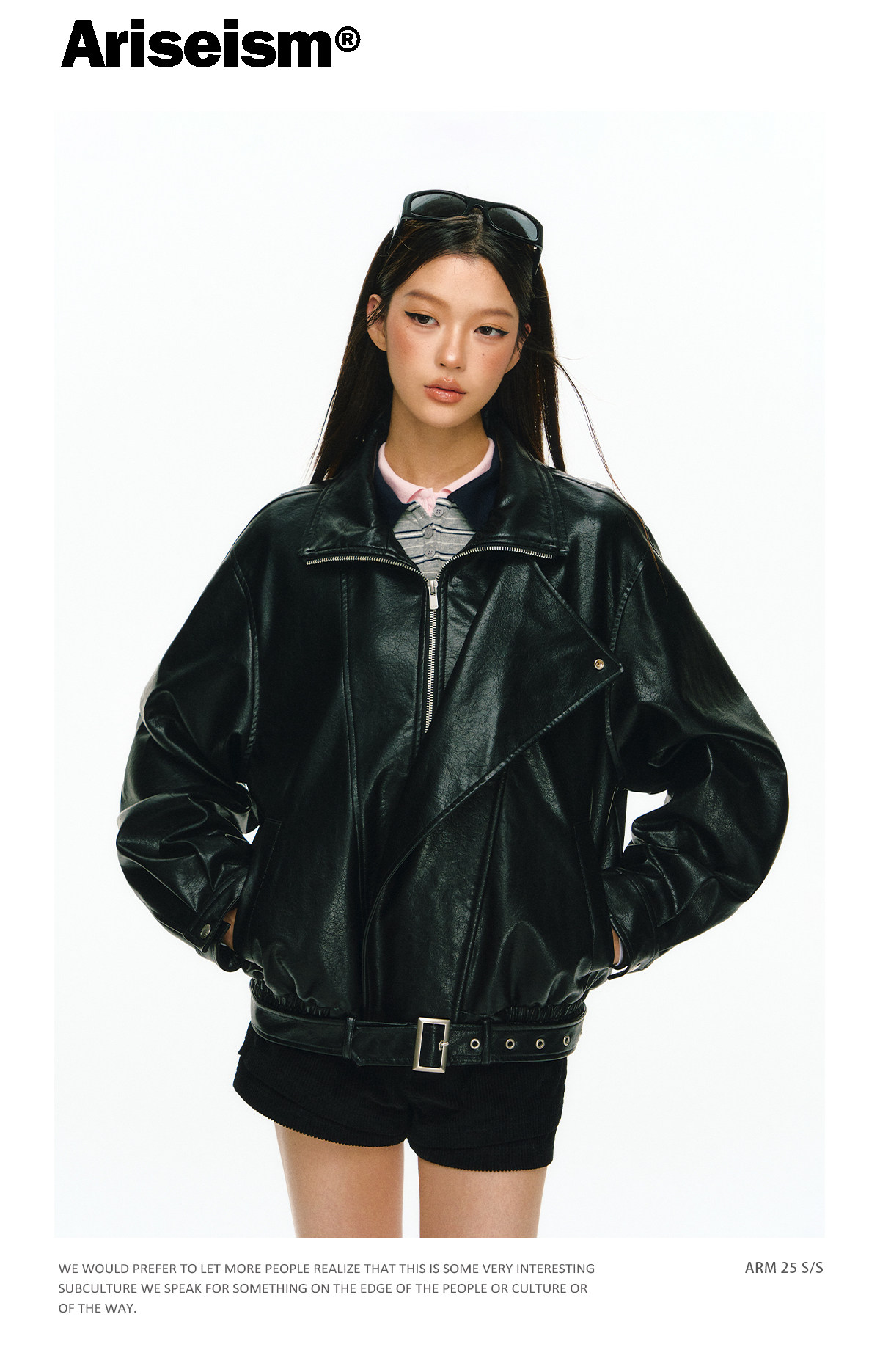 Ariseism 美式复古设计感皮衣女秋季新款上衣外套
