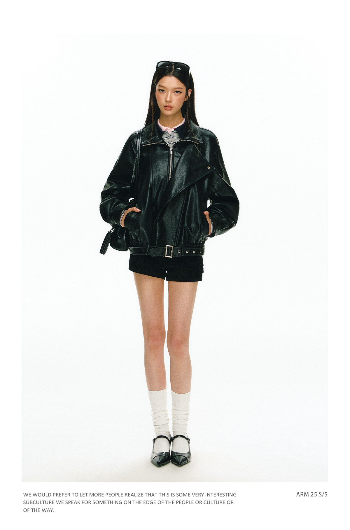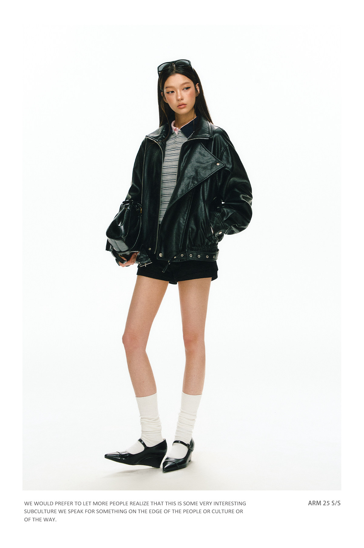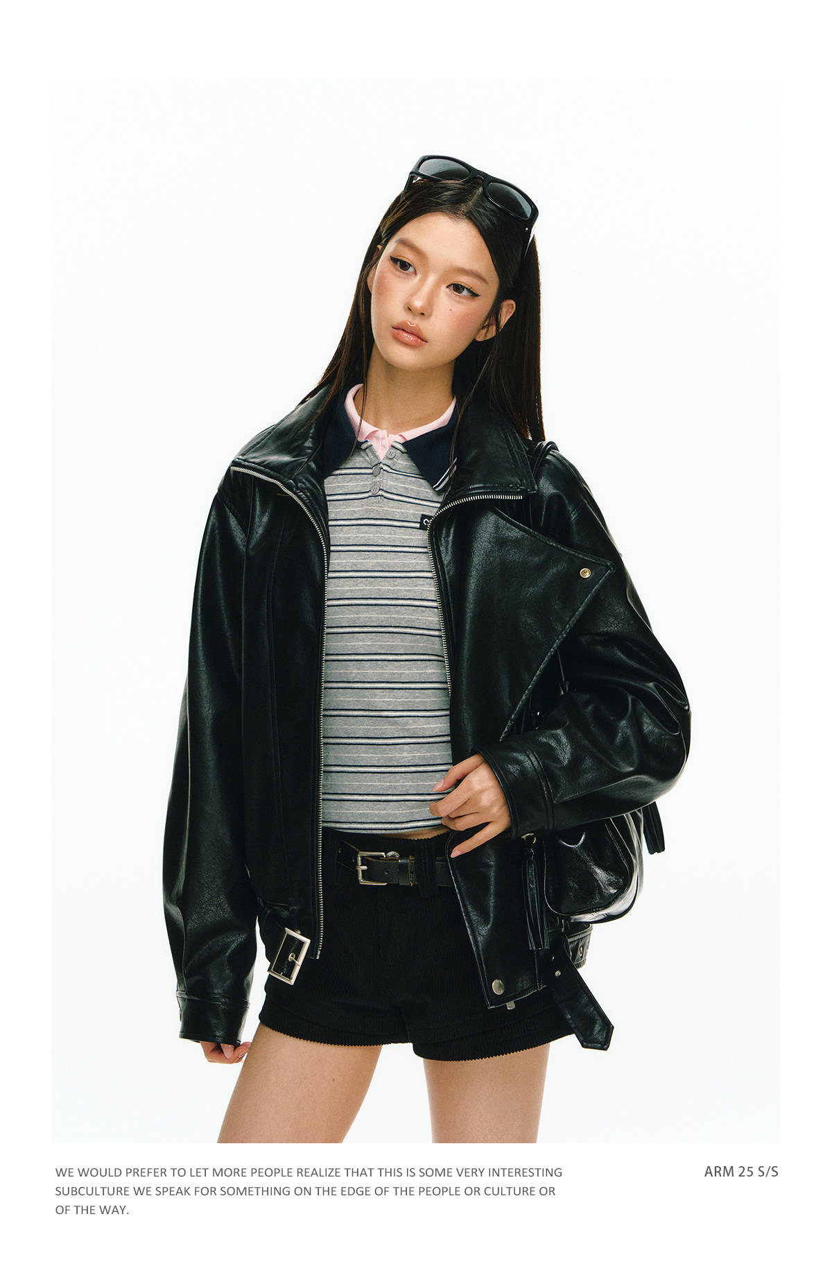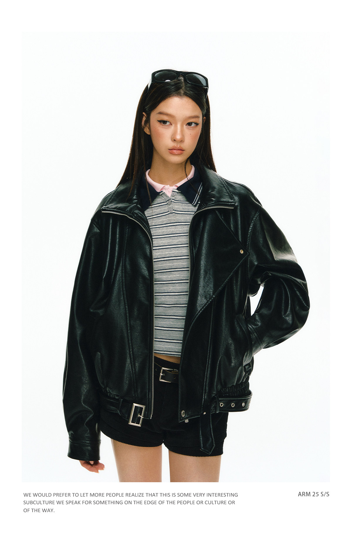 Ariseism 美式复古设计感皮衣女秋季新款上衣外套