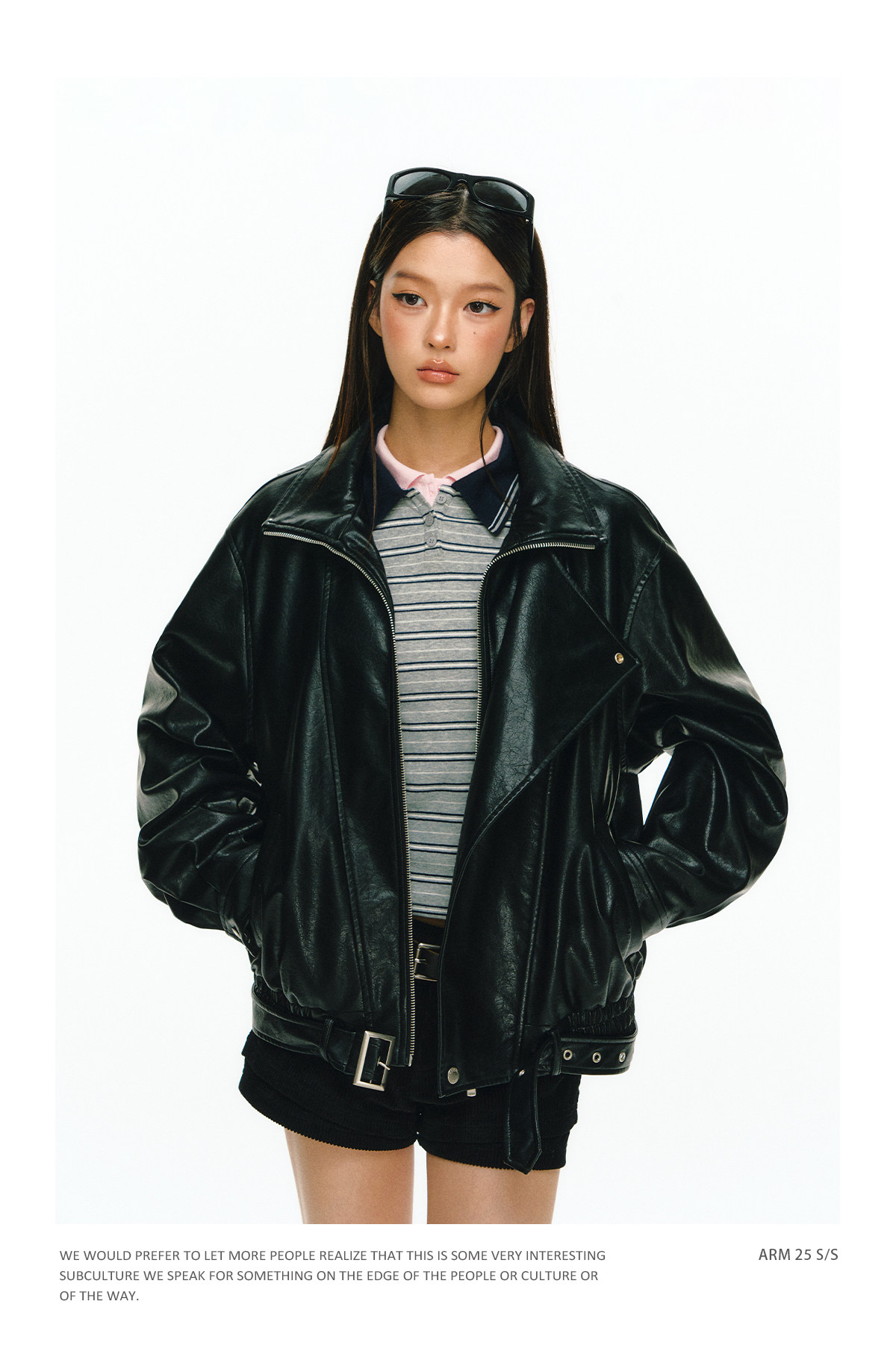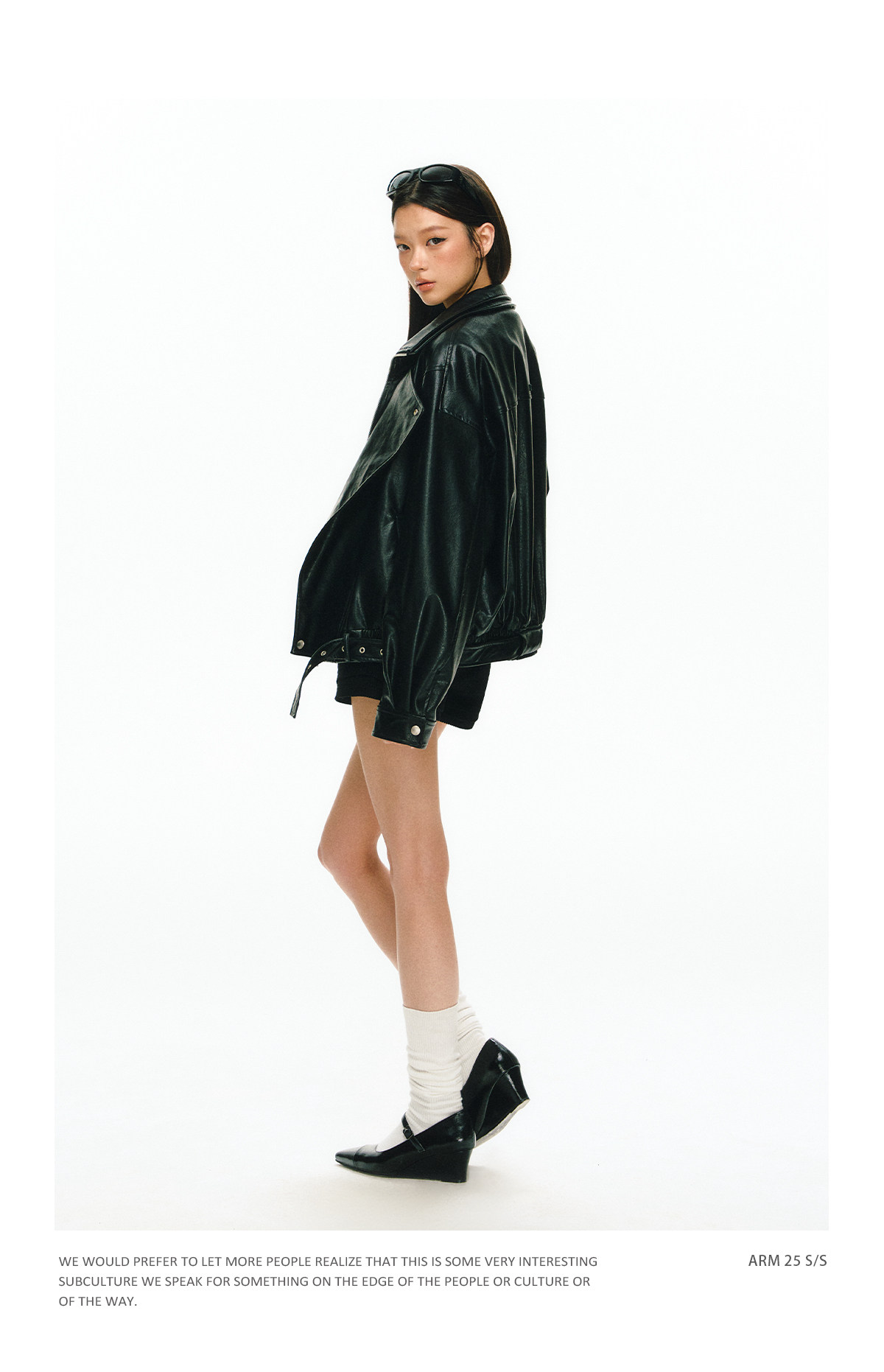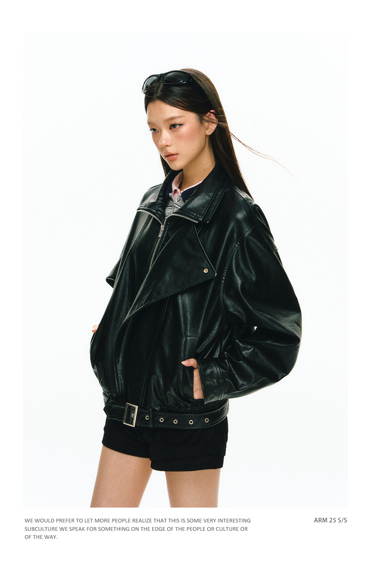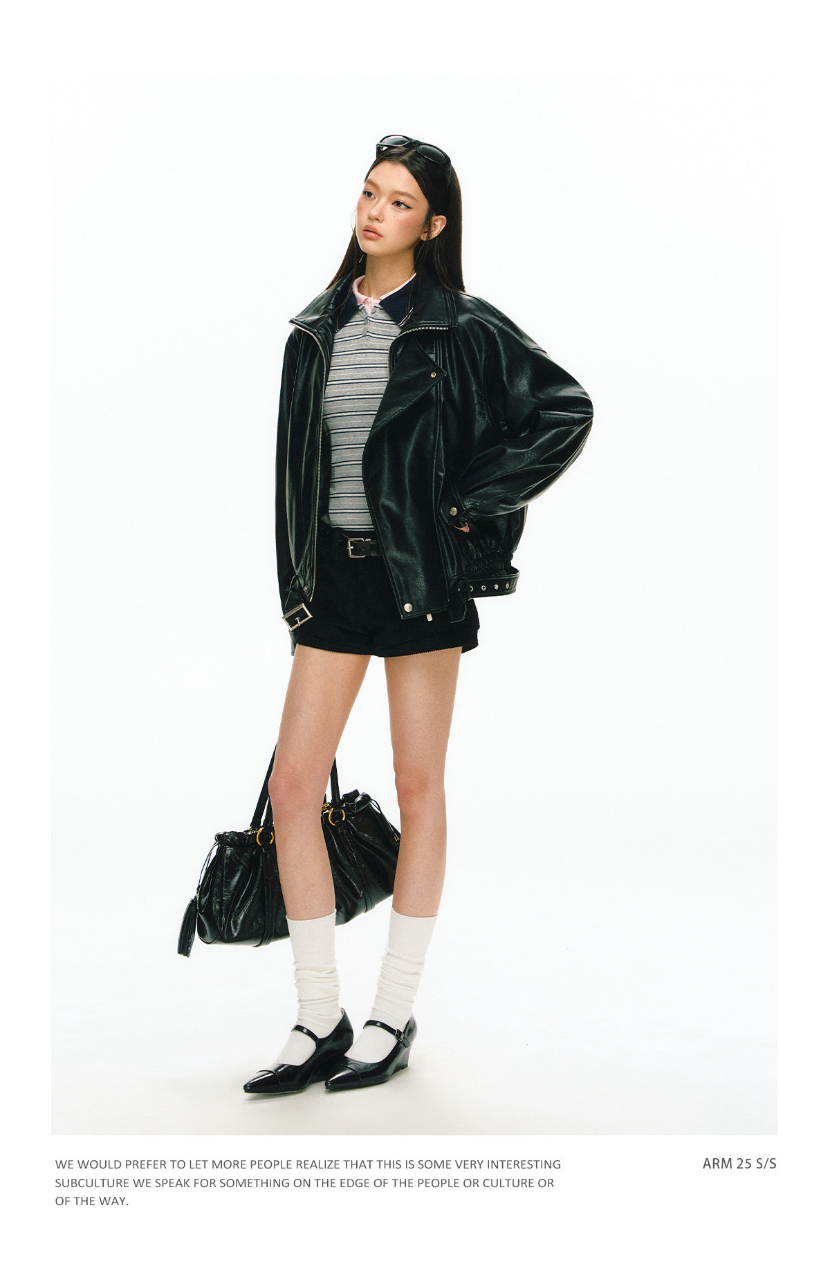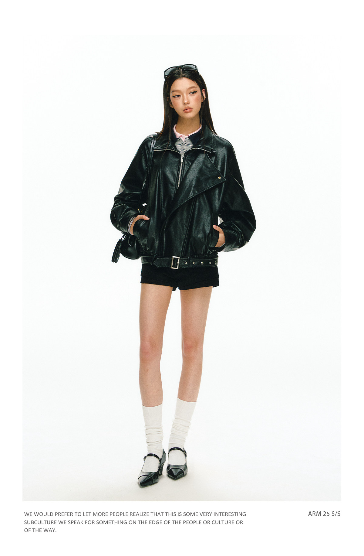 Ariseism 美式复古设计感皮衣女秋季新款上衣外套