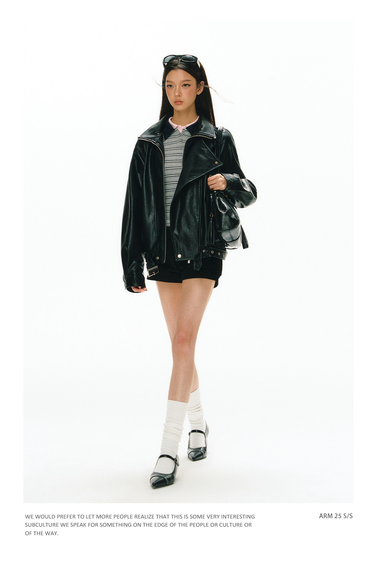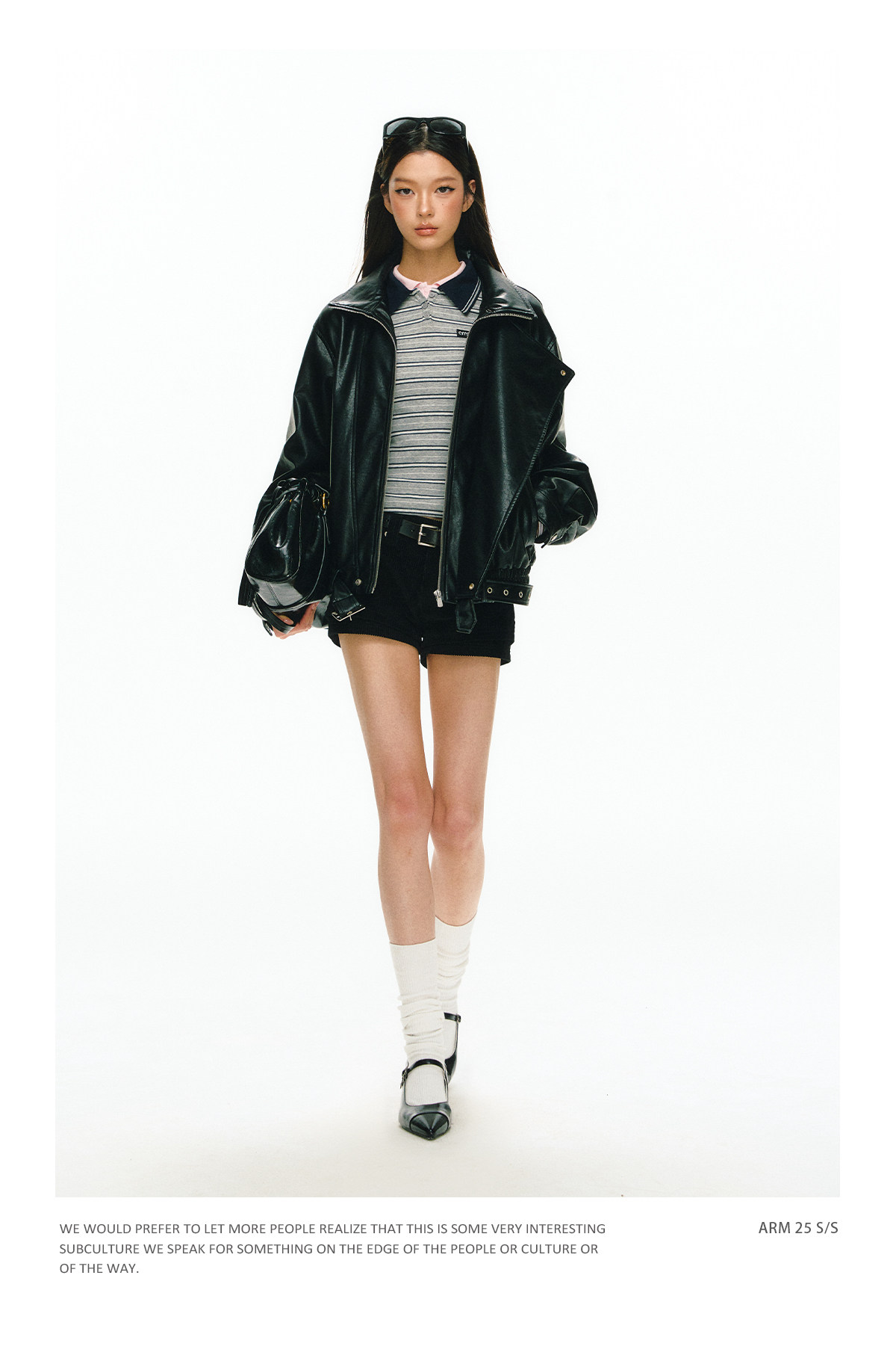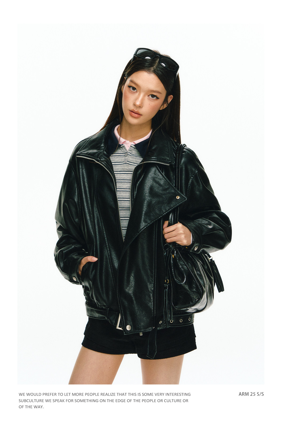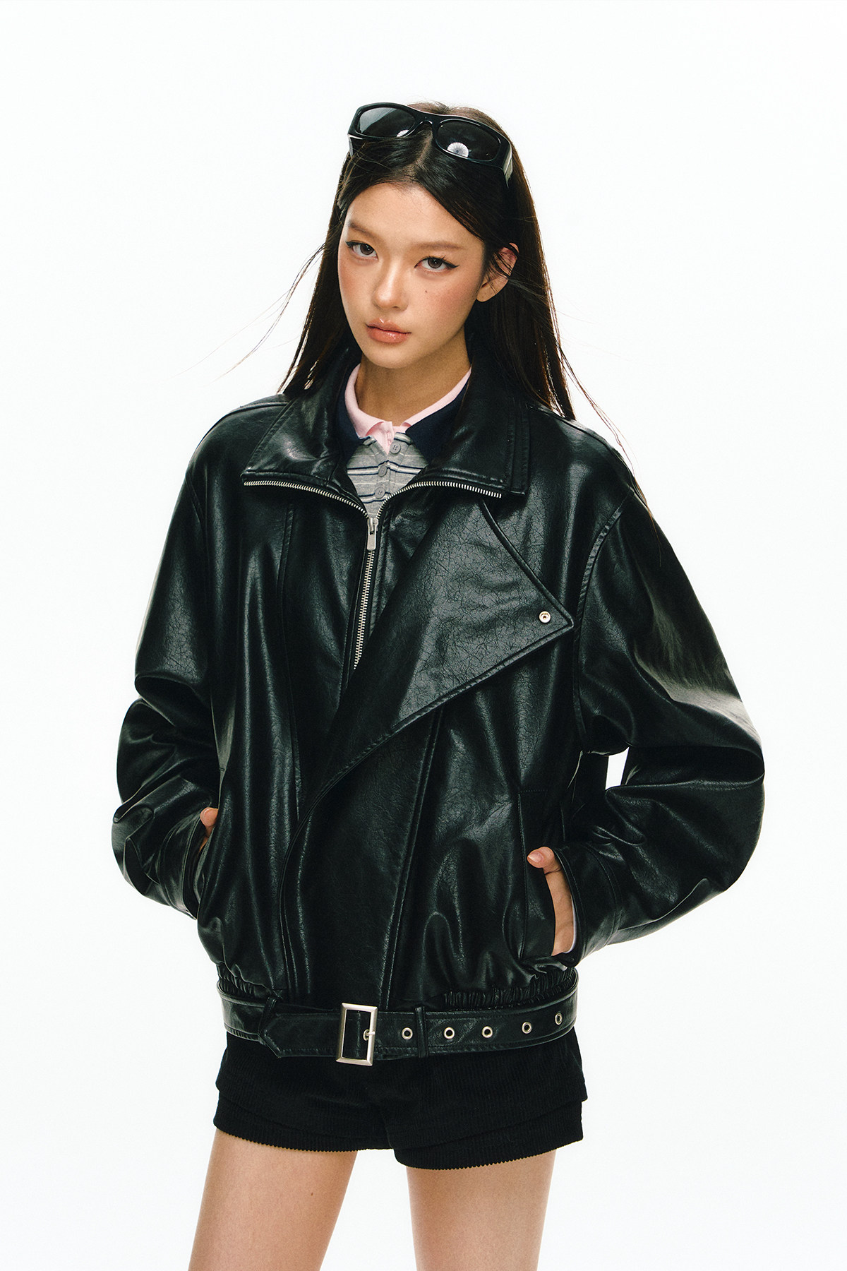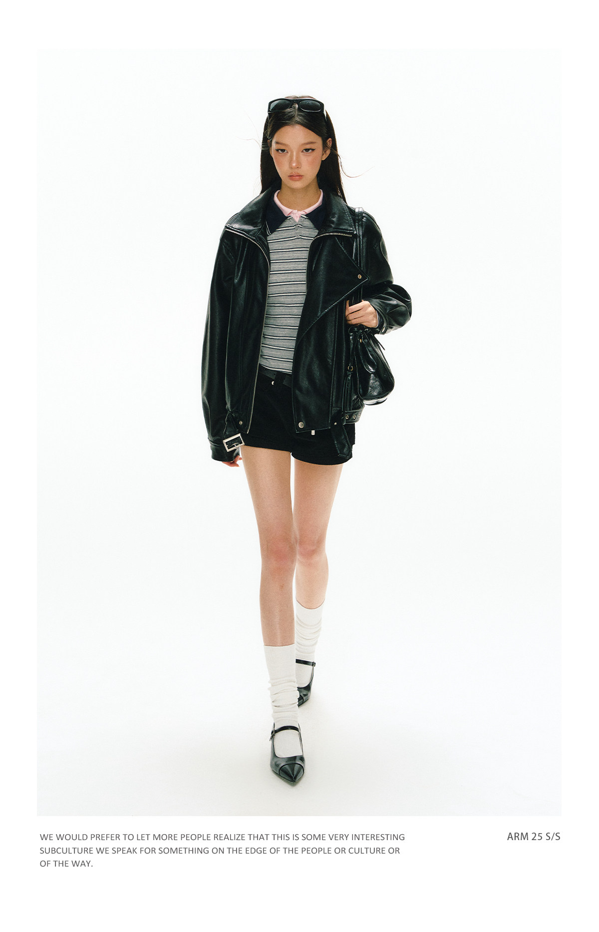 Ariseism 美式复古设计感皮衣女秋季新款上衣外套