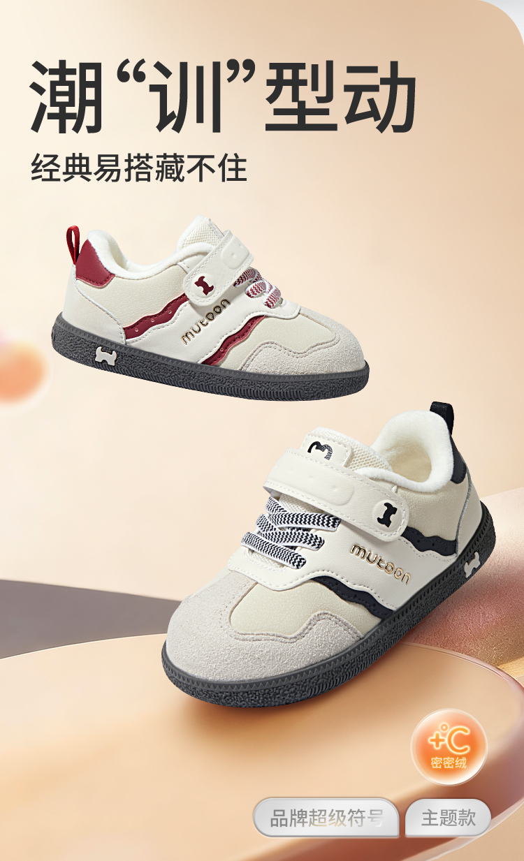 牧童2025冬季新款学步男女宝保暖加绒防滑2-6岁加绒德训鞋运动板鞋