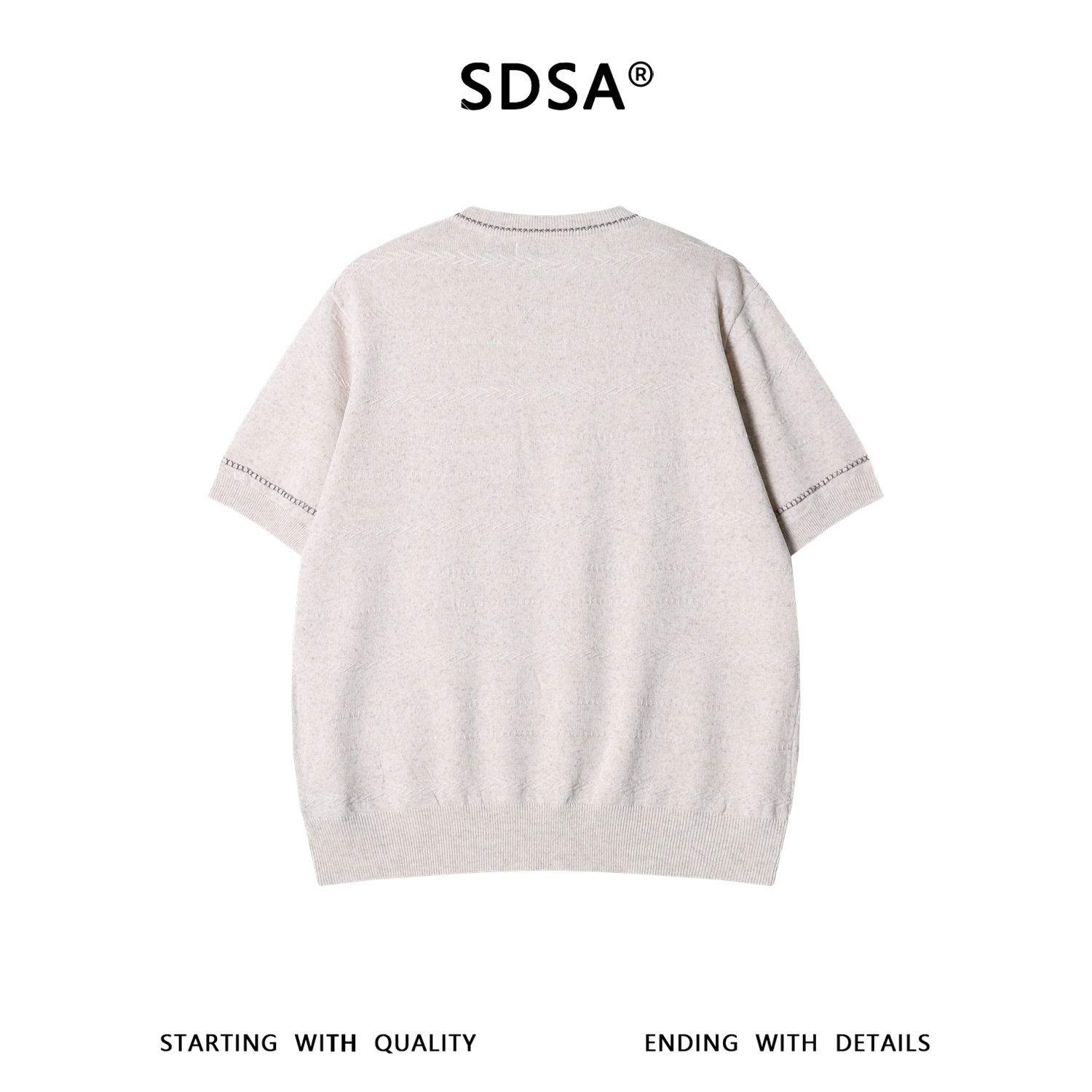 SDSA男装2026新款高贵轻奢波浪纹提花亨利领宽松针织短袖