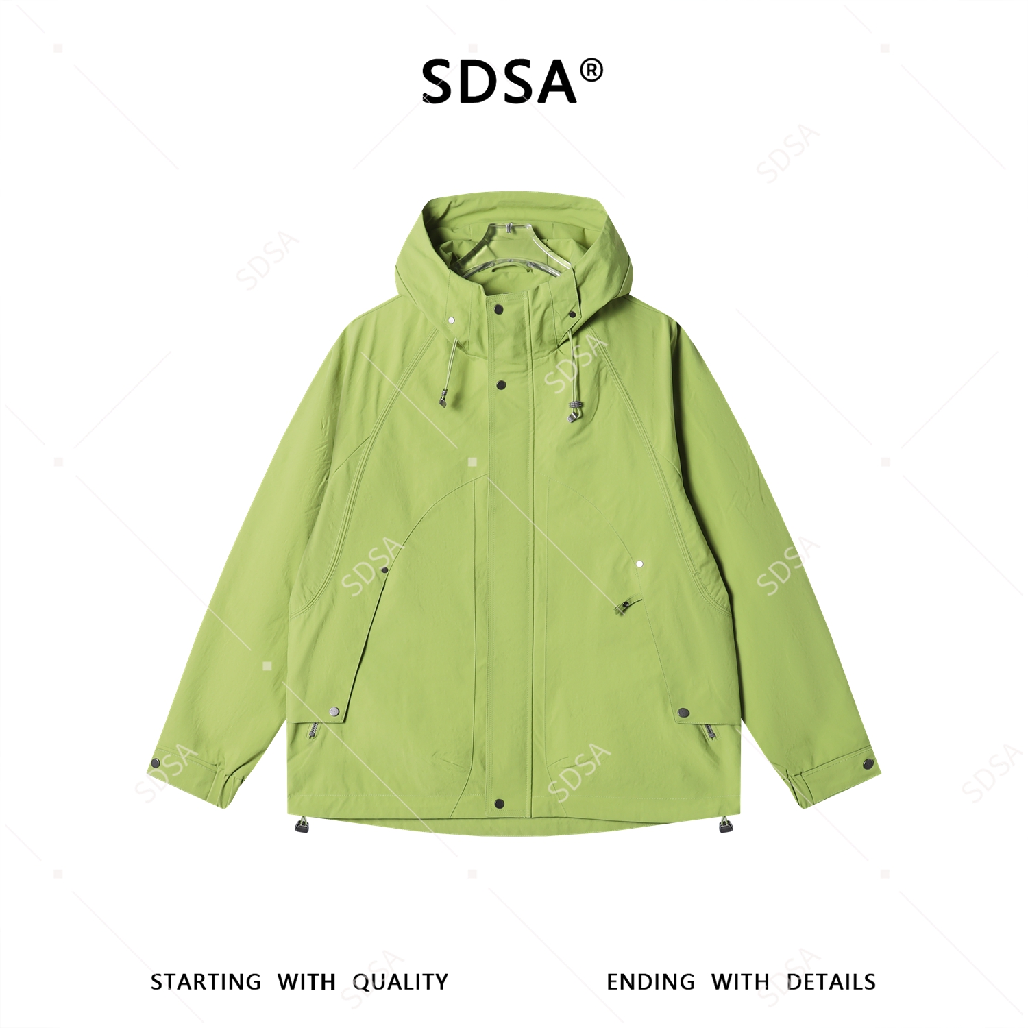SDSA男士春夏新款痞帅男装简约时尚铆钉纯色立领连帽夹克外套百搭