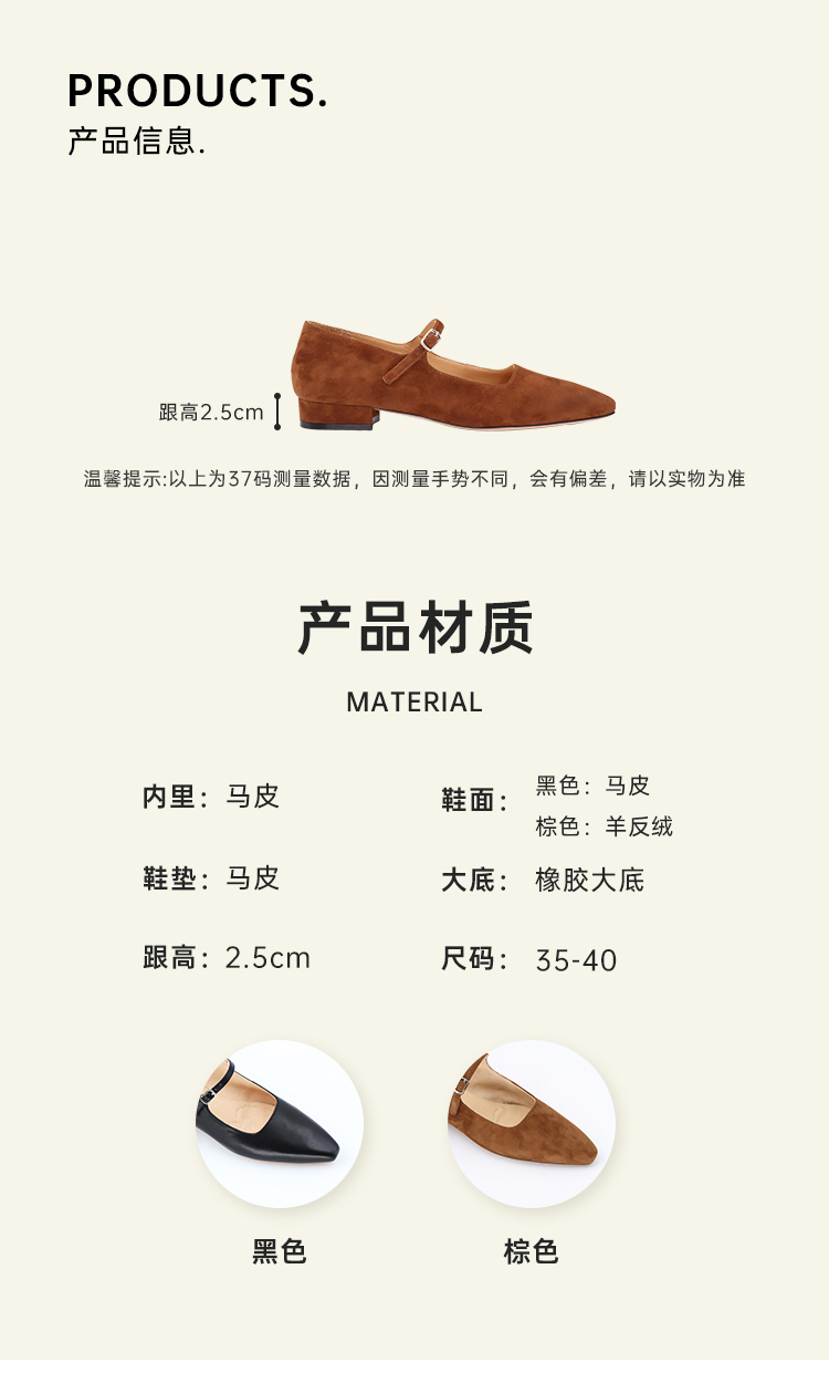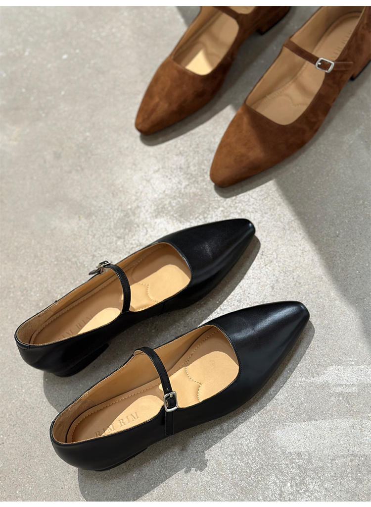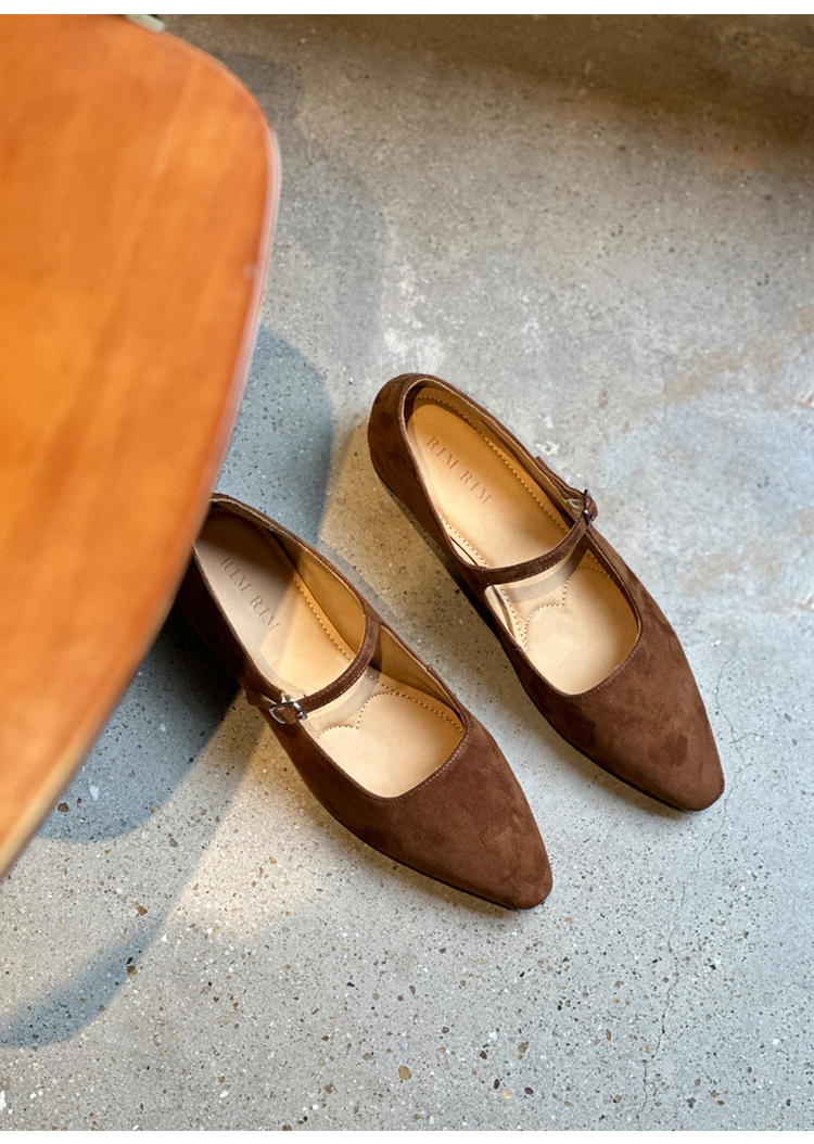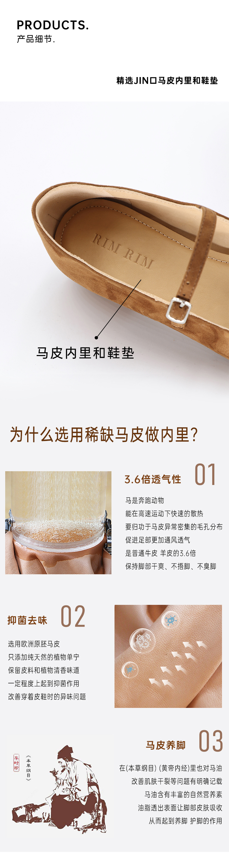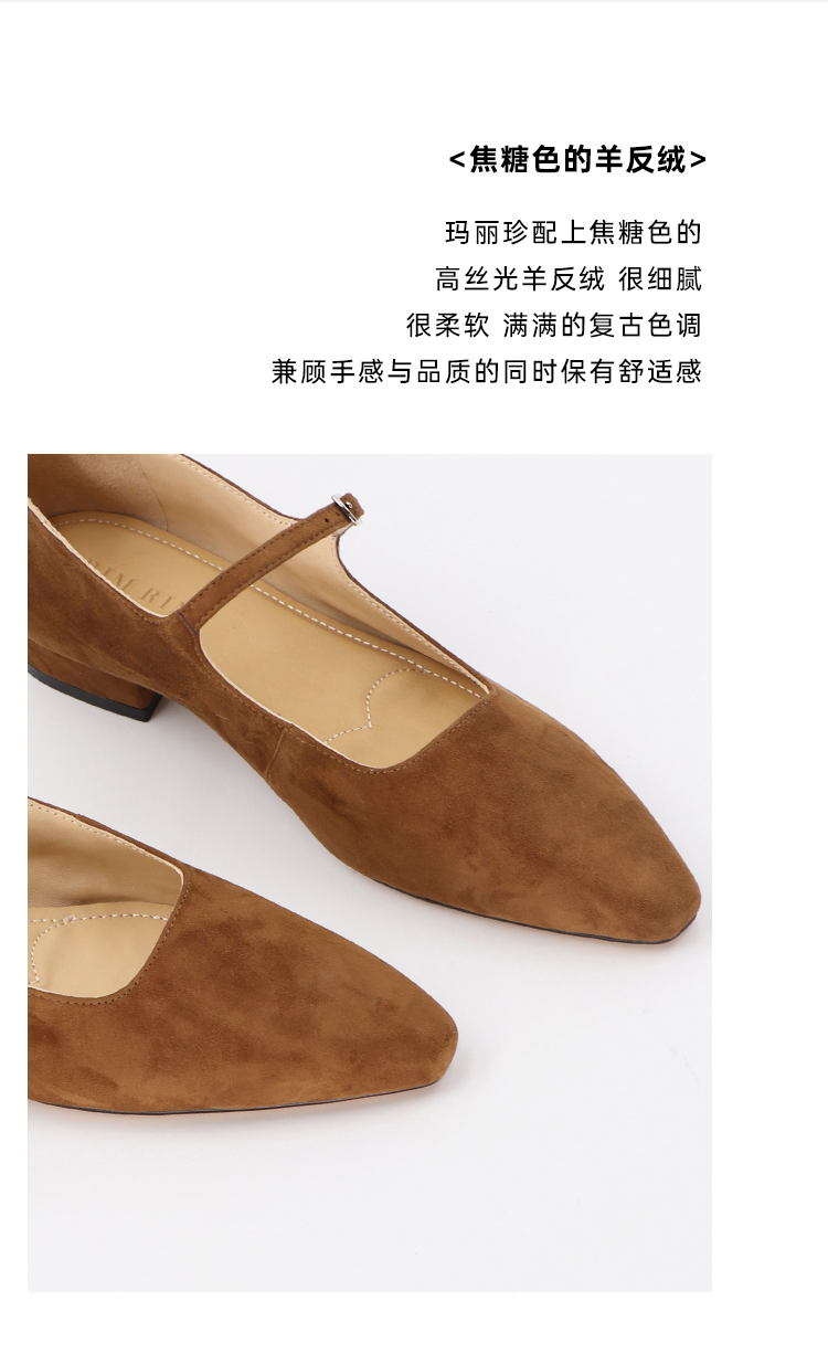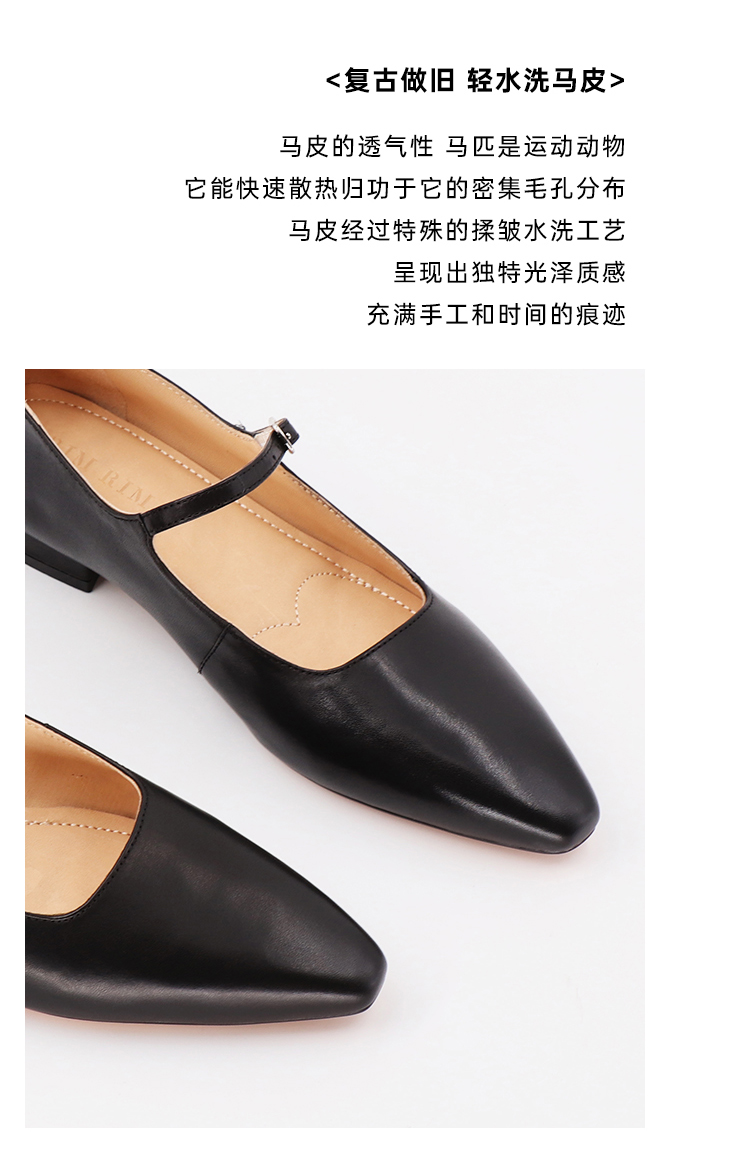 RIMRIM塑型马皮鞋羊反绒玛丽珍单鞋复古软底浅口低跟平底方头2385