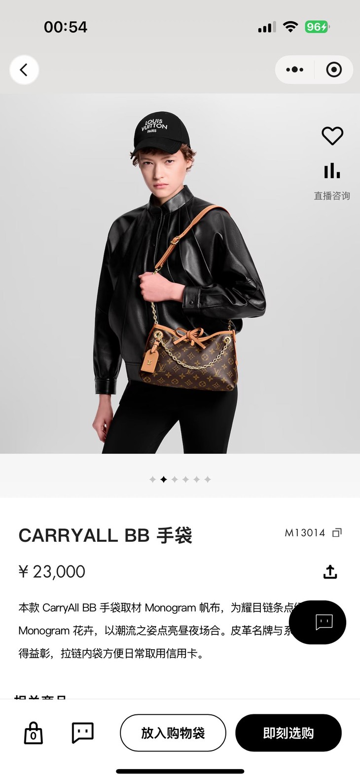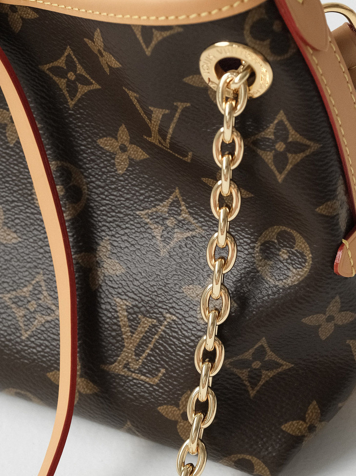 Carry allBb手袋取材 Monogram 帆布和皮革饰边,成就都市生活的贴身伴侣, 邂逅一場時尚與實用交織的浪漫,設計獨具匠心,金色鏈條點綴著Monogram花卉,宛如夜空中閃爍的繁星,熠熠生輝。