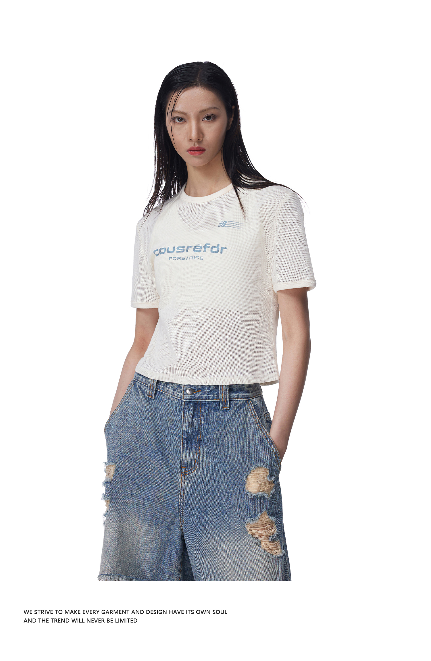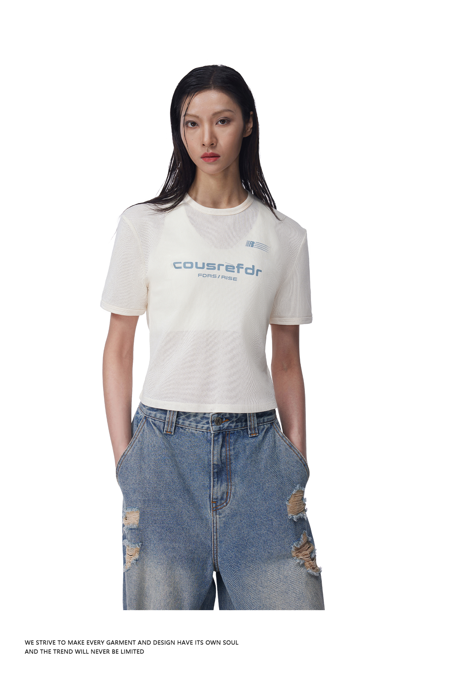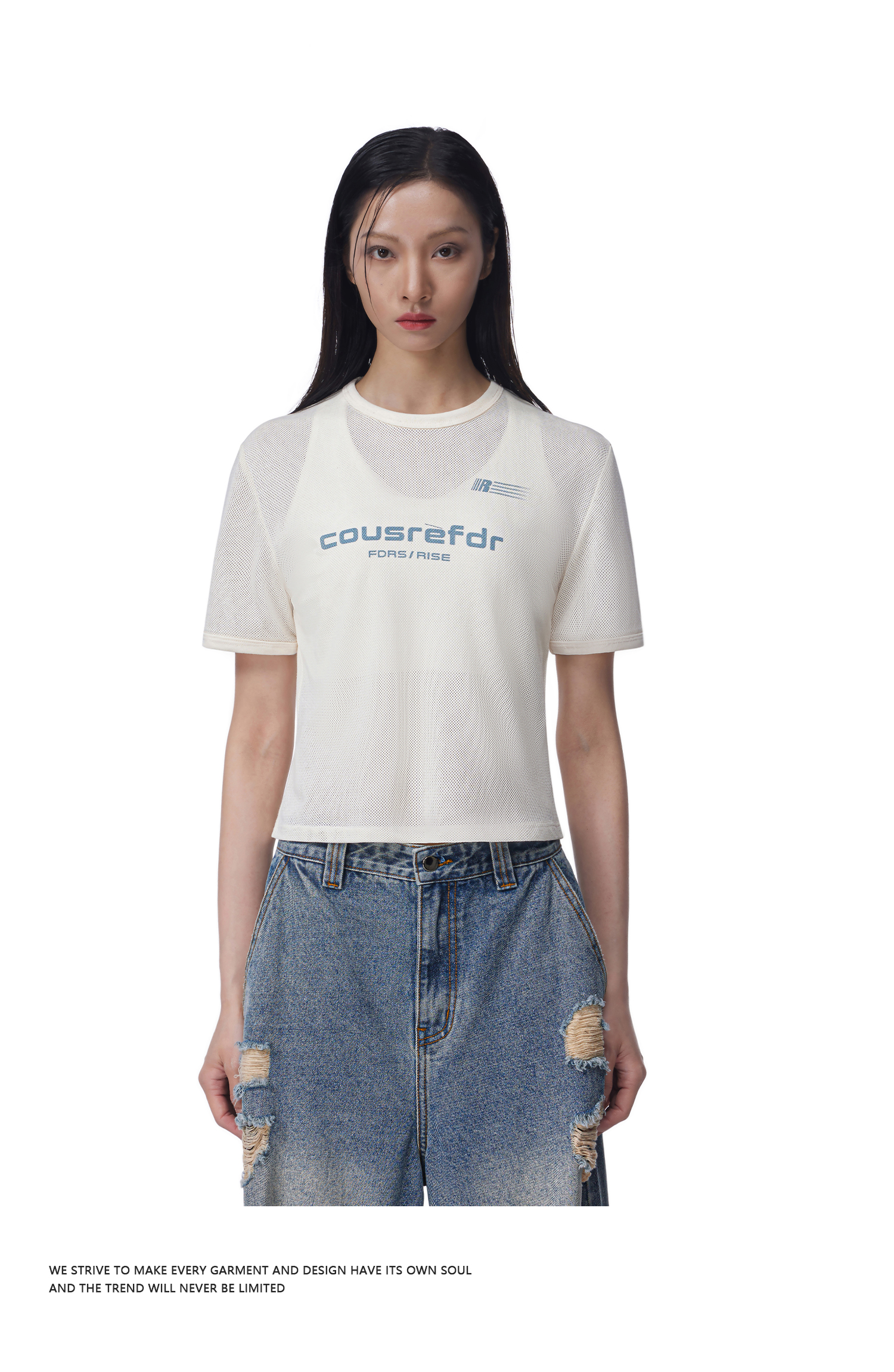 FDR官方店 网眼辣妹短袖t恤女夏季薄款宽松透气美式运动T恤上衣