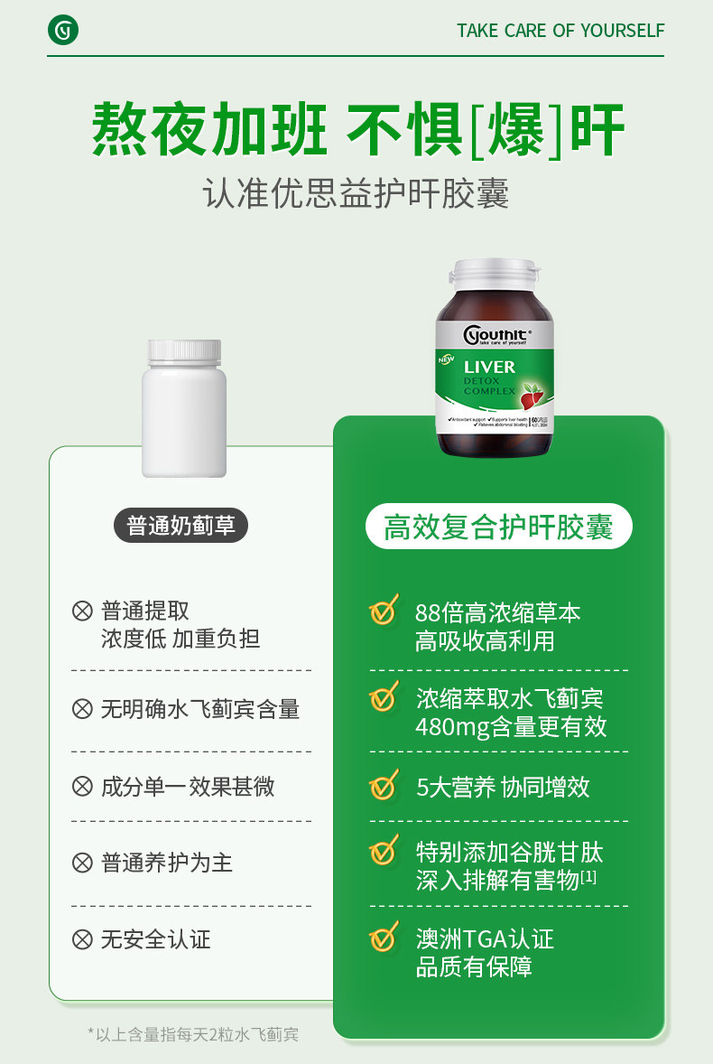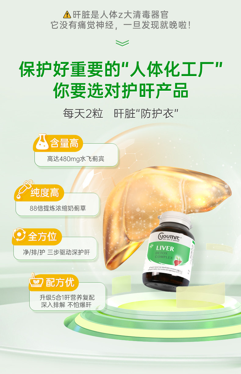 澳洲Youthit优思益高浓度复合奶蓟草胶囊护肝片保健品熬夜加班