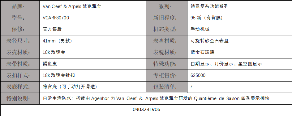 【95新正品】Van Cleef & Arpels梵克雅宝诗意复杂功能系列18k玫瑰金41mm日期显示月份显示星空图显示手动机械男款VCARF80700 090323LV06