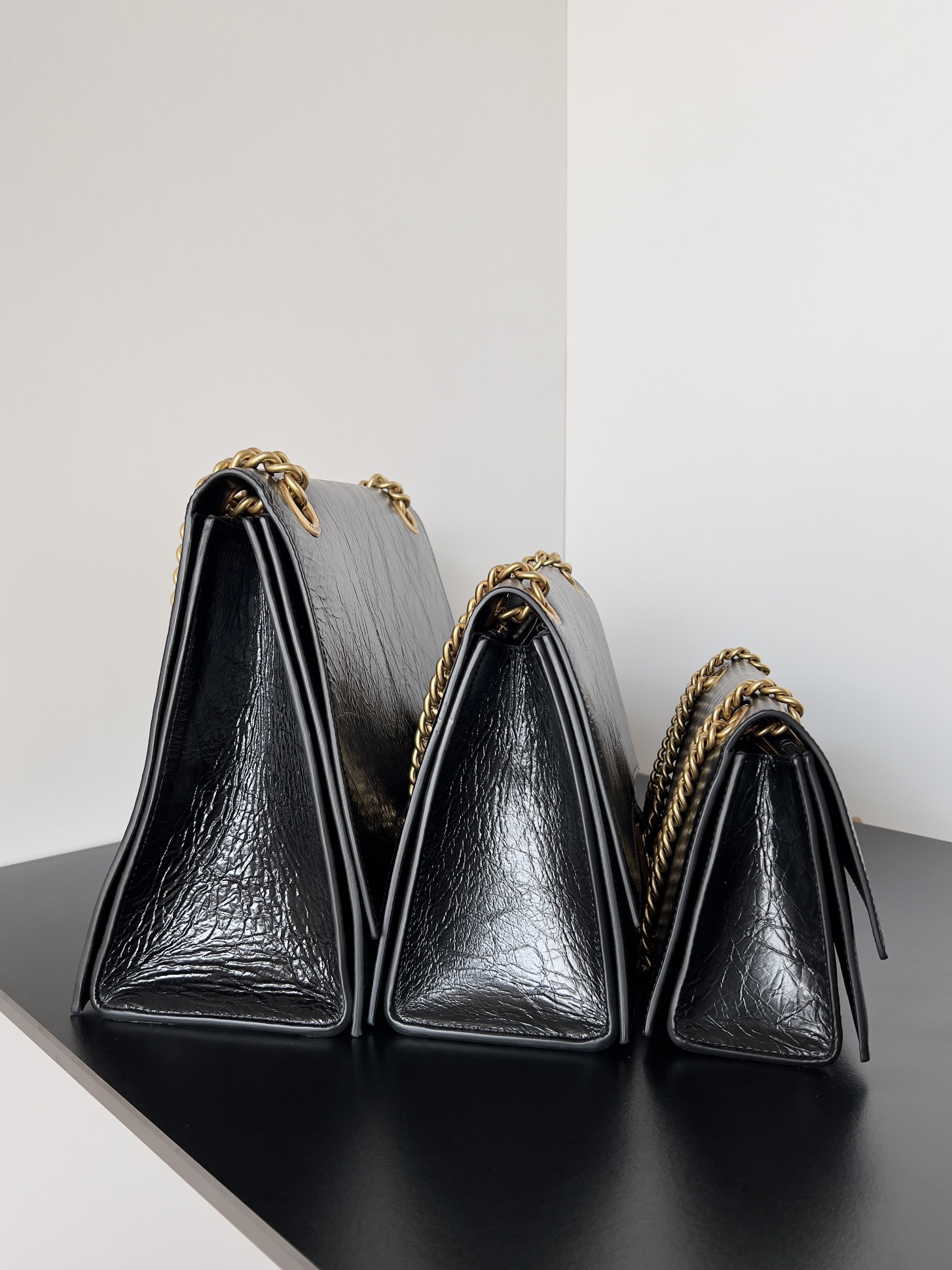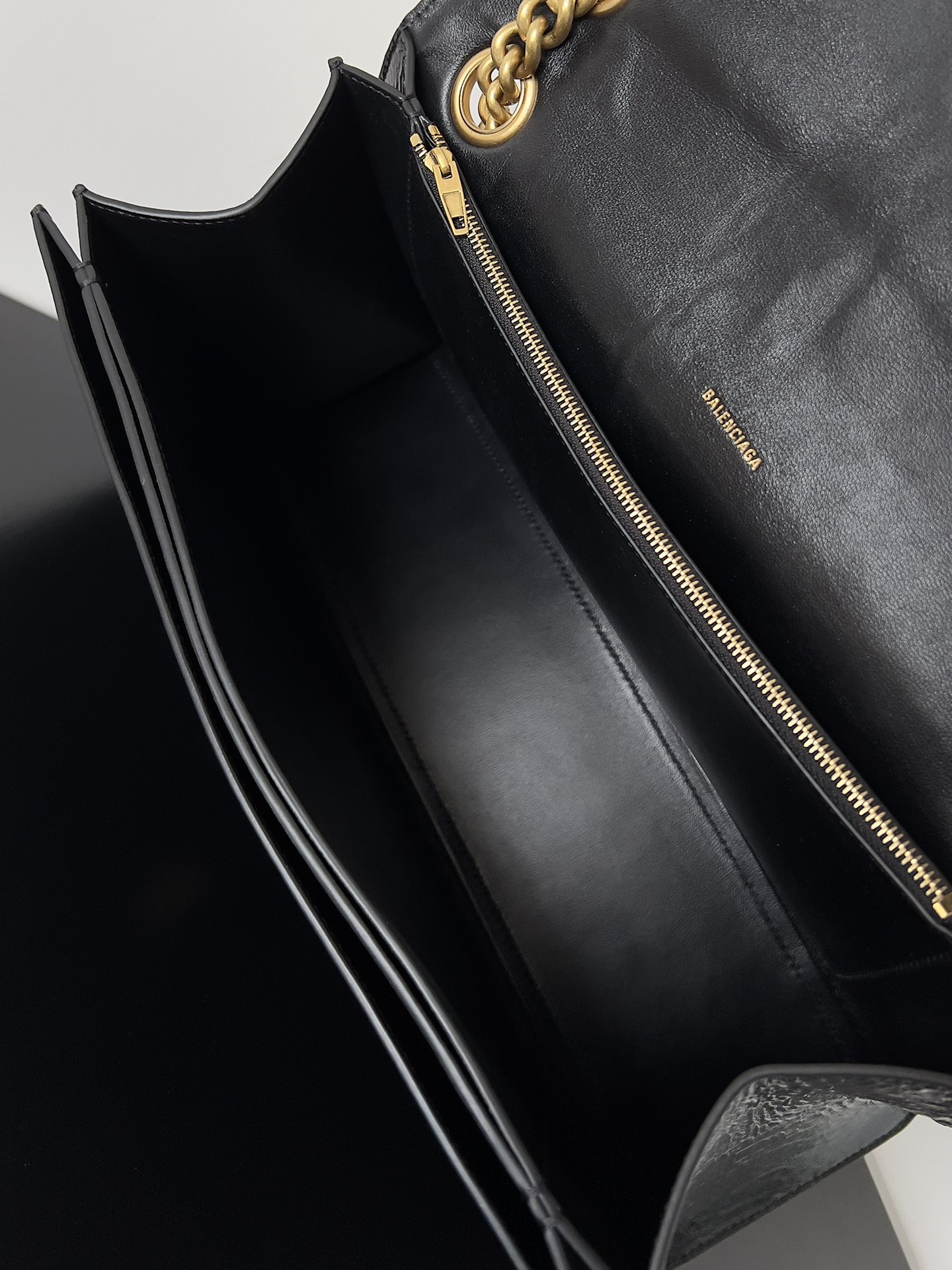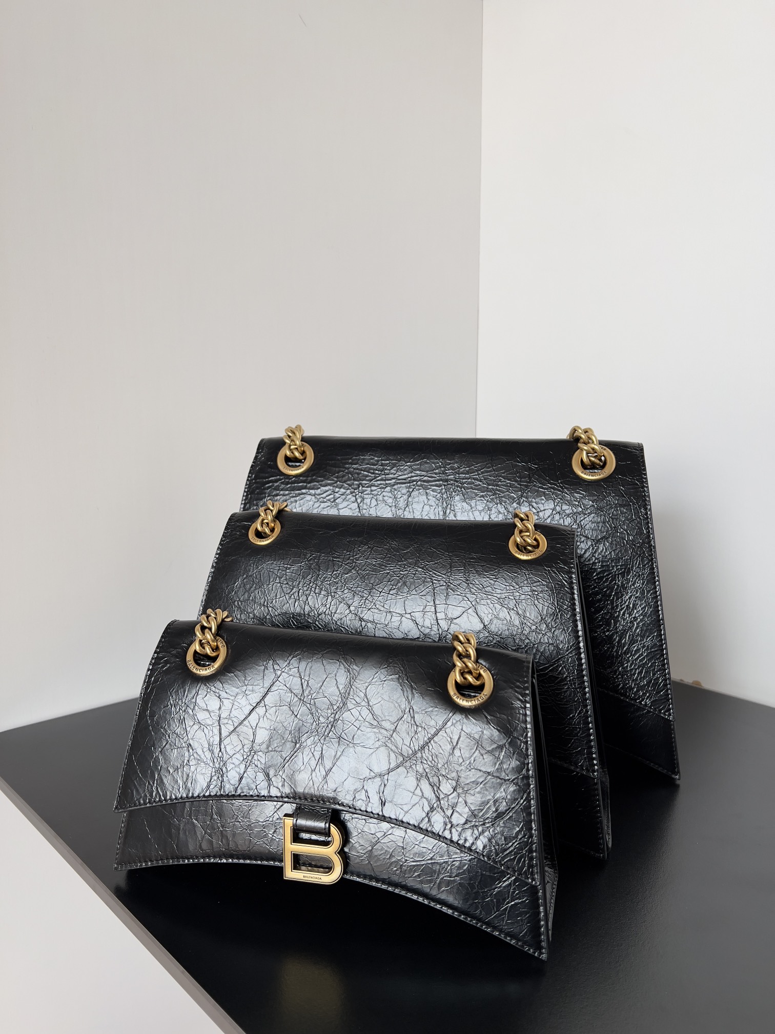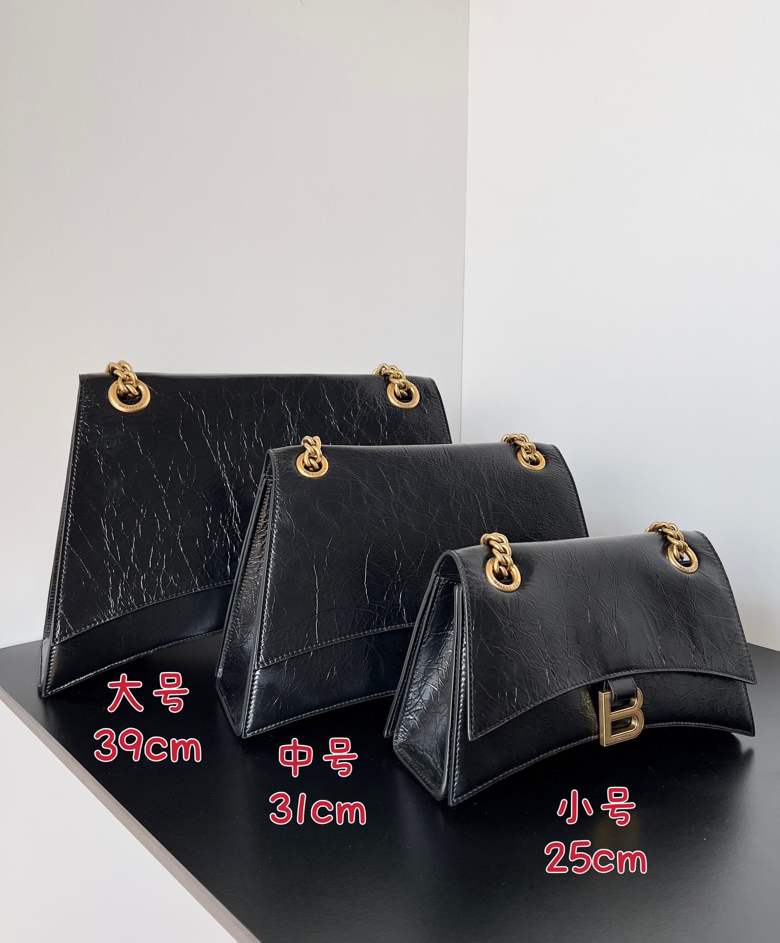 Balenciaga 最新 Crush 包款強勢登場!Crush 手袋首次亮相于冬季 22 系列发布秀,独特的标志性弧线形状造型底部设置一个圆润光滑的拱形弧线,以解构手法重释经典。柔韧的造型易于折叠和展开,拱形包底与尖角边缘设计,包型搭配层次分明的内部空间。压光牛皮与柔软羊皮革内里,手袋肌理与设计亮点均彰显出其绝佳的触感。