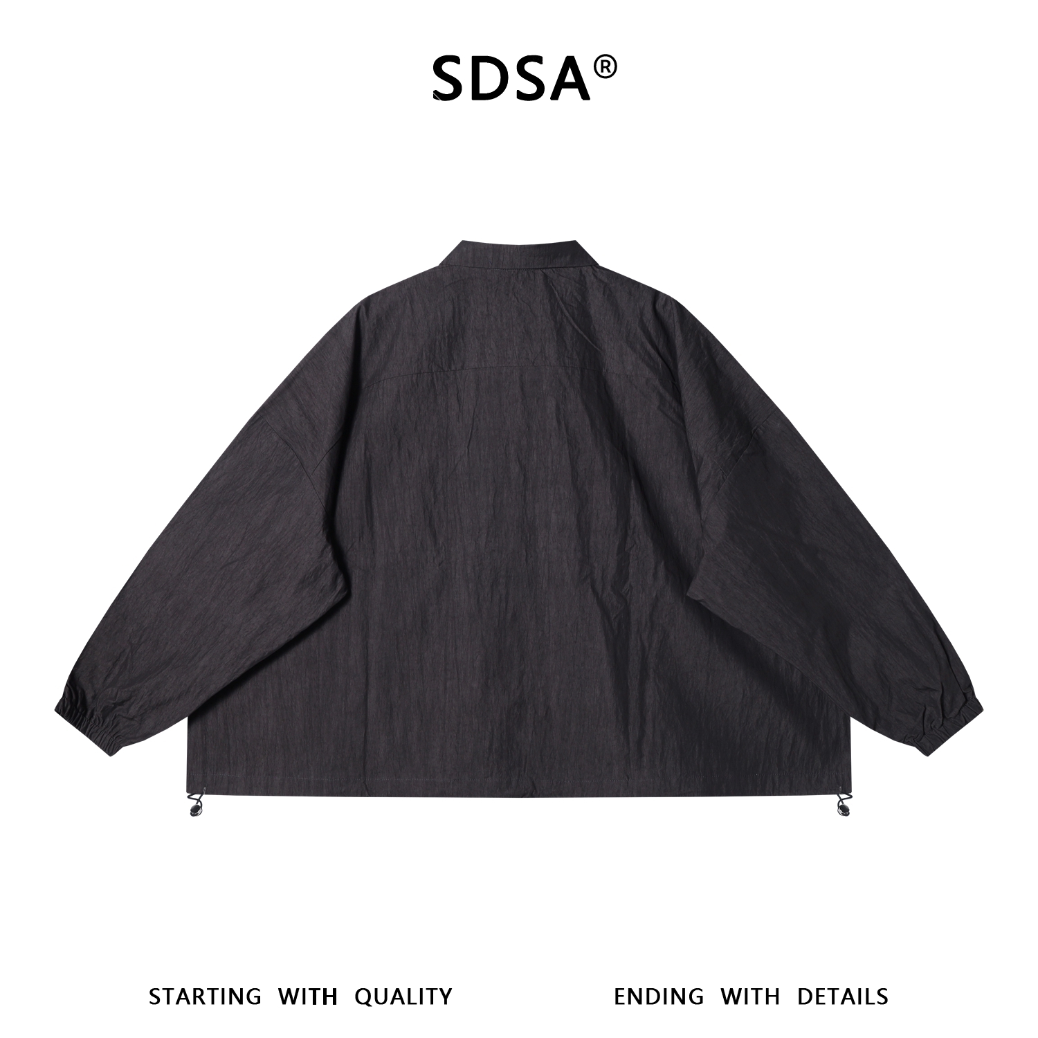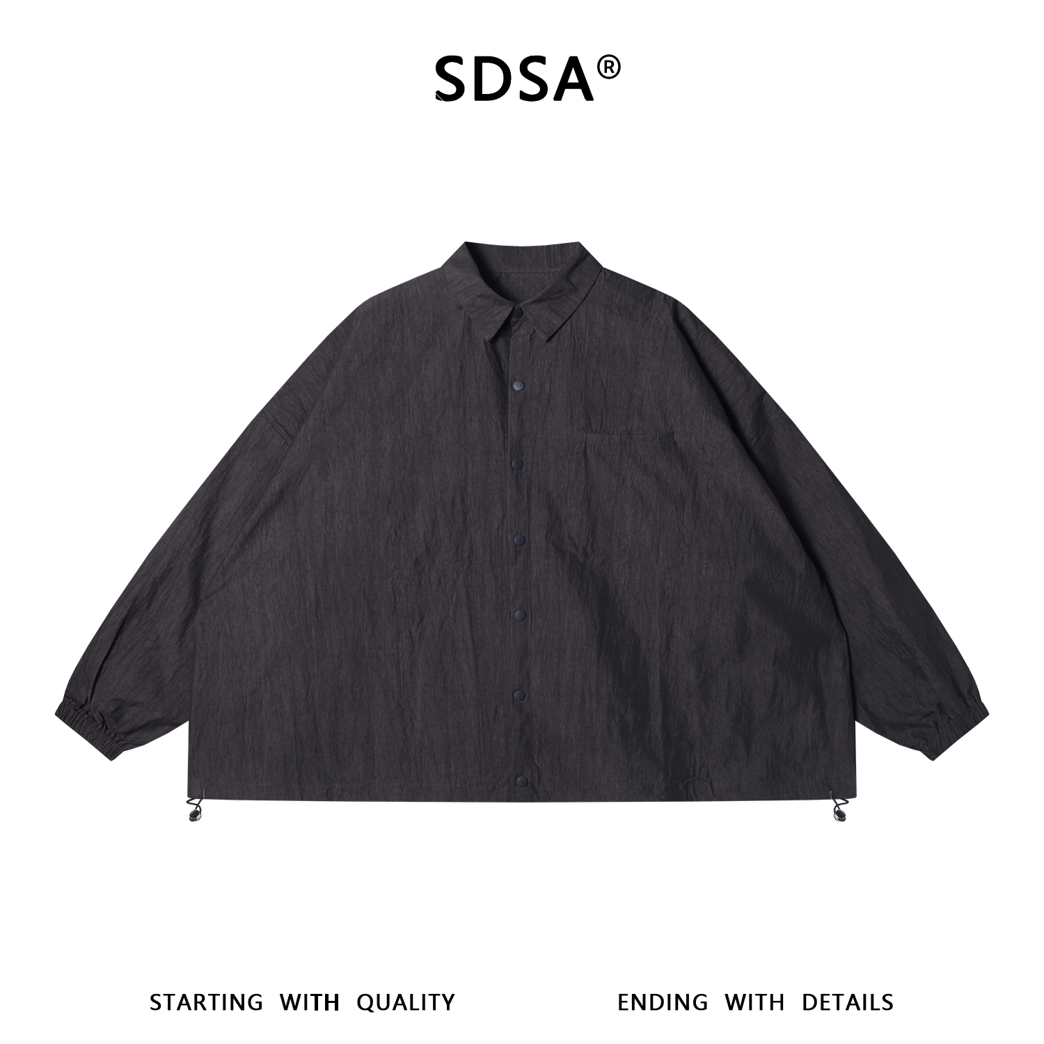 SDSA男装2026新款高贵轻奢韩版纯色按扣长袖衬衫下摆松紧设计百搭