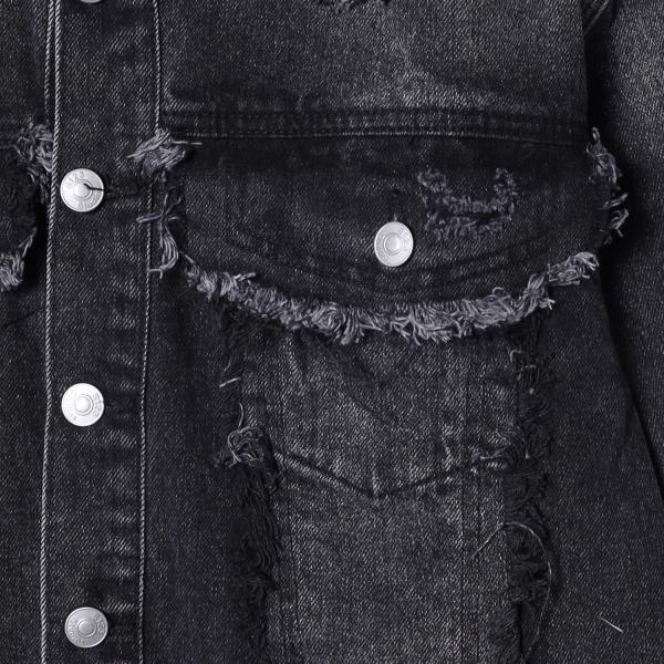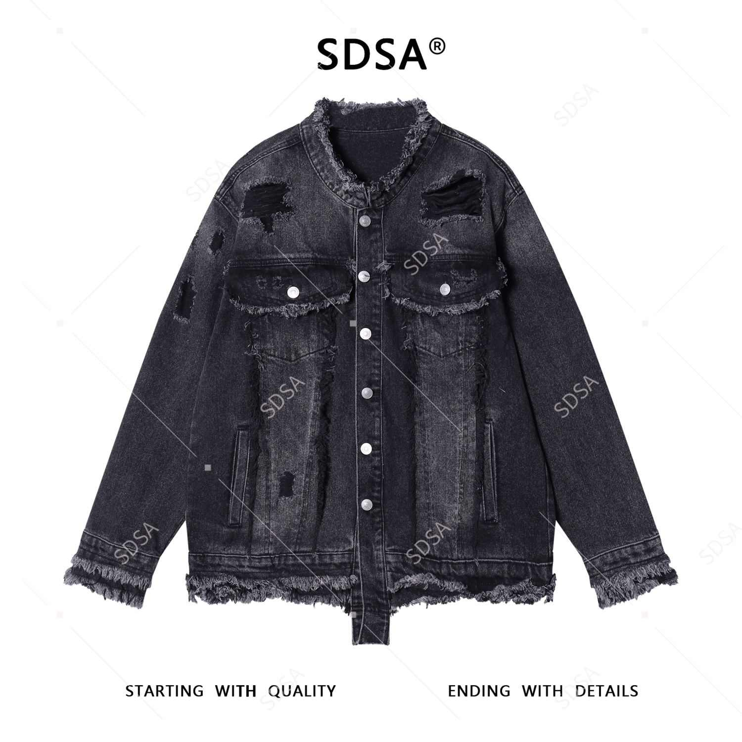 SDSA秋冬新款痞帅男装美式设计感流苏磨破立领牛仔夹克外套百搭