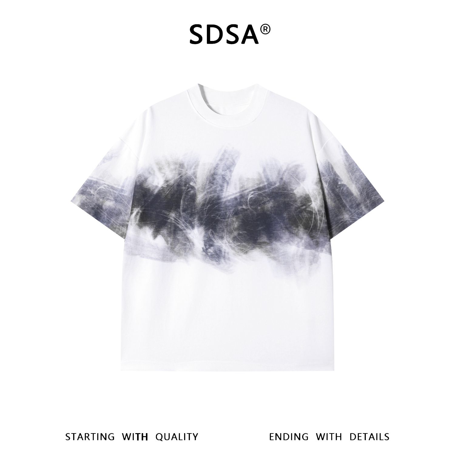 SDSA男装2026新款高贵轻奢潮牌简约晕染撞色印花圆领短袖T恤百搭