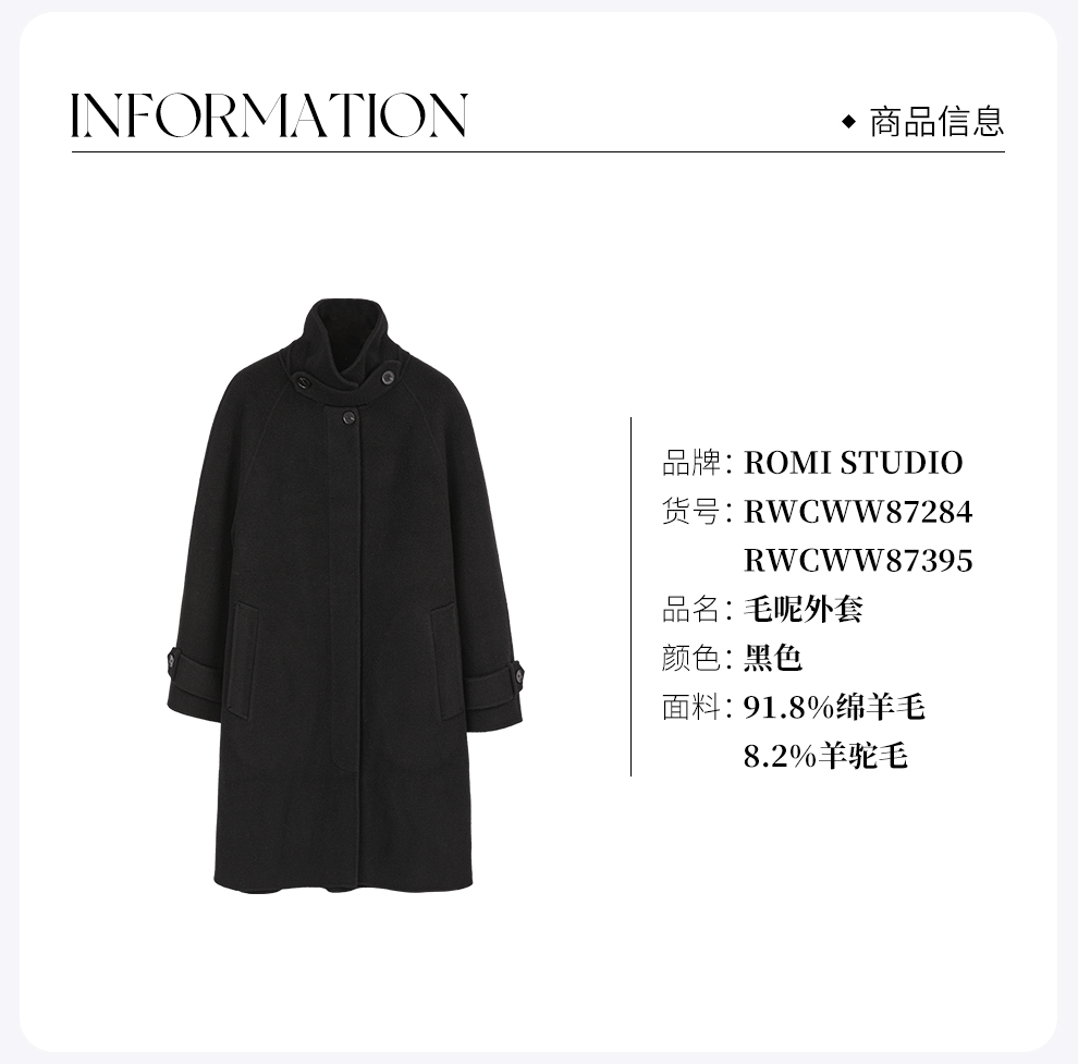 ROMI STUDIO“国王的礼物”100%山羊绒领绊细腻毛呢大衣 RWCWW87395