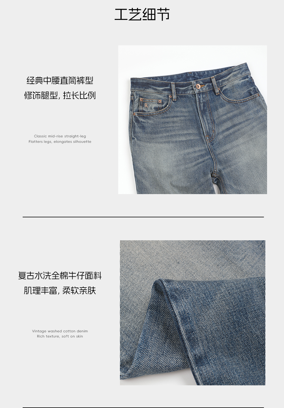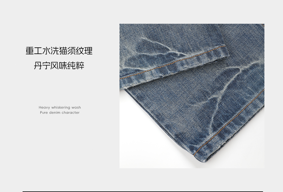ROMI STUDIO"随性丹宁"全棉斜纹猫须字母刺绣牛仔裤 RWDSX82911