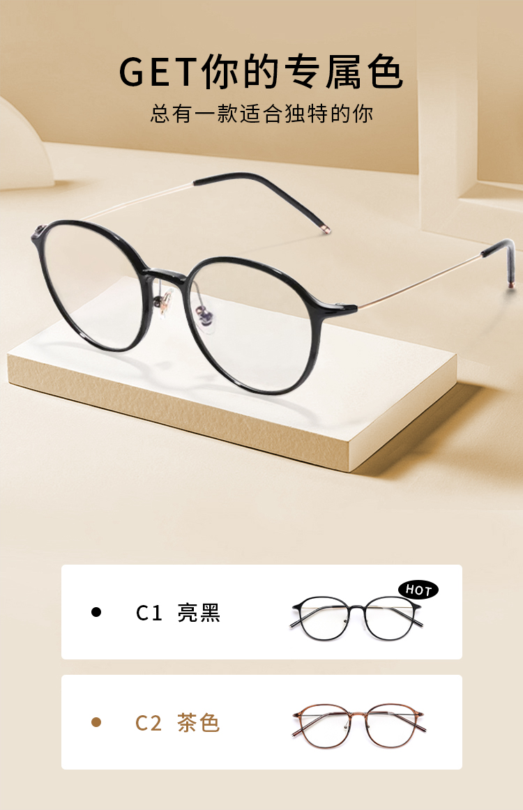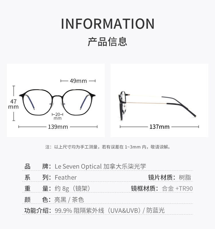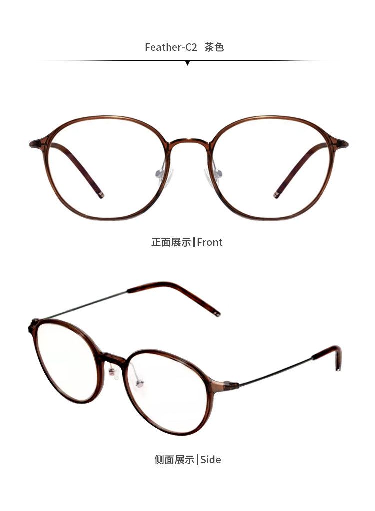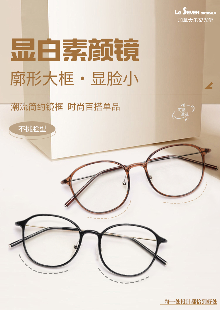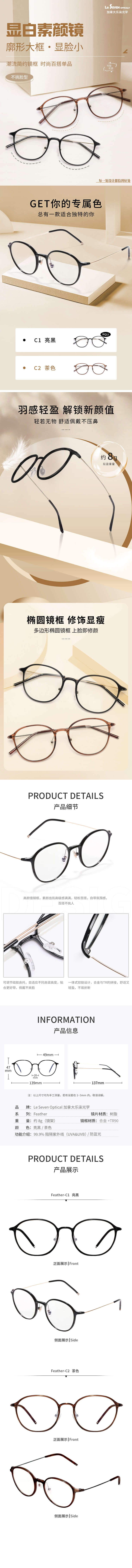 【森哥优选】乐柒 成人防蓝光眼镜护目镜透色素颜框女大框百搭Feather ‘不可配度数’ LeSeven