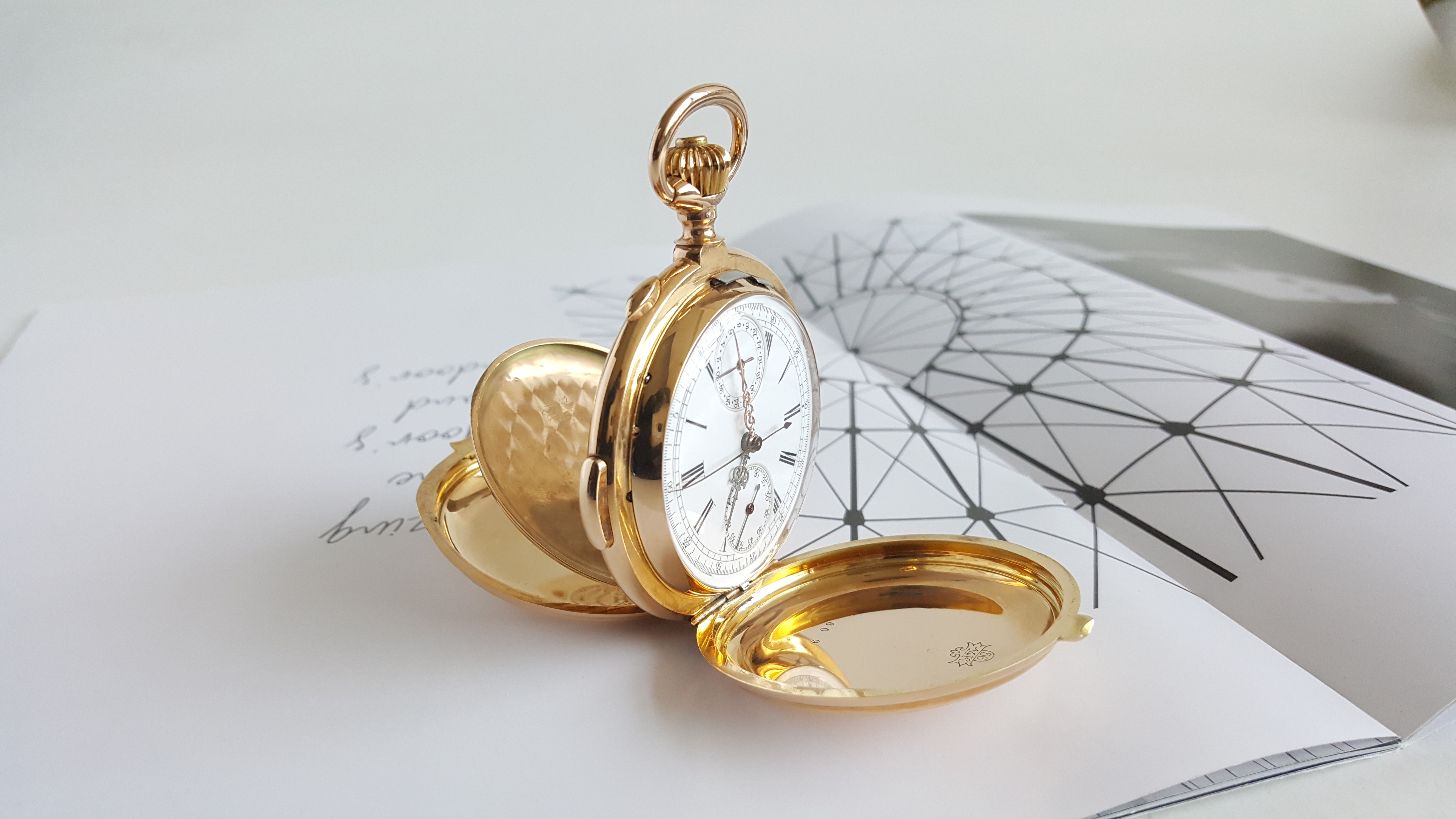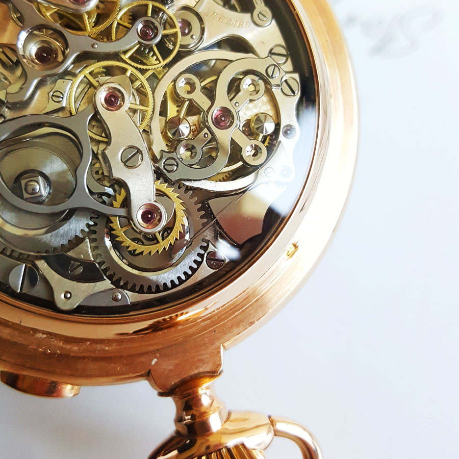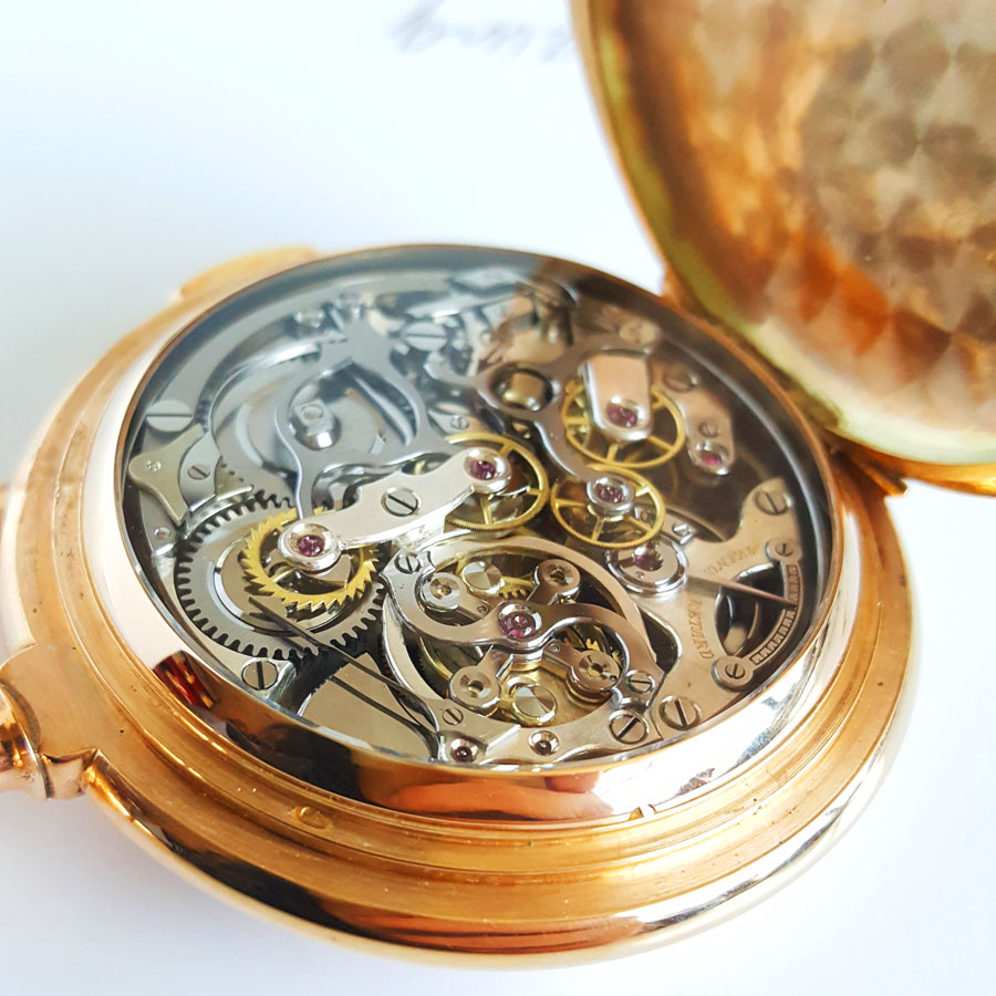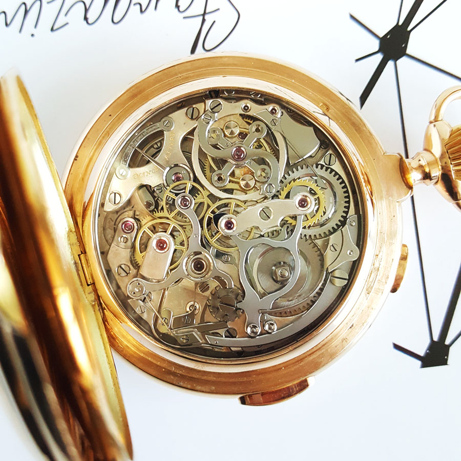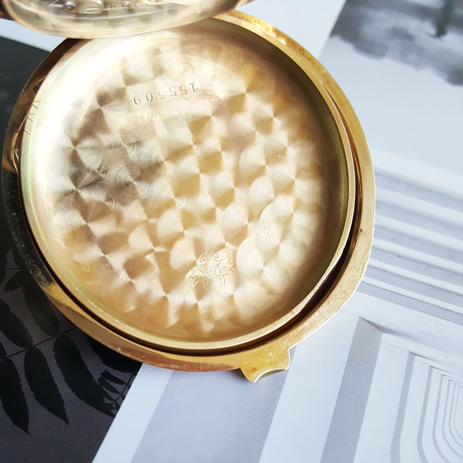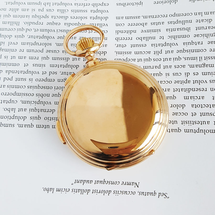 特别说明 | 怀表品牌LE PHARE,中文名为力菲亚,瑞士知名品牌珍达菲的前身,该品牌由天才独立制表师创立于1888年,其多次在国际博览会上获得最高奖项,且一度成为瑞士生产计时手表的第二大品牌。此款怀表约产于20世纪初,表壳为14K金,此怀表少有的集计时与问表于一体,特有按钮式二问,按下的瞬间,即可享受清脆悦耳的报时声 |